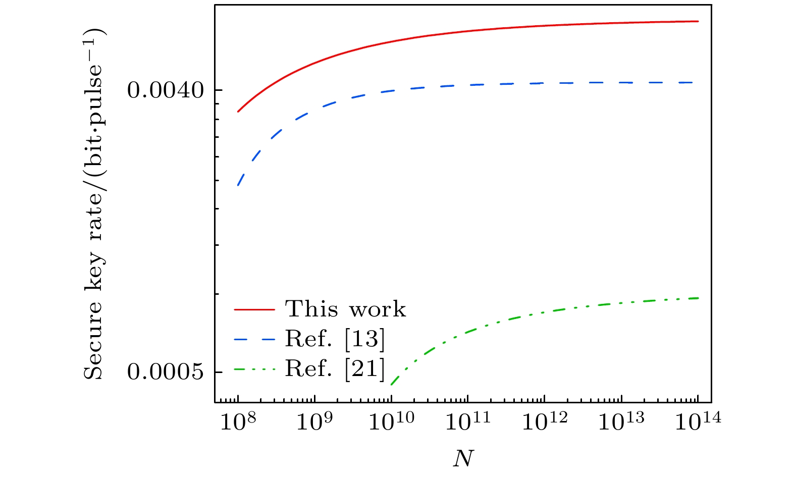 Measurement-device-independent quantum key distribution (MDI-QKD) protocol can effectively resist all possible attacks targeting the measurement devices in a quantum key distribution (QKD) system, thus exhibiting high security. However, due to the protocol’s high sensitivity to channel attenuation, its key generation rate and transmission distance are significantly limited in practical applications.To improve the performance of MDI-QKD, researchers have proposed quantum-memory (QM)-assisted MDI-QKD protocol, which has enhanced the protocol's performance to a certain extent. Nevertheless, under finite-size conditions where the total number of transmitted pulses is limited, accurately estimating the relevant statistical parameters is still a challenge. As a result, existing QM-assisted MDI-QKD schemes still encounters issues such as low key rates and limited secure transmission distances.To solve these problems, this work proposes a novel improved finite-size QM-assisted MDI-QKD protocol. By utilizing quantum memories to temporarily store early-arriving pulses and release them synchronously, the protocol effectively reduces the influence caused by channel asymmetry. Additionally, the protocol introduces a four-intensity decoy-state method to improve the estimation accuracy of single-photon components. Meanwhile, to mitigate the influence of finite-length effects on QM schemes, the proposed protocol combines a collective constraint model and a double-scanning algorithm to jointly estimate scanning error counts and vacuum-related counts. This approach enhances the estimation accuracy of the single-photon detection rate and phase error rate under finite-size conditions, thereby significantly improving the secure key rate of the MDI-QKD system.Simulation results show that under the same experimental conditions, compared with the existing QM-assisted three-intensity decoy-state MDI-QKD protocol and the four-intensity decoy-state MDI-QKD protocol based on Heralded Single-photon Source (HSPS), the proposed protocol extends the secure transmission distance by more than 30 km and 100 km, respectively. This proves that under the same parameter settings, the proposed scheme exhibits significant advantages in both key rate and secure transmission distance. Therefore, this research provides important theoretical references and valuable benchmarks for developing long-distance, high-security quantum communication networks.
