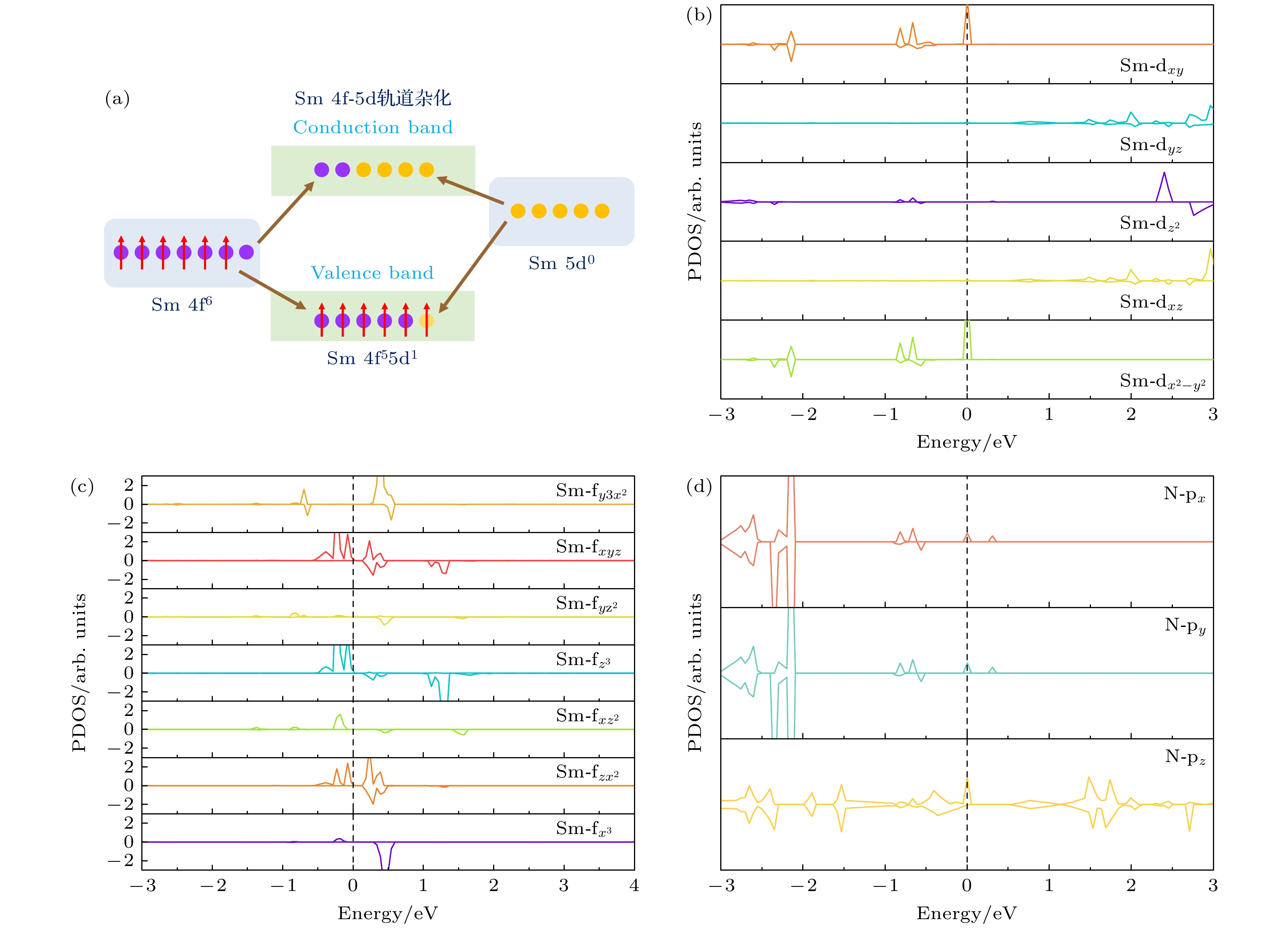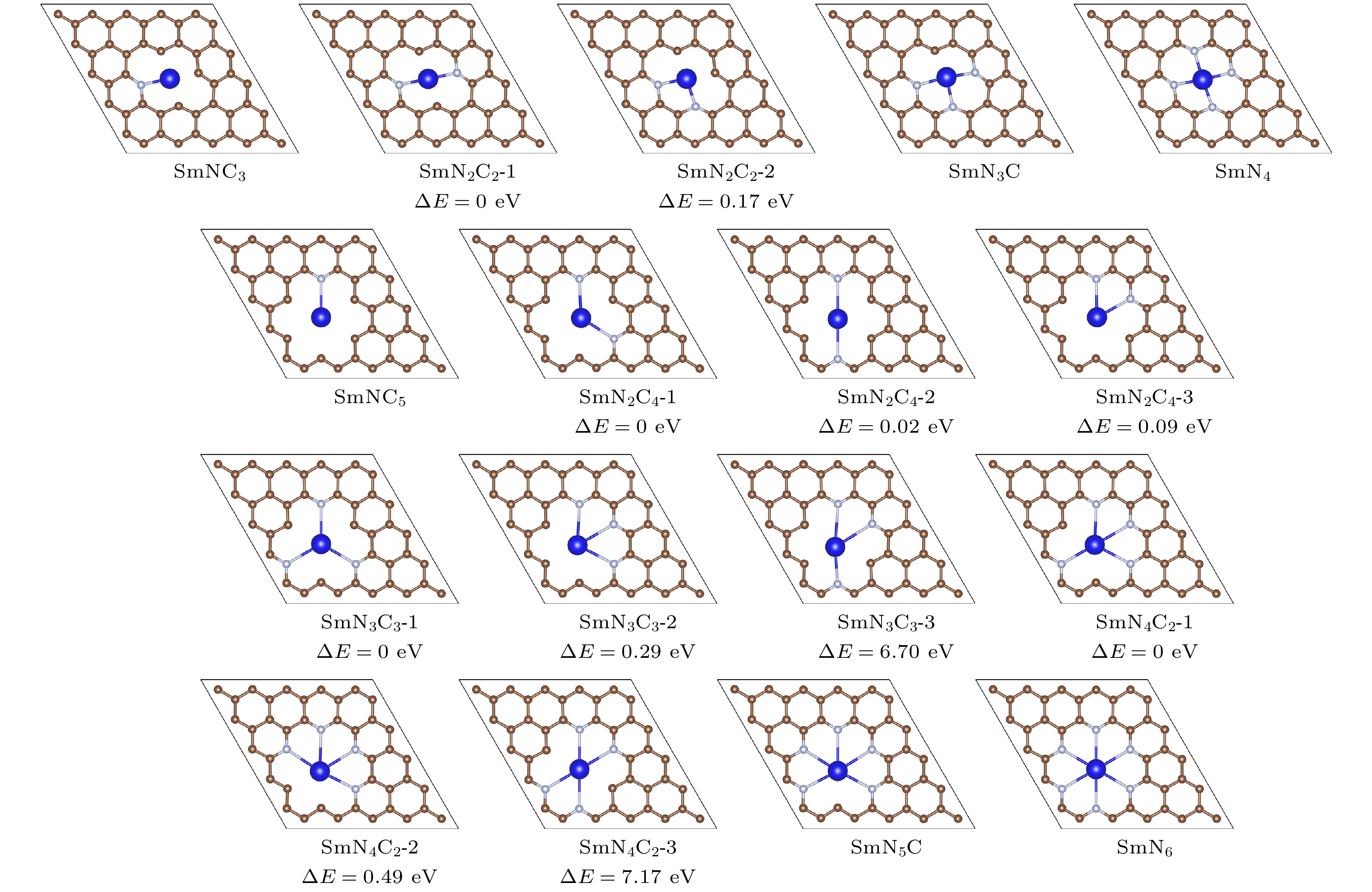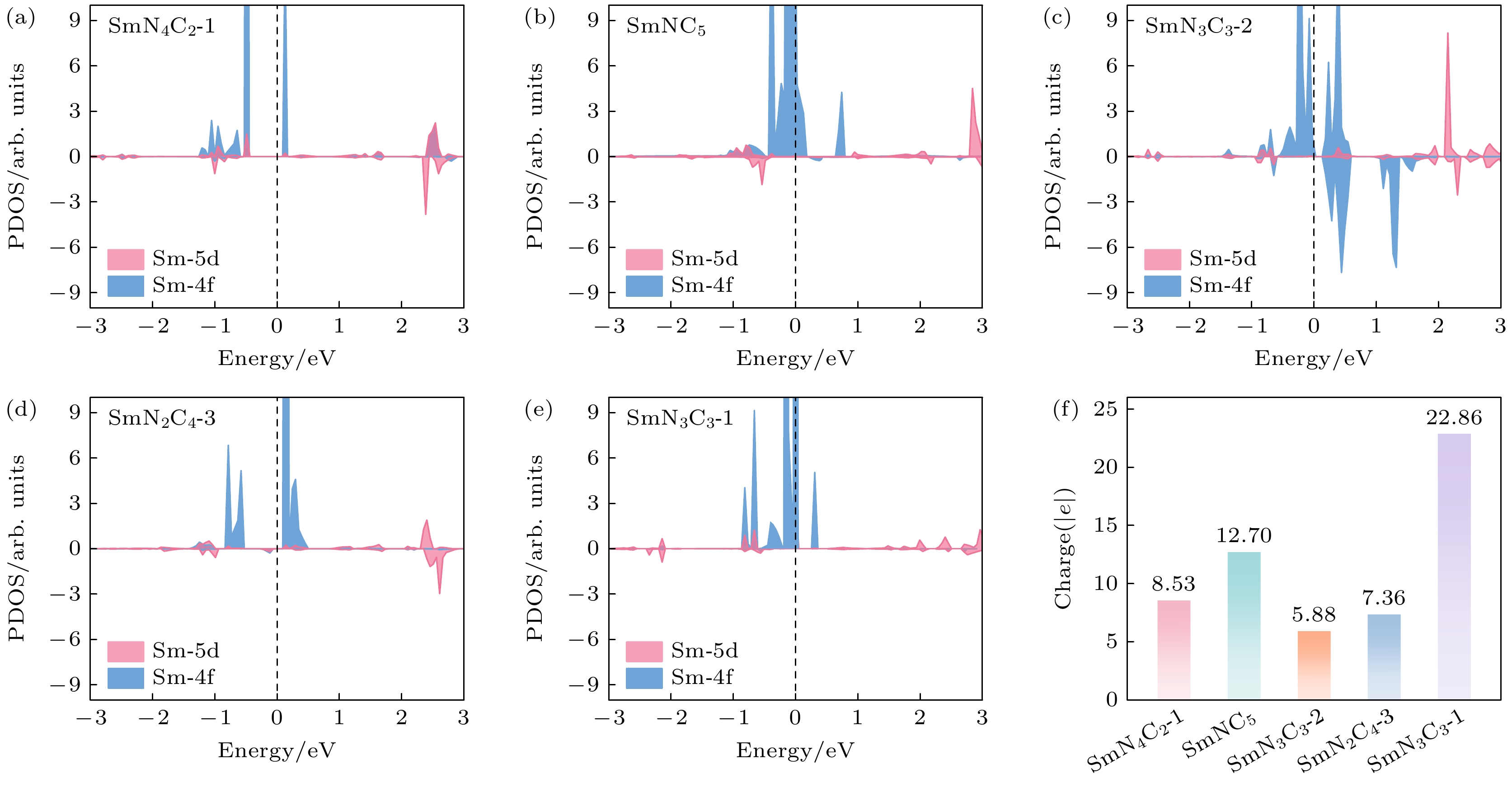 锂-氧电池虽有超高的理论能量密度, 但实际应用仍面临氧化反应动力学缓慢、充电过电位高等严峻问题. 大多数应用于锂-氧电池的单原子催化剂主要是基于过渡金属不饱和配位的d轨道, 而稀土元素Sm有丰富的4f轨道电子. 最近研究表明Sm单原子催化剂在锂-硫电池中能提升多硫化物的转化, 并在全电池实验中实现超稳定的循环性能. 因此, 本研究设计并优化了17种Sm单原子催化剂SmNxCy (x + y = 4, 6), 通过稳定性和催化活性筛选出SmN3C3-1催化剂应用于锂-氧电池. 通过研究对Li2O2分子的催化氧化, 发现Li2O2分子氧化的速率决定步为第2步, 充电过电位为0.52 V. 机理分析表明SmN3C3-1催化剂的d-f-p轨道杂化消除了对Sm原子4f轨道的屏蔽, 促进了界面电荷转移, 从而增强了对Li2O2分子的催化氧化. 本工作为稀土单原子催化剂在锂-氧电池中的应用提供了新视角.Lithium-oxygen batteries (LOBs) are renowned for their ultrahigh theoretical energy densities. However, their practical applications are significantly limited by sluggish oxidation kinetics and elevated charge overpotentials. Most single-atom catalysts (SACs) utilized in LOBs are predominantly based on transition metals, which feature unsaturated d-orbital coordination. In contrast, the rare-earth element samarium (Sm) possesses a rich array of 4f-orbital electrons. Recent studies have demonstrated that Sm SACs can effectively enhance the conversion of polysulfides in lithium-sulfur batteries (LSBs) and achieve remarkable cycling stability in full-cell experiments. Inspired by the work, we systematically design and optimize 17 configurations of Sm SACs for LOBs by using first-principles calculations, which are denoted as SmNxCy (x + y = 4 or 6). Through comprehensive screening for stability and catalytic activity, we identify the SmN3C3-1 catalyst as an optimal candidate for LOBs. The catalytic mechanism of the SmN3C3-1 SAC over the oxygen evolution reaction of the Li2O2 molecule is investigated. The Gibbs free energy of the two-electron dissociation process indicates that the second step of the reaction is the rate-determining step (RDS). At the equilibrium potential, the charge overpotential is 0.52 V. Furthermore, mechanistic analysis reveals that the d-f-p orbital hybridization in SmN3C3-1 effectivelyreduces the shielding effect on the Sm 4f orbitals, facilitates interfacial charge transfer, and significantly improves the catalytic performance of the Li2O2 oxidation. This study provides novel insights into the potential of rare-earth-based SACs for improving the performance of LOBs.