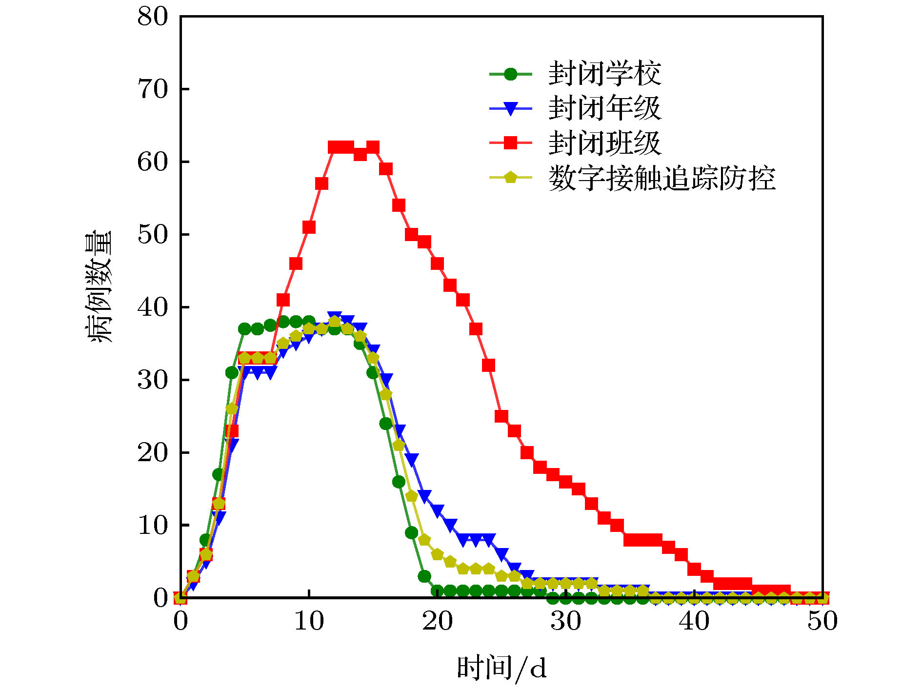After the COVID-19 epidemic leveled off in China, many provinces have started to resume schooling. Long-term contact between students and teachers in such a closed environment in schooling can increase the possibility of the outbreak. Although the school closure can effectively alleviate the epidemic, large-scale students’ isolation not only causes social panic but also brings huge social and economic burden, so before the emergence of school epidemics, one should select and adopt more scientific prevention and control measures. In this study, according to the virus excretion of COVID-19 patients in the disease period, the infectious capacity of patients is redefined. After introducing it into the traditional suspected-exposed-infected-removed (SEIR) model, a continuous infection model that is more consistent with the actual transmission of COVID-19 patients is proposed. Secondly, the effective distance between students is calculated through real contact data. Based on the analysis of the effective distance, three types of isolation area prevention and control measures are proposed and compared with the recently proposed digital contact tracking prevention and control measures. Simulating the spread of COVID-19 in schools through real student contact data and continuous infection models, in order to compare the preventions and control effects of various prevention and control measures in the school epidemic situation, and evaluating the social influence of measures by accumulating the number of quarantines when prevention and control measures are adopted, we find that the COVID-19 can lead the cases to happen on a larger scale in the continuous infection model than in the traditional SEIR model, and the prevention and control measures verified in the continuous infection model are more convincing. Using digital contact tracking prevention and control measures in schools can achieve similar results to those in closed schools with the smallest number of quarantines. The research in this paper can help schools choose appropriate prevention and control measures, and the proposed continuous infection model can help researchers more accurately simulate the spread of COVID-19.