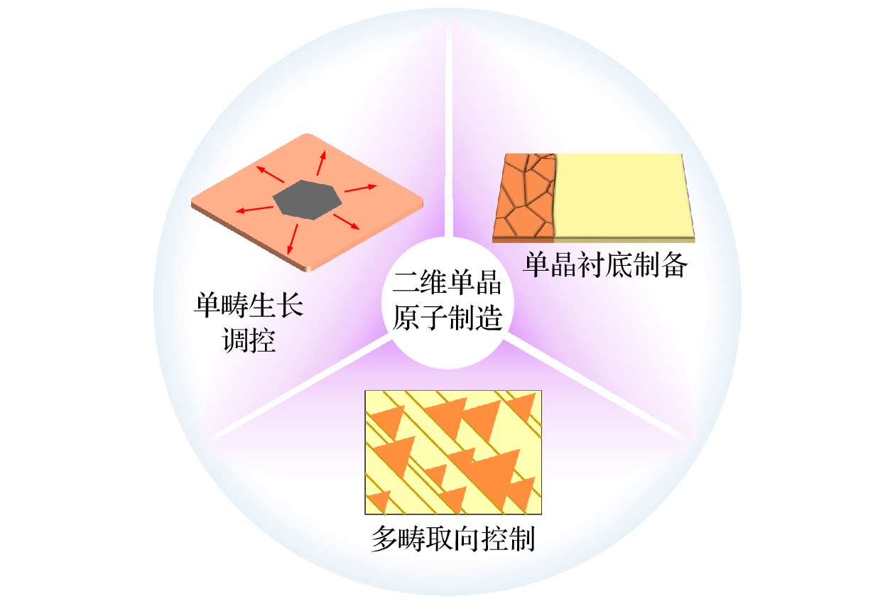 With the shrinkage of the chip feature size, the short-channel effect becomes more and more predominate. The development of new quantum materials for high-performance devices has become imperative for the current technological development. Two-dimensional (2D) materials, due to their excellent physical and chemical properties, are thought to be the promising candidate of quantum materials for achieving the high-end electronic and optoelectronic devices. Like the development of silicon-based chips, the wafer-scale device applications of 2D materials must be based on the fabrication of high-quality, large-size 2D single crystals. However, the existing manufacturing techniques of the well-studied bulk single crystals cannot be fully applied to the fabrication of 2D single crystals due to the interfacial characteristics of 2D materials. So far, single crystals of metre-sized graphene, decimetre-sized hBN and wafer-sized TMDCs have been successfully prepared by chemical vapor deposition, but the sizes of other 2D single crystals are still very limited and not in the same league as conventional semiconductor materials. Therefore, it is urgent to develop an effective preparation strategy for the manufacture of various 2D single crystals. In this review, we mainly overview the fabrication techniques for the meter-scale growth of 2D single crystals, and propose three key modulation aspects in the atomic-scale manufacture, i.e. the growth modulation of 2D single nucleus, the preparation of single-crystal substrates, and the alignment control of 2D single-crystal domains, in order to provide a universal method of fabricating the large-size 2D single crystals. Finally, the prospect of chip devices based on these high-quality large-size novel 2D single crystals is discussed, thereby paving the way for the future industrial applications of electronics and optoelectronics.