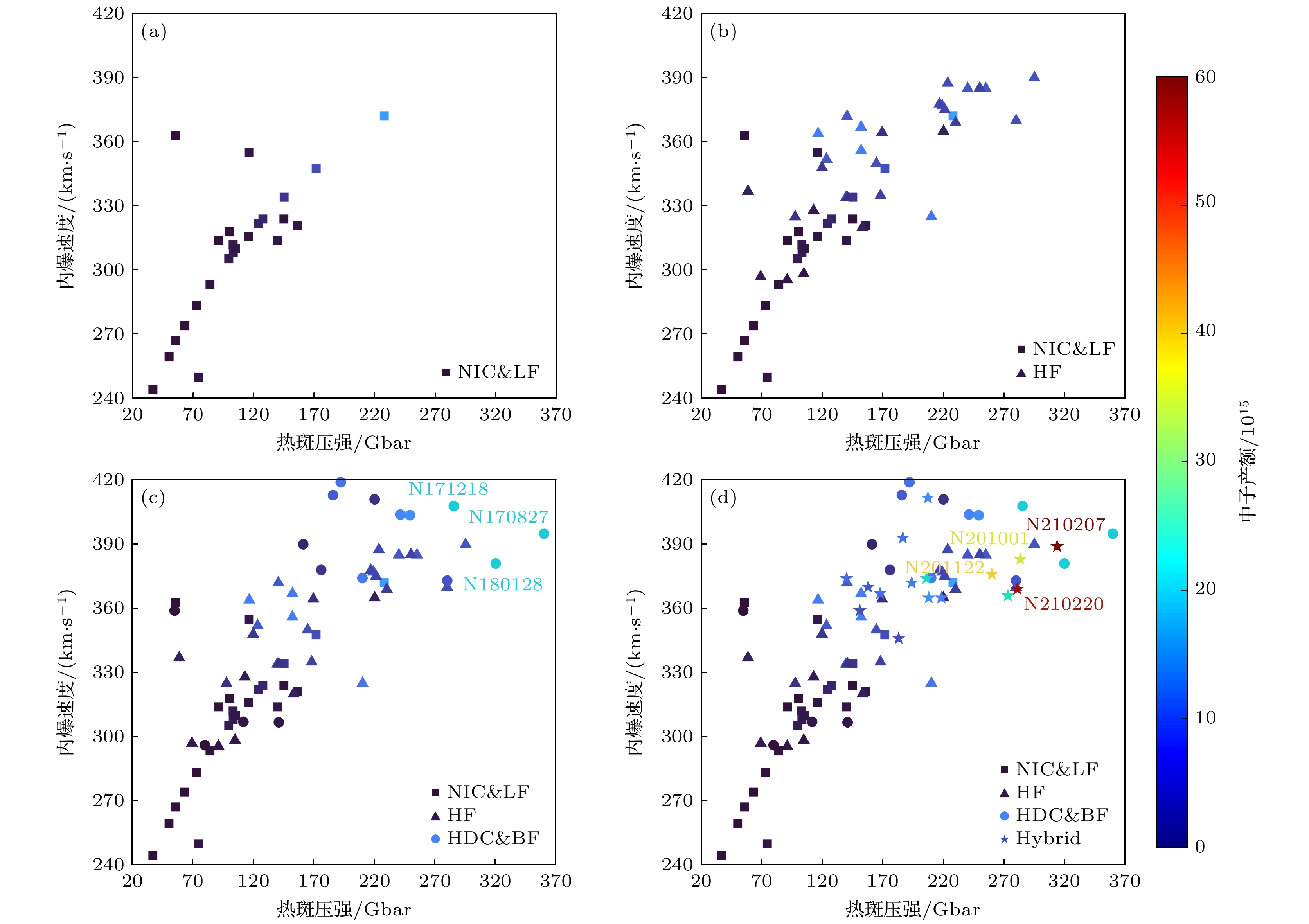 数据情况 完整数据组 可还原数据组 未还原数据组 缺失变量/个 0 1 2 3 4 4或5 数据/组 21 19 14 33 4 122 发次号 发次类别 α Phs/Gbar vimp/(km·s–1) S Ytotal(1015) 年份 填补数据量 N110914 Velocity 1.6 116 355 1.002 0.58 2011 0 N111215 Shape 1.6 103 312 1.022 0.85 2011 0 N120205 LF 2.7 105 310 1.004 0.593 2011 0 N120321 LF 1.6 156 321 0.918 0.536 2012 0 N120405 LF 1.4 145 324 1.137 0.14 2012 0 N130927 DTHF3 shock 2.7 140 334 1.060 5.1 2012 0 N131119 DTHF 2.2 123 352 1.053 5.98 2013 0 N140120 DTHF-CH 2.5 152 356 0.938 9.25 2013 0 N140520 DTHF-HGF-CH 2.4 152 367 0.948 8.98 2014 0 N141123 DTHFAS 1.6 153 320 0.926 1.37 2014 0 N150115 DTHFAS 2.3 168 335 0.931 3.77 2014 0 N150121 DTHF CH 2.2 219 377 0.948 6.26 2015 0 N161030 DTHDCS8BF 4.0 161 390 0.844 1.87 2015 0 N170109 DTHDCS8BF 4.0 220 411 0.844 2.63 2016 0 N170601 HDC 2.4 320 381 0.910 17 2017 0 N170827 DTHDCS9 2.3 360 395 0.910 16.6 2017 0 N191117 672S9HF 2.7 280 370 0.841 4.99 2017 0 N201001 Hybrid-E 3.0 284 383 1.050 34.9 2020 0 N201122 I-raum 3.2 260 376 1.000 37.7 2020 0 N210207 Hybrid-E 3.0 314 389 1.050 60.7 2021 0 N210220 I-raum 3.1 281 369 1.000 57 2021 0 N130501 DTHF 2.0 69 297 1.002* 0.767 2019 1 N130710 DTHF 2.1* 59 337 1.002 1.2 2013 1 N130812 DTHF 2.7 98 325 1.002* 2.785 2013 1 N140225 DTHF 2.2* 141 334 0.938 2.8 2013 1 N140304 DTHF 2.7 116 364 1.103* 9.28 2013 1 N140707 DTHF 2.3* 165 350 0.938 5 2014 1 N140819 DTHF 2.7 295 390 0.805* 5.47 2014 1 N150416 DTHFAS 2.3 210 325* 0.930 8.46 2014 1 N171022 DTHDCS8BF 2.2 280 373 0.867* 5.85 2014 1 N171210 DT672S9HF 2.2 230 369 0.886* 3.68 2015 1 N180128 DTHDCS9BF 3.9 311 432 0.839* 19 2017 1 N180204 DT672S9HF 2.2 250 385 0.880* 4.12 2017 1 N190415 DT672S9HF 2.2 221* 375 0.841 4.37 2018 1 N190422 DT672S9HF 2.7 169* 364 0.841 2.44 2018 1 N190527 DT672S9HF 2.5 224* 388 0.841 4.72 2019 1 N190602 DT672S9HF 2.5 217* 378 0.841 4.25 2019 1 N190918 Hybrid-E 2.7* 140 374 1.100 7.5 2019 1 N191007 Hybrid-E 2.8* 206 374 1.100 18.8 2019 1 N191110 Hybrid(HDC)-E 2.3 273 366 1.028 20 2019 1 N131219 DTHF 2.5* 120 348 1.117* 3.2 2021 2 N140311 DTHF 2.8* 140 372 1.128* 6.06 2014 2 N160418 DTHDCS8 2.6* 176* 378 0.845 2.86 2013 2 N170328 DT672S9HF 2.6* 240 385 0.897* 5.83 2014 2 N170524 DTHDCS9BF 3.1* 186* 413 0.950 6.2 2016 2 N170813 DT672S9HF 2.6* 255 385 0.875* 5.72 2017 2 N180429 Hybrid-B 2.5* 218* 365 0.999 9.5 2017 2 N180618 DTBe672S8HF 2.3* 220 365 0.776* 1.4 2017 2 N180708 Hybrid-B 2.3* 183* 346 1.000 5.2 2018 2 N181007 Hybrid-B 2.6* 194* 372 1.050 9.1 2021 2 N181203 Hybrid-B 2.8* 186* 393 1.050 8.1 2018 2 N181209 Hybrid-B 2.6* 158* 370 1.099 6.3 2018 2 N190203 Hybrid-B 2.2* 151* 359 1.050 4.4 2018 2 N190318 Hybrid-B 2.5* 168* 367 1.099 7.8 2018 2 N110121 Commsissioning 1.0* 55* 363* 0.021 0.02 2018 3 N110201 Commsissioning 2.4* 145* 334* 1.004 0.11 2019 3 N110212 Commsissioning 1.2* 37* 244* 1.004 0.13 2019 3 N110603 Shock timing 1.2* 50* 260* 1.004 0.065 2011 3 N110608 Shock timing 1.8* 84* 293* 1.004 0.19 2011 3 N110615 Shock timing 2.0* 103* 308* 1.004 0.43 2011 3 N110620 Shock timing 2.4* 228* 372* 1.004 0.42 2011 3 N110804 Velocity 1.3* 56* 267* 1.002 0.0048 2011 3 N110826 Velocity 1.6* 73* 284* 1.002 0.17 2011 3 N110904 Velocity 2.2* 124* 322* 1.002 0.46 2011 3 N110908 Velocity 2.2* 128* 324* 1.002 0.59 2011 3 N111029 Shape 1.5* 63* 274* 1.002 0.009 2011 3 N111103 Shape 2.0* 99* 305* 1.002 0.23 2011 3 N111112 Shape 2.5* 172* 348* 1.002 0.6 2011 3 N120311 LF 1.8* 100* 318 0.827* 0.159 2011 3 N120316 LF 1.8* 116* 316 0.838* 0.275 2011 3 N120417 LF 1.8* 140* 314 0.847* 0.532 2011 3 N120626 LF 1.8* 91* 314 0.829* 0.118 2011 3 N160207 DTHDCS8BF 1.3* 80* 296 0.844 0.18 2012 3 N160411 DTHDCS8 1.9* 141* 307 0.845 0.62* 2012 3 N170702 SymcapHDCS9 2.6* 55* 359 0.801* 0.2 2012 3 N171015 DTHDCS9BF 3.2* 192* 419 0.953* 8.1 2012 3 N171029 DTHDCS9BF 3.4* 201* 436 0.969* 10 2016 3 N171112 SymcapDTHDCS8BF 1.8* 112* 307 0.902* 0.7 2016 3 N171119 DTHDCS9BF 3.4* 206* 433 0.977* 11 2017 3 N171218 DTHDCS9 2.9* 285* 408 0.987 17 2017 3 N180121 DTBe672S8HF 2.1* 113* 328 0.818 0.8 2017 3 N180218 DTHDCS9 3.1* 249* 422 0.990 11.79 2017 3 N180226 DTHDCS9BF 2.9* 241* 404 0.979 10 2017 3 N180909 DT672S9HF 3.2* 262* 427 1.002 14 2017 3 N180930 DT672S9HF 3.5* 259* 451 1.004* 15 2018 3 N181104 Hybrid 2.6* 207* 412* 1.050 10.1 2018 3 N190721 DTHDCS8BF 2.9* 249* 404 0.988* 11 2018 3 N121125 SymcapLF 1.4* 74* 250* 0.954* 0.25 2018 4 N130530 DTHF 2* 105* 298* 1.007* 0.65 2018 4 N130802 DTHF 1.8* 91* 296* 0.984* 0.53 2018 4 N170821 DTHDCS9 2.8* 210* 374* 1.009* 8.7 2019 4 -