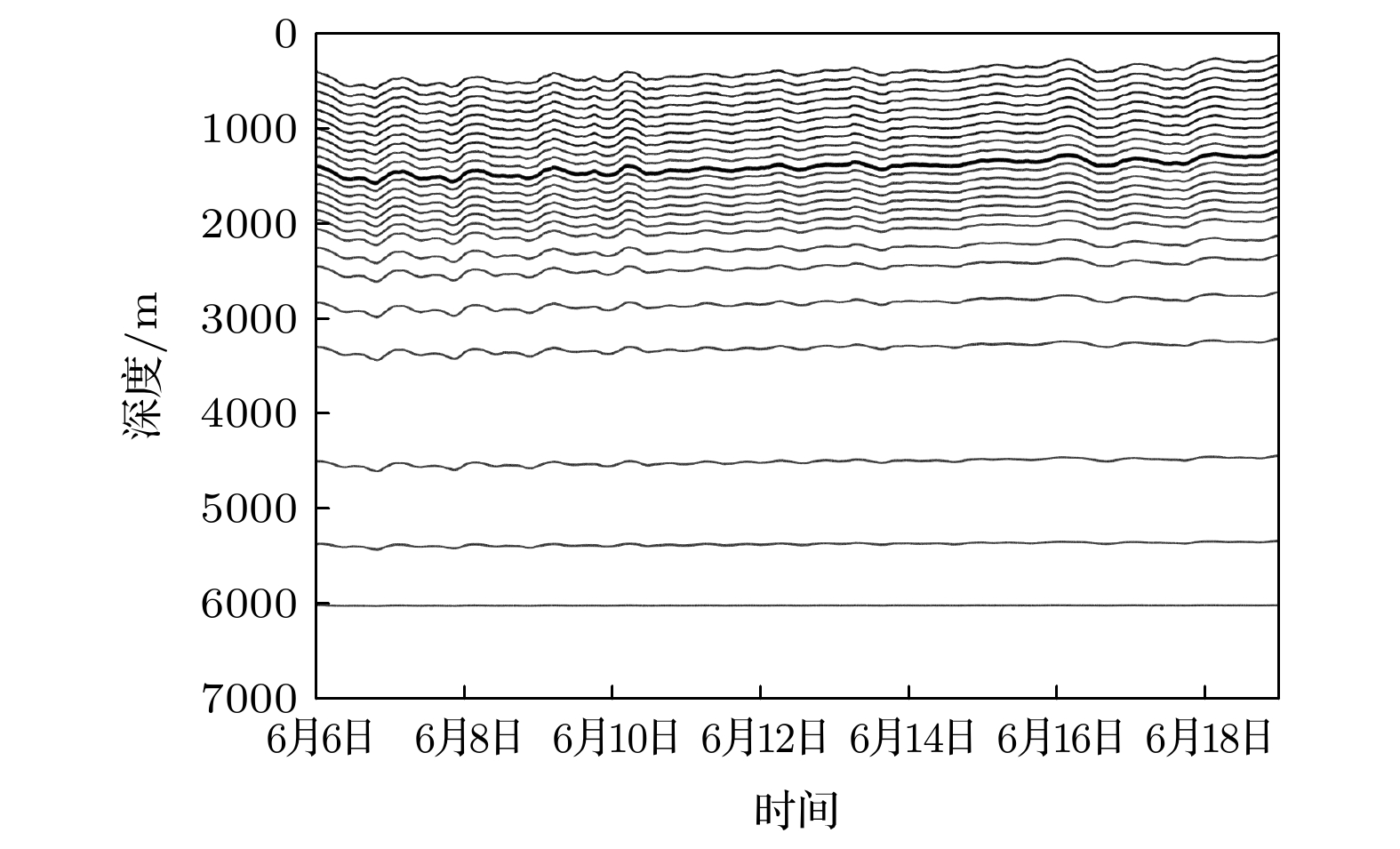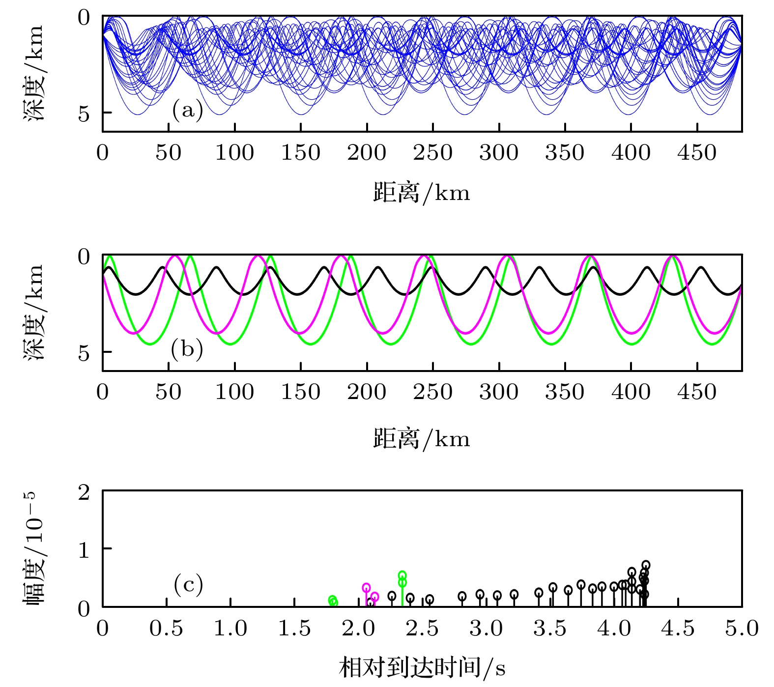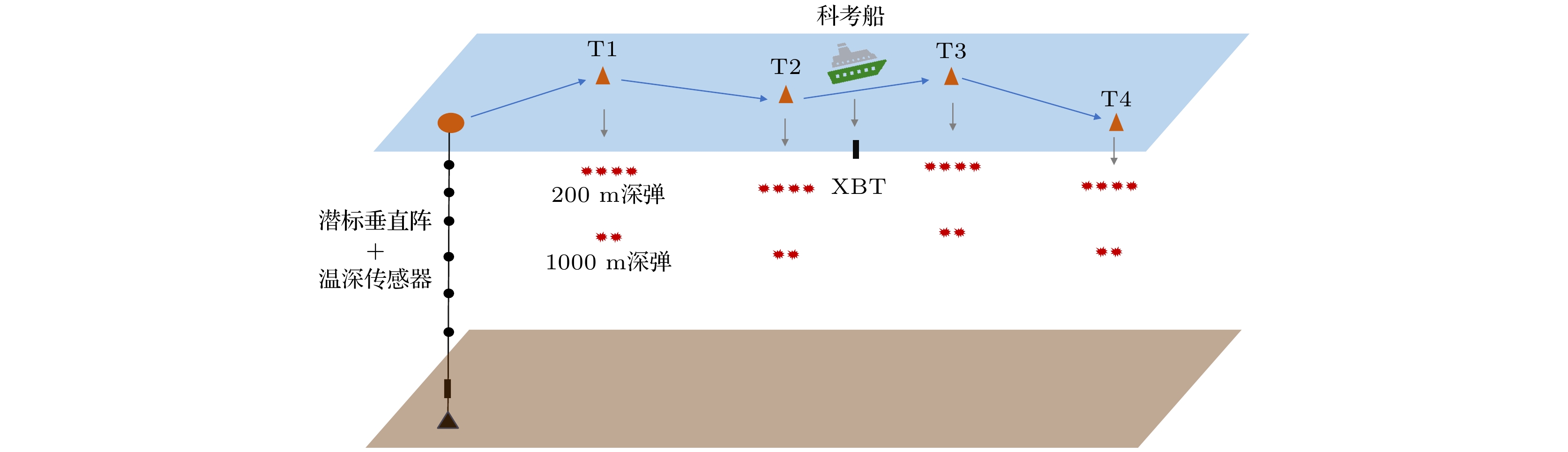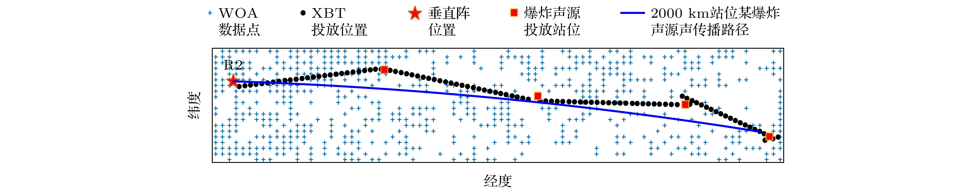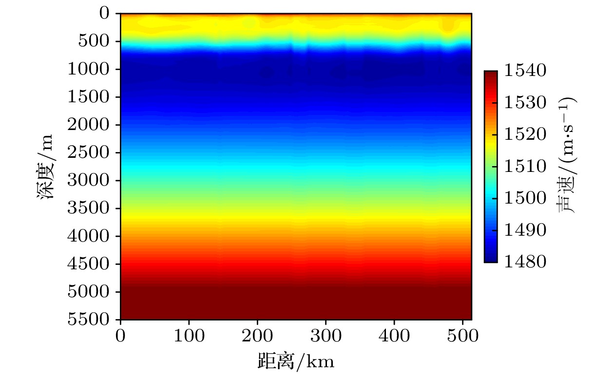 声信号在海水中能够传播上千千米, 远距离声传播与近距离声传播的特性不同. 本文利用西太平洋声源与接收最远距离近2000 km的水声实验数据, 对实验海区的海洋环境信息、实验使用的接收垂直阵信息进行处理, 分析大洋完全声道环境下, 远距离声传播能量衰减规律和多途到达结构特性. 在远距离传播能量衰减规律方面, 随着传播距离增大, 海水吸收对声能衰减的作用凸显, 海水吸收系数的选取对声场能量预报的准确性至关重要. 较低频信号海水吸收较小, 中心频率100 Hz的声信号, 传播距离从1000—2000 km, 传播损失仅增大6 dB左右. 深海声道远距离声传播多途到达结构特性方面, 实验海区温跃层声速较高, 使得到达接收点的本征声线数目更多, 多途到达结构更复杂, 海面反射声线形成的到达结构处在整体到达结构的靠前位置, 且能量相对较强; 受西北太平洋副热带模态水的影响, 声速剖面存在双跃层结构, 导致部分声线到达接收点的时间较早, 多途到达结构在时间轴上的长度延长.Acoustic signals can travel thousands of kilometers in seawater, and the characteristics of long-range sound propagation are different from short range propagation. This paper is based on a long-range underwater acoustic experimental data obtained from the western Pacific Ocean, where the farthest propagation distance is nearly 2000 km. The ocean environment information and vertical line array information are carefully processed. We analyze the attenuation of long-distance acoustic propagation in seawater and multi-path arrival structure characteristics under the complete acoustic channel environment of the ocean. In terms of the attenuation law of long-distance propagation energy, with the increase of propagation distance, the effect of seawater absorption on the attenuation of sound energy becomes prominent, and the selection of absorption coefficient is very important for the accurate prediction of sound field energy. Absorption in seawater of low frequency signals is small, and the transmission loss of acoustic signal with 100 Hz center frequency increases only by about 6 dB when the propagation distance increases from 1000 km to 2000 km. In terms of multi-path arrival structure characteristics of deep-sea acoustic channel for long-distance sound propagation, the thermocline sound velocity profile in the experimental sea area has a higher sound speed, making the number of eigenrays reaching the receiving point more and the multi-path arrival structure more complex. The arrival structure formed by sea surface reflected eigenrays is at the earlier position of the overall arrival structure and has relatively strong energy. Owing to the influence of subtropical water over the northwest Pacific Ocean on the sound speed profile, the time of some eigenrays arriving at the receiving point is earlier, and the length of multi-way arrival structure on the time axis is prolonged.