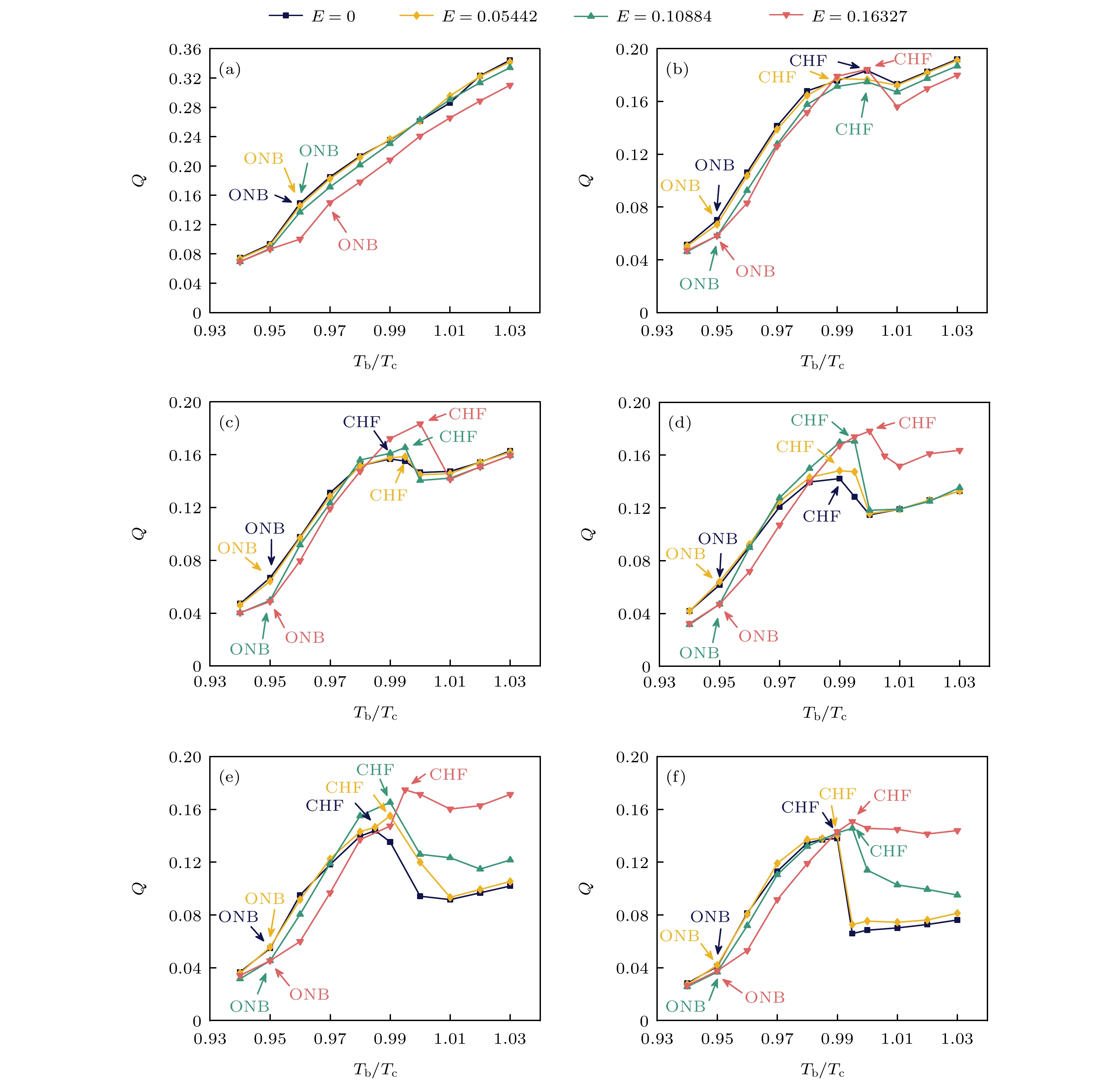 采用耦合电场模型的相变格子Boltzmann (LB)方法研究了饱和池沸腾传热性能, 重点分析了均匀电场作用下加热器表面润湿性以及加热器长度对沸腾过程中气泡生成、合并、断裂等动力学行为的影响以及气泡的动力学行为对池沸腾传热性能的影响. 结果表明, 电场的作用能否强化沸腾传热与加热器的长度以及润湿性有直接关系. 对于亲水表面, 当加热器长度