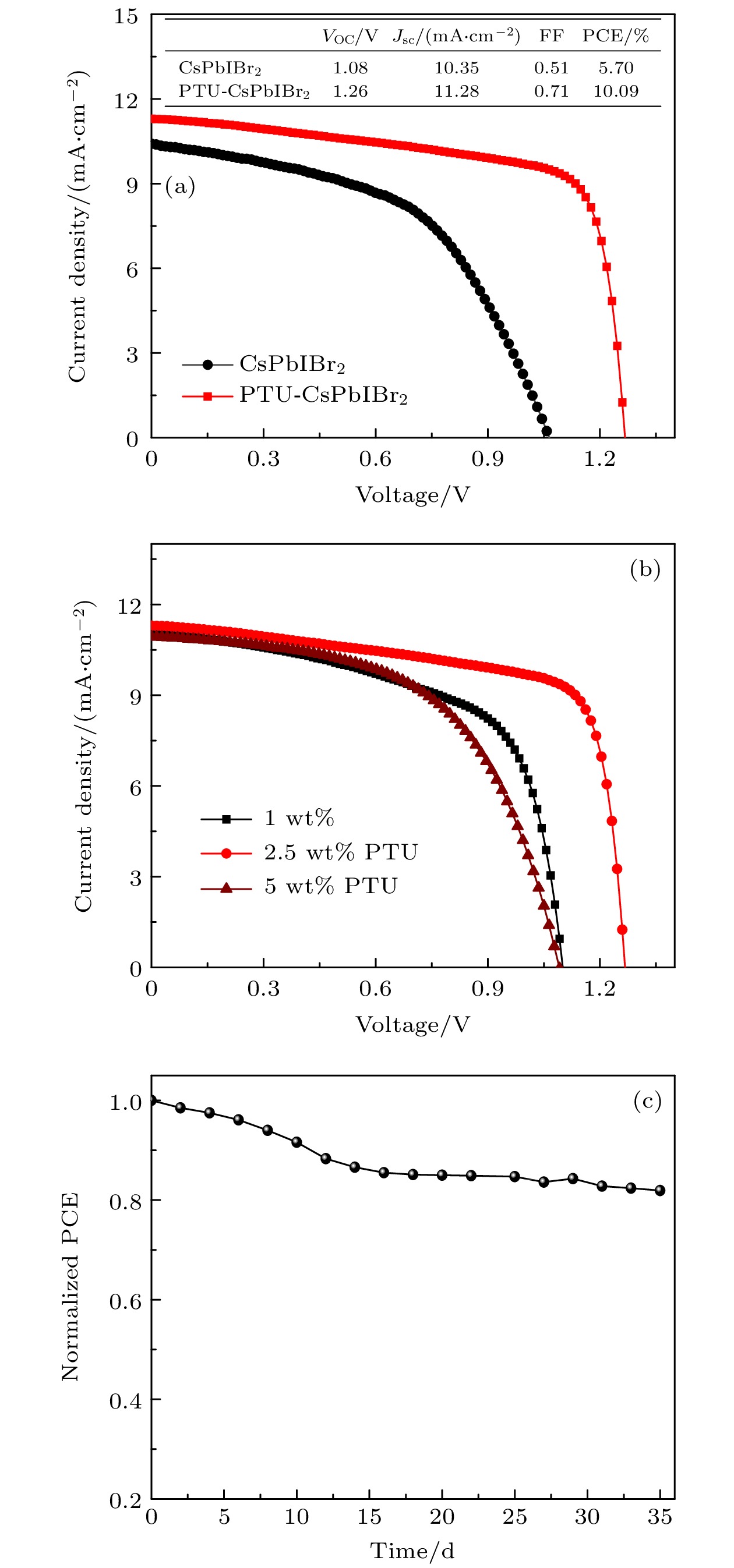 Tailoring of CsPbIBr2perovskite crystallization via phenylthiourea for stable and efficiency perovskite solar cells
