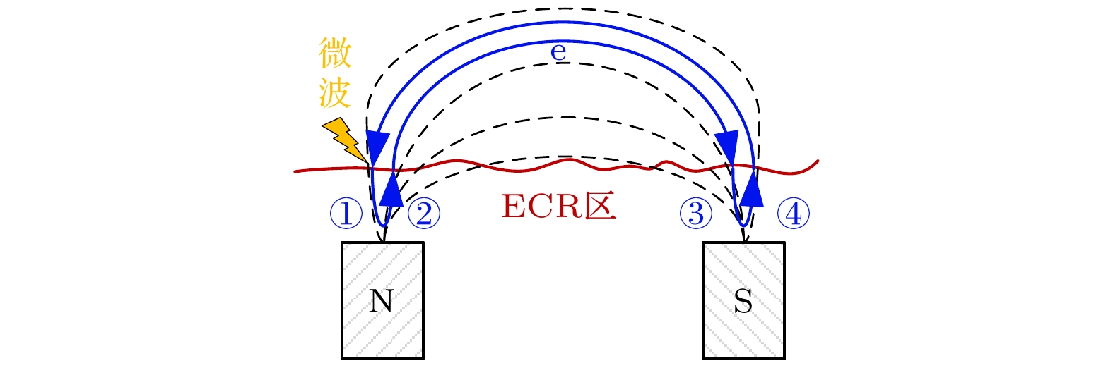 Discharge chamber length is one of the factors in optimizing the electron cyclotron resonance ion thruster performance. It adjusts the distance between bulk plasma and grid system to change the plasma density upstream of the screen grid, which will affect the ion beam current and focusing state to achieve optimization purpose. However, new evidence shows the discharge chamber length plays an important role in ionization during ion beam extraction, which means that the effect of discharge chamber length on the performance of electron cyclotron resonance ion thruster should be reexamined. After applying grid voltages, another high electron temperature region located upstream of the screen grid is observed in the integrated simulation using particle-in-cell with Monte Carlo collision method, but it is not observed in the traditional discharge chamber simulation. It is believed in the paper that the high electron temperature region exists objectively, because the Child-Langmuir sheath will repel electrons moving towards screen grid back to magnetic mirrors again. Those electrons will gain energy from microwave, and finally form a high electron temperature region along the Child-Langmuir sheath. This phenomenon implies that discharge chamber length can adjust the high electron temperature distribution upstream of screen grid to affect the plasma generation. Therefore, in this work, the effect of discharge chamber length on discharge and ion beam performance is systematically studied by adopting the integrated simulation. In this paper, three ion thrusters with different discharge chamber lengths are simulated. Under the conditions of same magnetic field and operation parameters, the comparisons of electron energy gain, plasma parameter distributions and ion beam current among the three ion thrusters are conducted. The results show that shorter discharge chamber length has higher electron energy gain, plasma density and voltage, but smaller ion beam current. This abnormal phenomenon can also be seen experimentally. By analyzing the ionization rate inside the chamber, it can be seen that high-temperature electrons upstream of the screen grid have a significant contribution to ionization. And thus, a little bit longer discharge chamber length with lower plasma density inside the chamber has bigger ion beam current for having higher plasma density upstream of the screen grid. According to this phenomenon, an electron heating mode is proposed: electrons gain energy by reciprocating through the electron cyclotron resonance layer between the Child-Langmuir sheath and magnetic mirrors. This heating mode can be used as a supplement to the electronic constraints outside the magnetic mirrors to improve the energy utilization efficiency of the thruster, which can provide a new insight into the electron cyclotron resonance ion thruster design in the future.