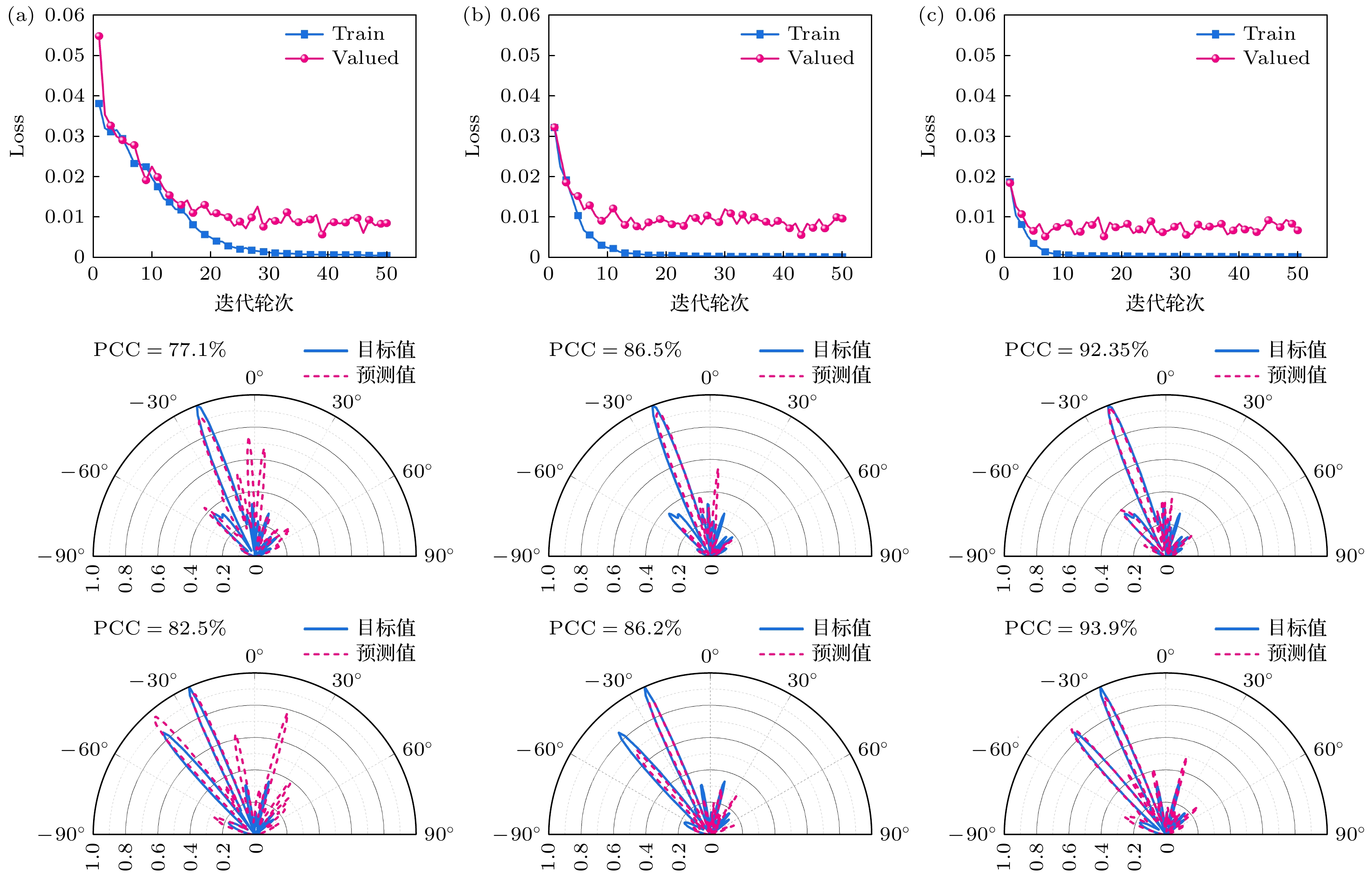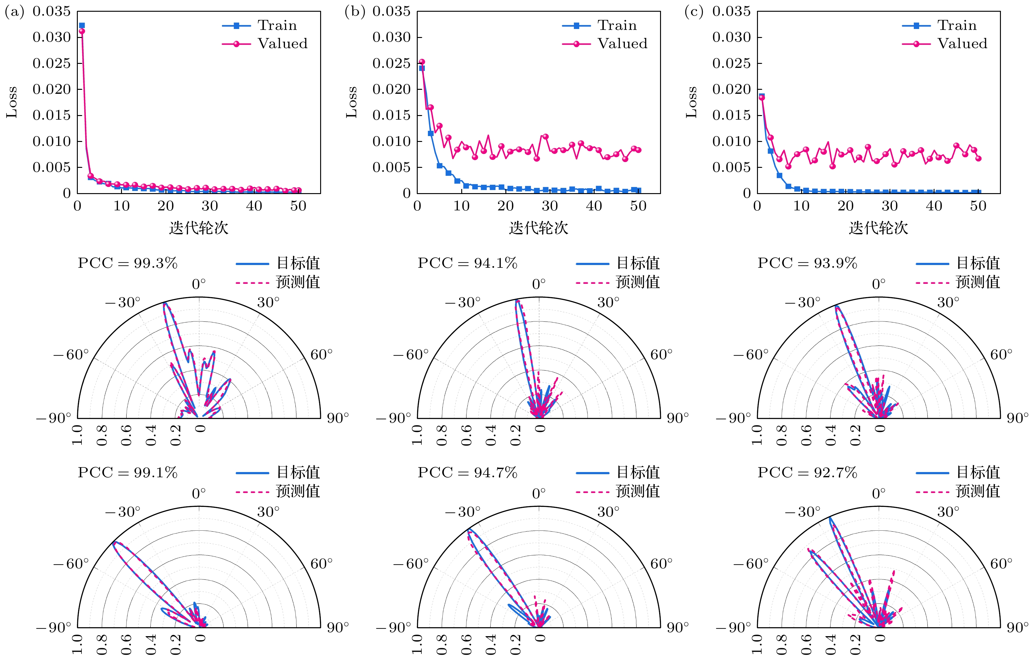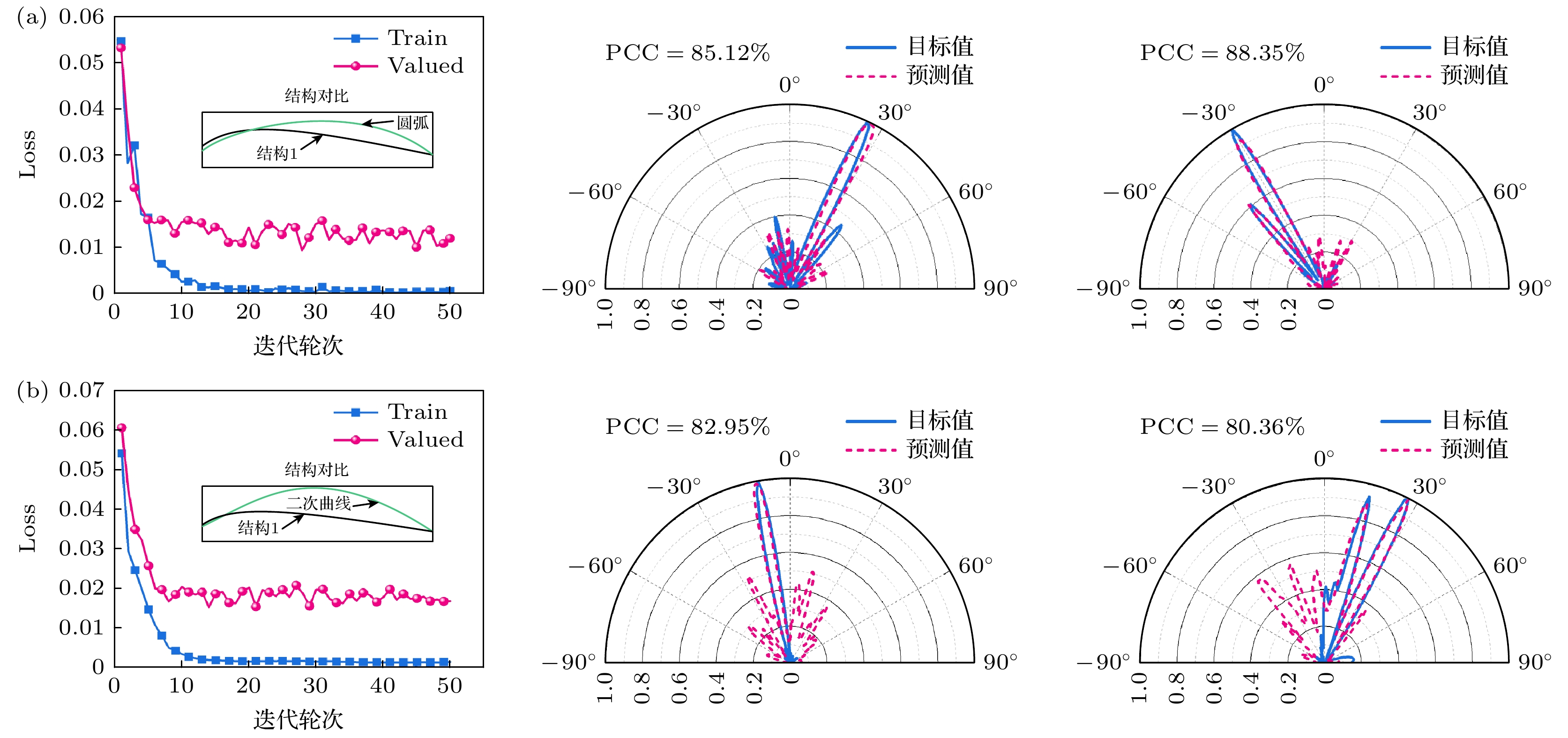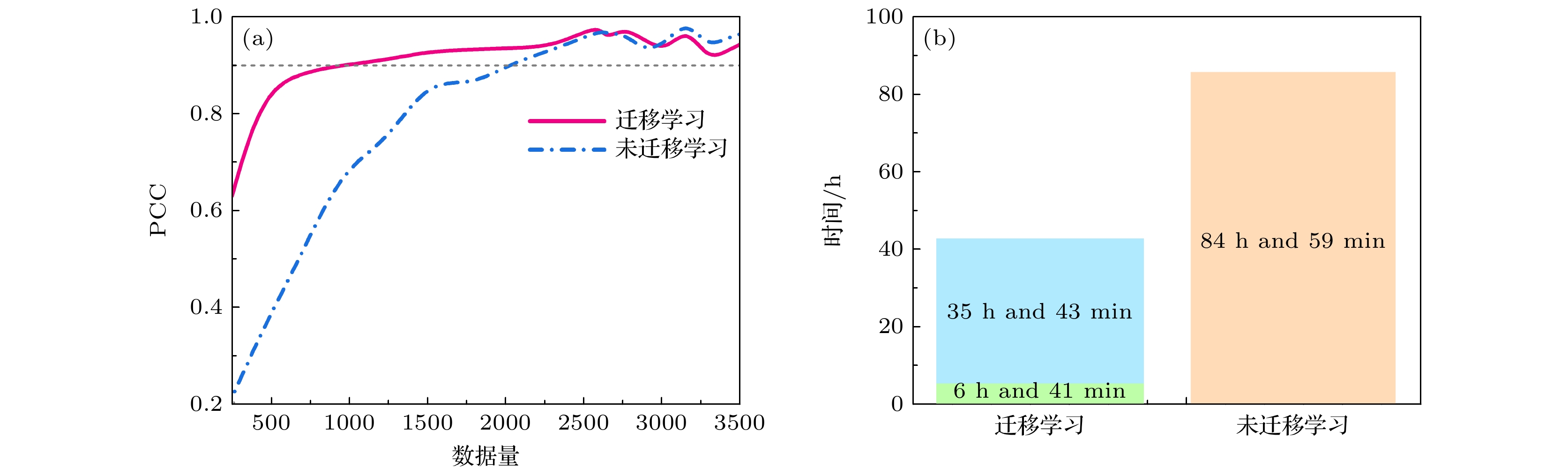 共形超构表面具有灵活的外形, 便于适应复杂的平台结构, 在移动载体散射调控方面具有显著的应用优势. 但共形超构表面散射场电磁仿真时间周期长、优化复杂, 难以支撑共形超构表面的敏捷设计. 本文提出了一种. 首先, 根据天线理论和全波电磁仿真在物理机理上的同一性, 预先用大量理论数据训练源域模型, 构建相位分布与散射场的初始映射模型; 然后, 将少量全波仿真训练数据作为目标域样本, 依托预训练、参数冻结和模型微调实现初始模型的有效迁移, 完成超构表面相位分布到散射场映射模型的构建; 最后, 针对不同的共形几何结构, 在迁移学习模型基础上进行了二次迁移. 结果表明, 本文所提方法的散射场计算时间较全波仿真下降3个数量级, 在少样本条件下应用迁移学习后散射场计算精度平均提升19.8%, 训练数据量仅占未迁移学习模型的42.9%, 数据集收集时间缩短50.1%, 同时在超构表面共形结构发生改变时具有一定泛化性.Conformal metasurfaces with flexible structures can fit complicated platforms and have obvious advantages in moving platforms scattering manipulations. However, the far-field simulation of conformal metasurface is time-consuming and difficult to optimize, thereby making the its agile design difficult. Here, an efficient and intelligent scattering field calculation method is proposed based on transfer learning for conformal metasurfaces. Firstly, according to the consistency in physical mechanism between antenna theory and full wave simulation, an initial mapping model between phase distribution and far-field of metasurface is constructed and pre-trained based on a large quantity of theoretical data in source domain. Secondly, by pre-training, parameter freezing and model fine-tuning, the far-field prediction model for full wave simulation is transferred and achieved successfully, based on a small quantity of full wave simulation data in target domain. Finally, the transfer learning model for far-field prediction is transferred once again for conformal metasurfaces with different structures. Results indicate that the proposed method only consumes 0.1% of full wave simulation time for conformal metasurface far-field calculation. In fewer samples, the model with transfer learning can improve the average accuracy by 19.8%, and the training data account for only 42.9% for the models without transfer learning, which reduces the training data collection time by 50.1%. Moreover, our far-field calculation method demonstrates good transfer performance between conformal metasurfaces with different structures.