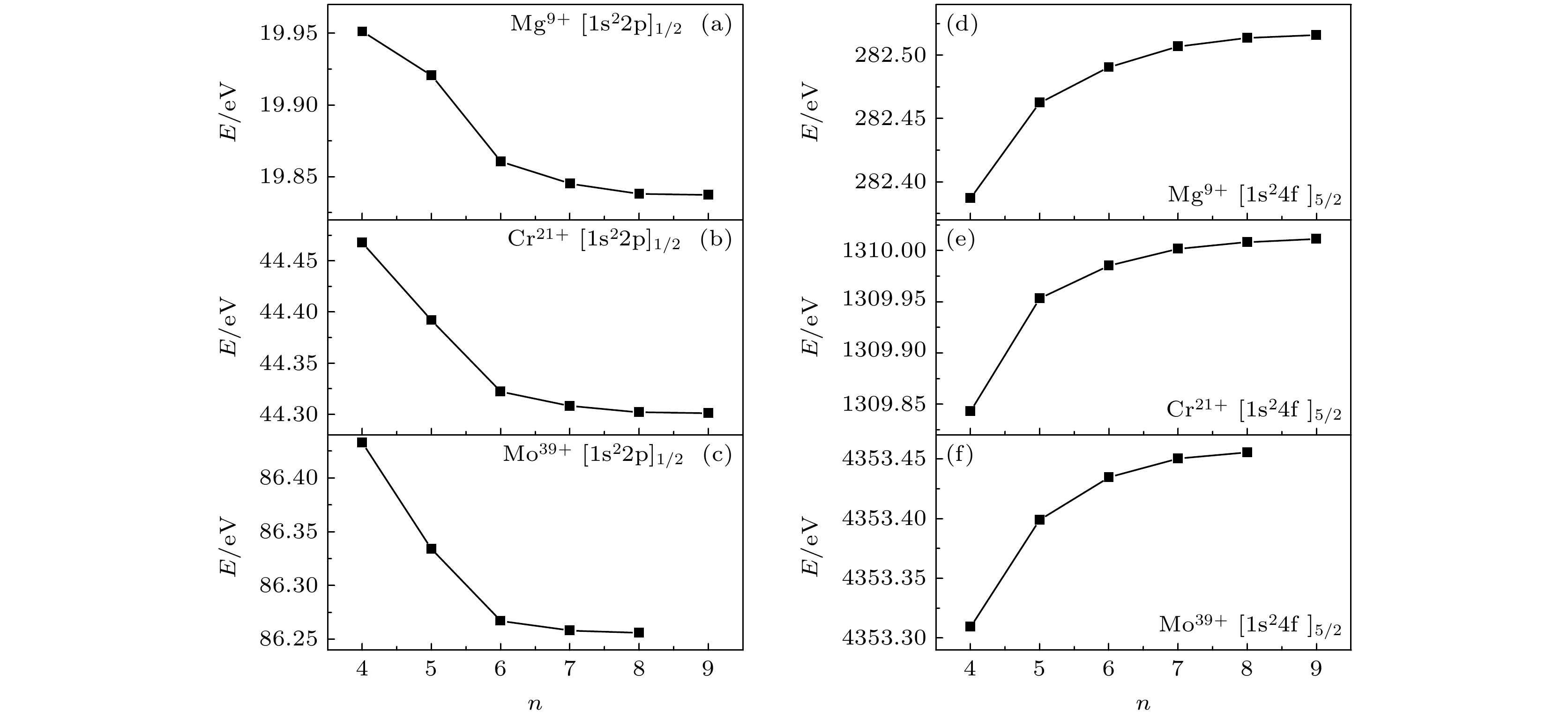 注: a)n = 1, 2, 3, 4的轨道为光谱轨道, $ n\geqslant 5 $的轨道为赝轨道; b)1s22s, 1s22p等为非相对论参考组态, “S”, “D”分别表示单、双重激发产生组态; c)MCSCF计算时优化的能级.