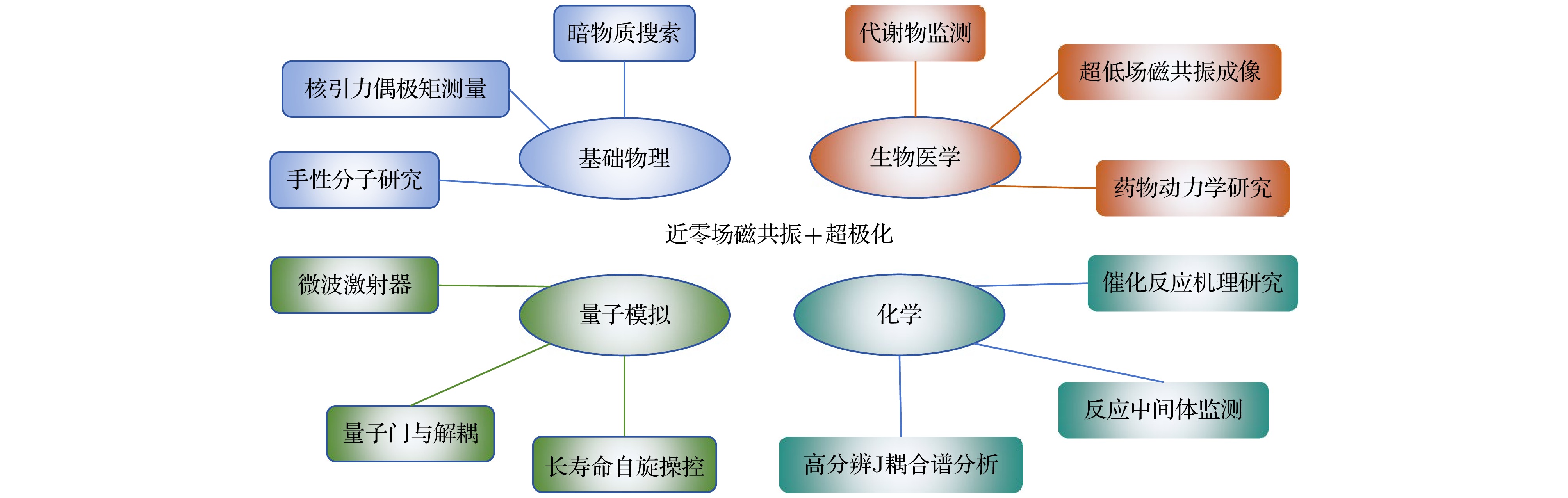 近零场磁共振波谱和成像是一个快速发展的前沿领域, 其在化学样品快速分析和便携式磁共振诊断方面拥有巨大的应用潜力, 伴随着其核心部件原子磁力计的成熟, 国际上许多学者已提出相关的临床应用方案与计划. 近年来, 超极化技术的快速发展弥补了近零场磁共振信号强度不足的问题. 溶解动态核极化(dDNP)、仲氢超极化(PHIP/SABRE)、化学诱导动态核极化(CIDNP)以及自旋交换光抽运(SEOP)等超极化技术在近零场磁共振中已得到初步应用. 结合超极化技术, 可以摆脱磁铁, 显著提高磁共振信号强度, 从而推动近零场磁共振在化学分析与人体成像中的应用, 为快速的化学样品分析和基于磁共振成像的快速诊断提供更便携的工具. 本文将综述的相关研究进展.