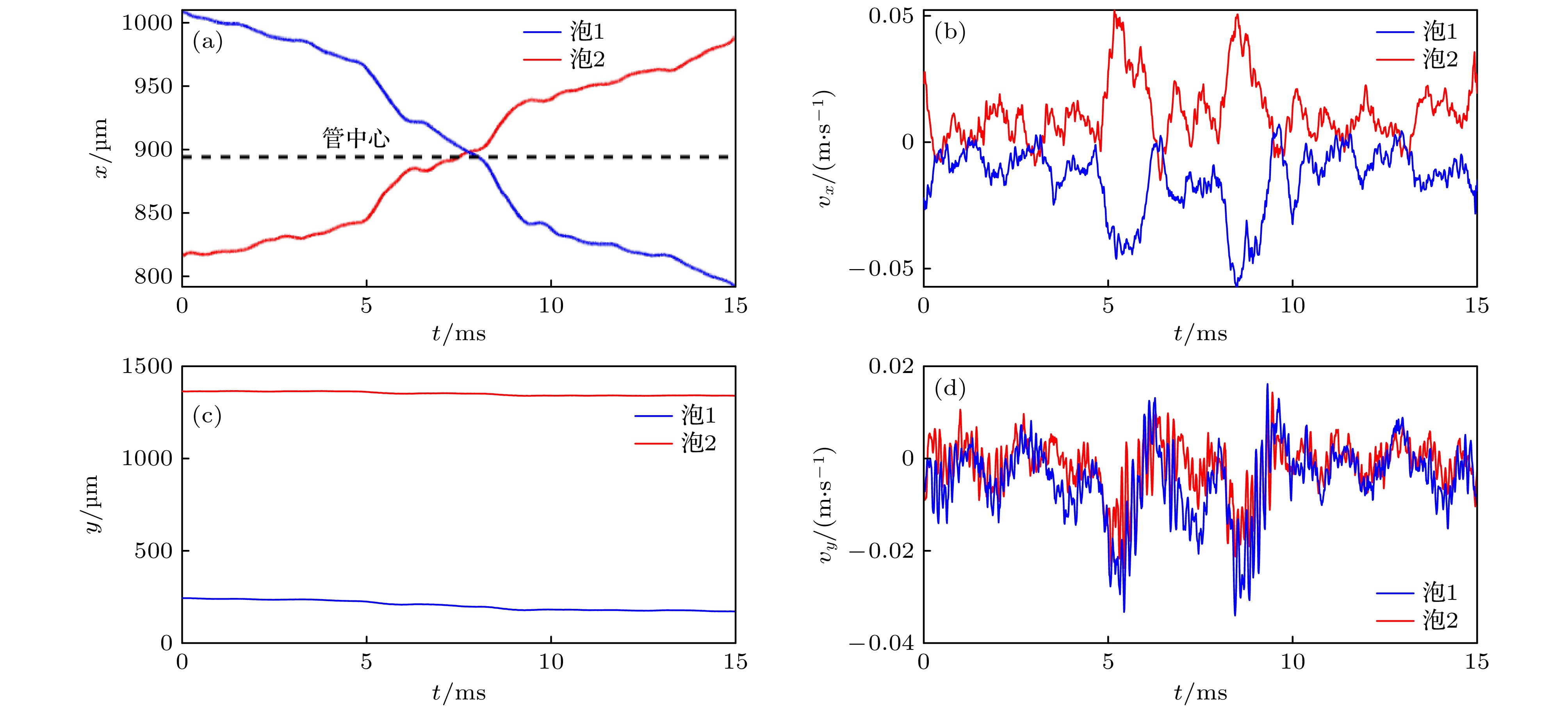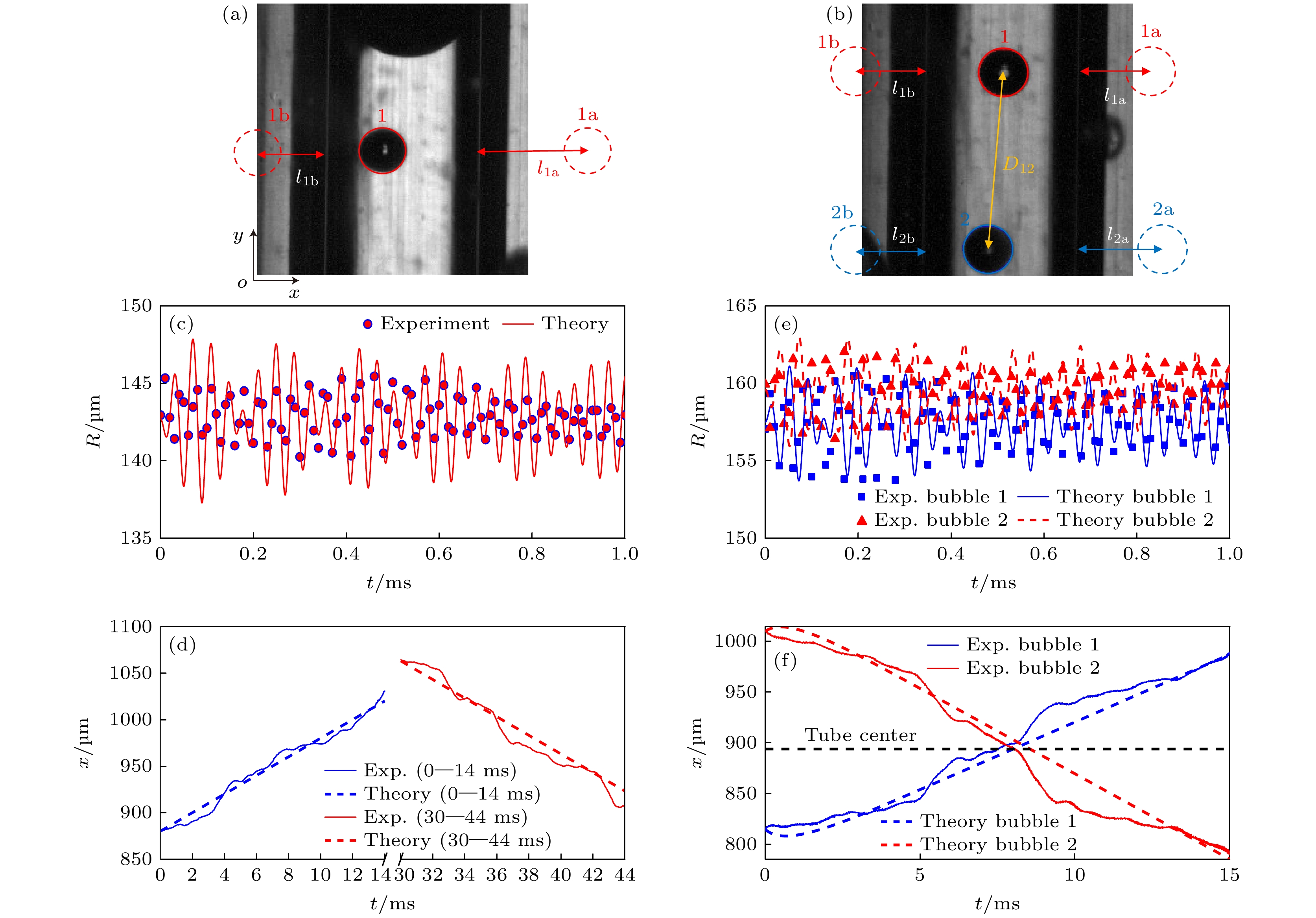 This study systematically investigates the bouncing behavior and dynamics of microbubbles under ultrasound excitation within a rigid capillary in order to offer quantitative insights into their oscillation characteristics, migration trajectories, and phase modulation mechanisms for applications in microfluidics, contrast-enhanced ultrasound imaging, and controlled drug delivery. A high-speed imaging system is employed to track the motion of single-, double-, and triple-bubble systems in a viscoelastic medium inside a capillary with a 0.5-mm inner diameter. Under a 28-kHz ultrasound field, bubble dynamics are captured at 100000 frames per second. Image processing techniques, including dynamic threshold segmentation and morphological operations, are employed to extract bubble contours and centroid trajectories. Spectral analysis via fast Fourier transform (FFT) is performed to identify oscillation frequencies and modulation characteristics. Experimental results show that a single bubble undergoes periodic lateral migration, with oscillation frequency slightly below the driving frequency, and that sideband distribution in its spectrum is asymmetric. In the two-bubble system, five different dynamic stages are identified: initial suppression, accelerated migration, interaction dominance, position exchange, and a secondary approach to the wall. The bubbles oscillate at a common dominant frequency of 27.32 kHz but maintain phase difference. Modulation sidebands of approximately 0.3 kHz are observed, indicating nonlinear coupling. The three-bubble system exhibits more complex spatiotemporal evolution, including sequential migration and transitions between triangular and mirror-symmetric configurations. A notable sideband at 0.1 kHz suggests that multi-bubble synergy enhances nonlinear behavior. The tube diameter and fluid viscosity are found to influence the bouncing period through added mass effects and viscous energy dissipation, respectively. The period increases significantly with tube diameter decreasing, and decreases with fluid viscosity lessening. Theoretical modeling incorporates the mirror bubble effect into the coupled Keller-Miksis equations to account for wall confinement, thus successfully simulating the oscillation and translation of confined microbubbles. Numerical analysis further indicates that inter-bubble distance, wall proximity, and medium viscosity modulate the dynamic behavior of the system. Specifically, the bubble resonance frequency is regulated by inter-bubble distance and wall confinement. The two-bubble system exhibits both in-phase and out-of-phase modes, with the latter being more sensitive to distance variation. Near the wall, the oscillation frequency decreases, and the phase difference attenuation accelerates. Increasing medium viscosity will weaken the phase coupling between bubbles, an effect which is particularly evident for smaller bubbles. This study not only enhances the understanding of multi-bubble synergistic effects in confined spaces but also provides a theoretical foundation and technical reference for optimizing ultrasound contrast agents, designing microfluidic devices, and developing targeted therapies in biomedicine.