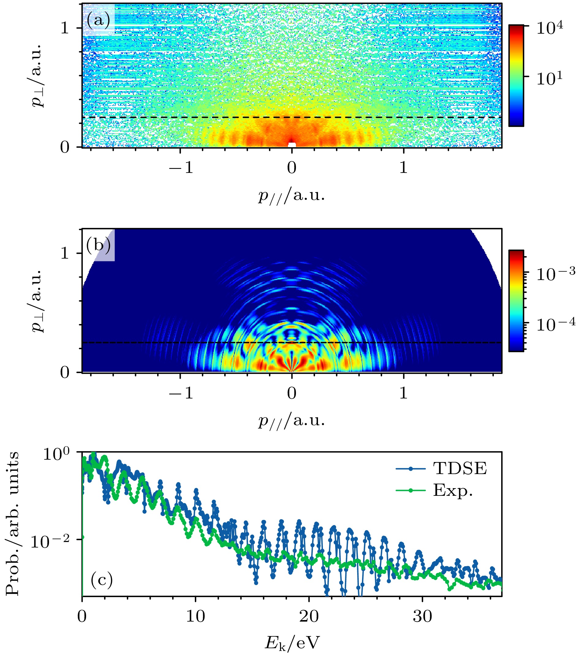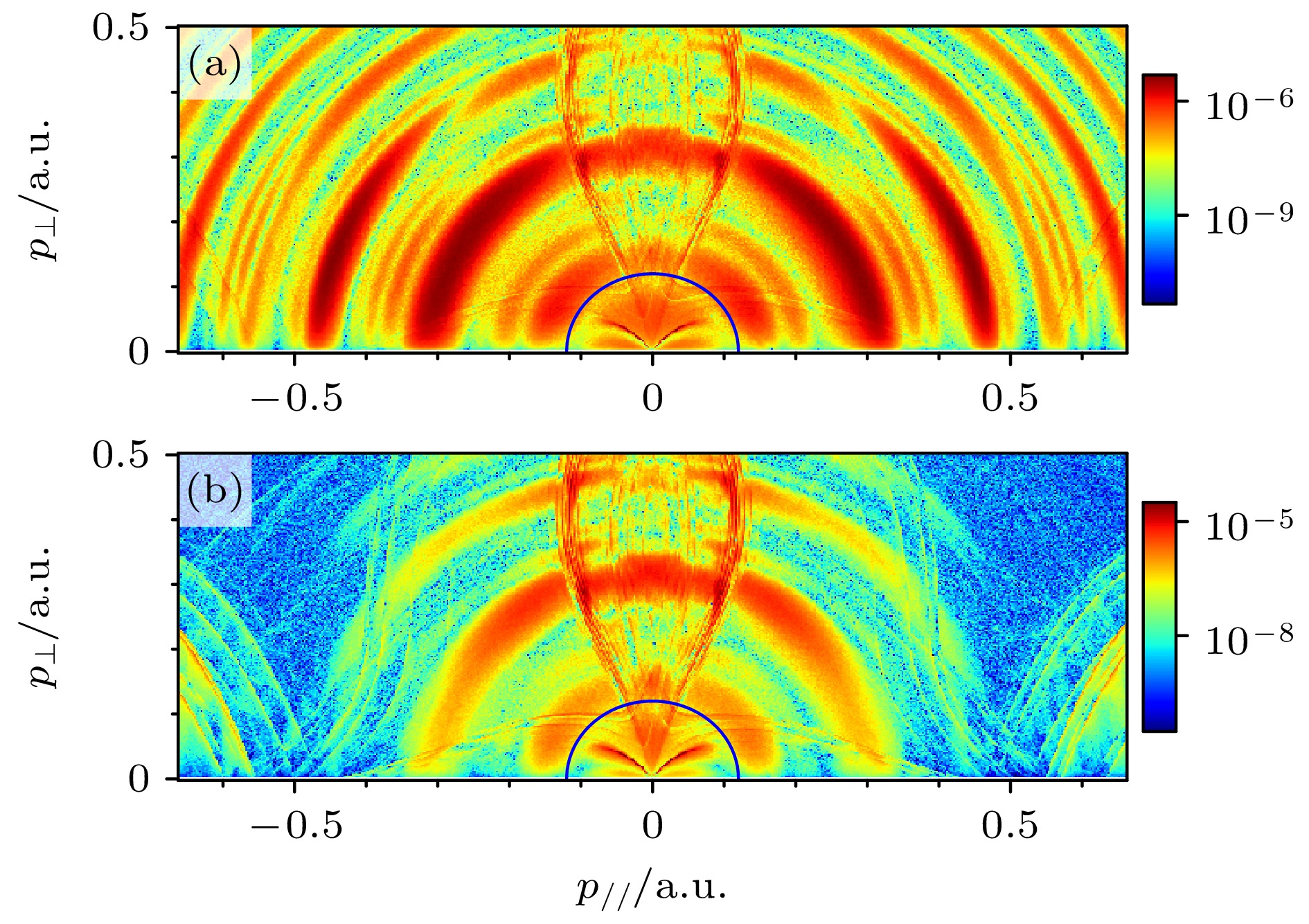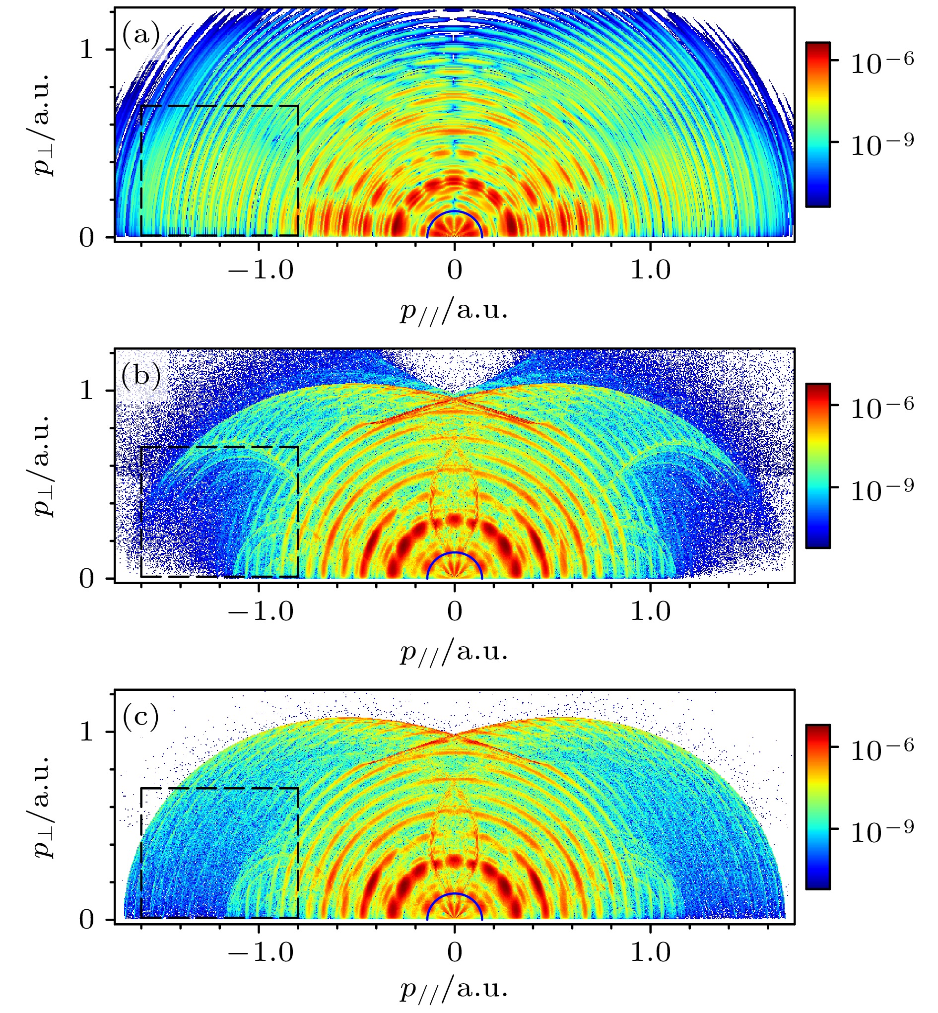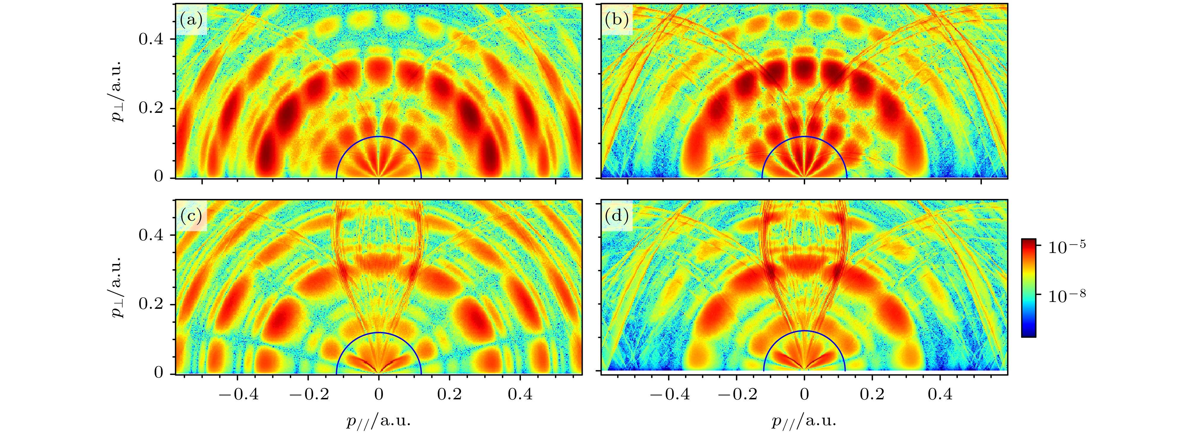 • 结合实验与理论研究, 探索了在多光子区域($ \gamma \gt 1 $)短脉冲激光作用下氩原子的光电离过程. 通过建立包含隧穿出口处电子初始纵向动量的半经典模型, 模拟了光电子动量分布. 该方法基于费曼路径积分理论框架, 为每条电子轨迹赋予动力学相位, 从而实现了对量子干涉效应的研究. 模拟结果与含时薛定谔方程(TDSE)数值解高度符合, 同时发现, 初始纵向动量的引入对于精确重现电离阈值附近观测到的光电子谱干涉结构至关重要, 并揭示出离子实极化对低能谱影响甚微. 本文的研究结果强调了超短脉冲光电离中非绝热势垒下动力学的重要性, 并提供了基于量子轨道的清晰物理图像.