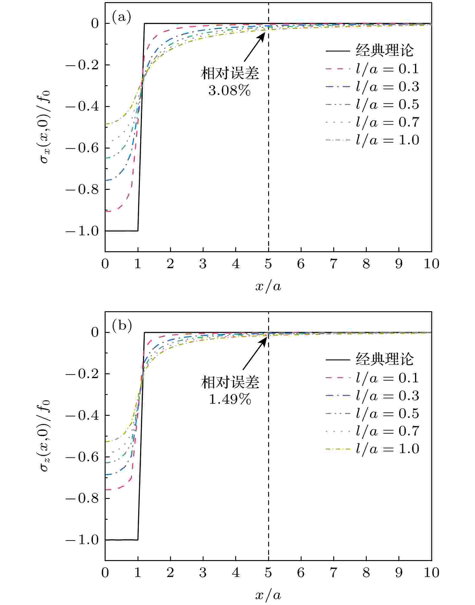 随着微纳声学器件的快速发展, 其核心声学结构已进入纳米尺度范畴, 表面效应对薄膜材料性能的影响日益凸显, 经典弹性理论面临挑战. 本文基于表面弹性理论, 引入表面能密度研究纳米尺度下的表面效应, 采用傅里叶积分变换法推导出纳米尺度SiO2/Si异质结构薄膜表面牵引力下应力场与位移场的解析表达式. 结果显示, 若以表面应力分布与经典理论相差3%作为判断标准, 在激励区域宽度2a的5倍范围内, 材料的微观特性彰显主导地位. 随着激励区域不断减小, 在激励区域内及边界附近表面应力分布较经典理论更加集中, 剪切应力于边界处有极大值, 材料表面刚度与抗变形能力增加, 横向与纵向位移较经典理论减小. 纳米尺度异质结构存在显著表面效应, 导致应力和位移分布明显偏离弹性理论, 经典弹性假设在相应纳米尺度范围不再适用. 以上结果表明, 在纳米尺度固体表面中, 超高频纳米波长声波传播将明显受到尺度效应影响, 经典弹性波理论在纳米尺度存在失效现象, 这对纳米声学理论研究具有参考价值.