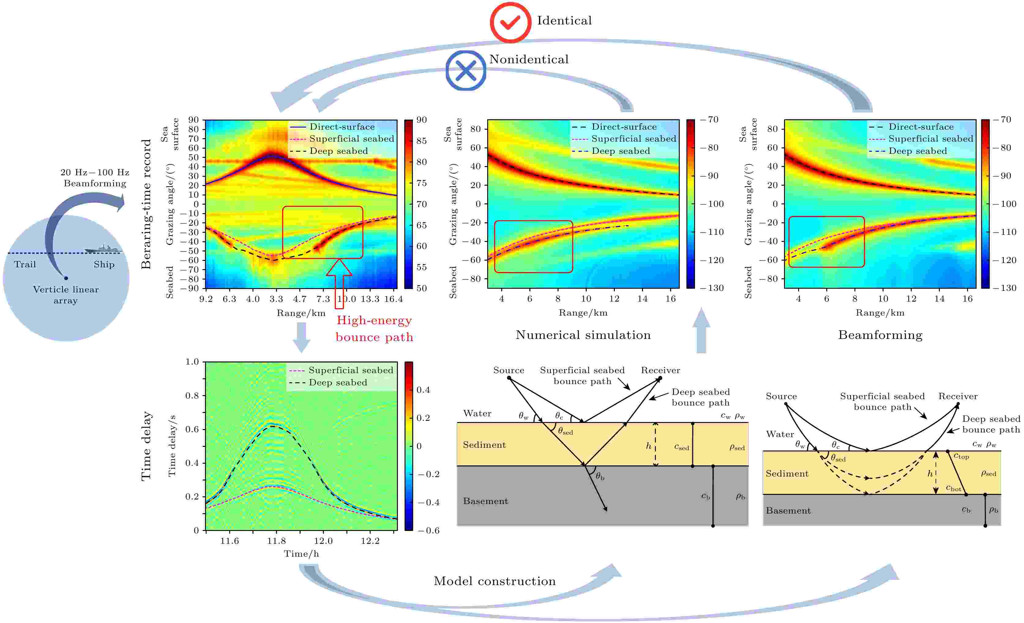 甚低频声波因具有强的穿透性, 其在海洋环境中的传播特性可受到海底深层地质结构的影响. 在已开展的海洋试验中, 垂直阵观测到水面航船的甚低频辐射噪声可激发高能量的深层海底声弹射路径, 但其激发机理尚不明确, 本文针对该现象开展理论基础研究. 基于海底的沉积过程构建包含声速梯度的等效海底模型, 并利用波数积分数值计算方法模拟声波跨海水-海底-海水的传播过程, 深入探究深层海底结构对声传播的影响, 进而揭示高能量海底声弹射现象的激发机理和相关特性规律. 研究表明, 受地质作用影响, 海底沉积层中可产生一定的声速梯度, 该梯度结构使得入射的甚低频声波在深层海底介质中传播时可发生“声翻转”效应, 将大部分能量重新辐射回水声场, 从而激发高能量海底声弹射路径. 在该过程中, 沉积层的厚度和声速结构共同作用影响表层和深层弹射路径的观测特征. 本研究深化了深海甚低频声传播机理的认知, 为利用海底弹射波进行甚低频目标的声探测应用提供理论支撑.