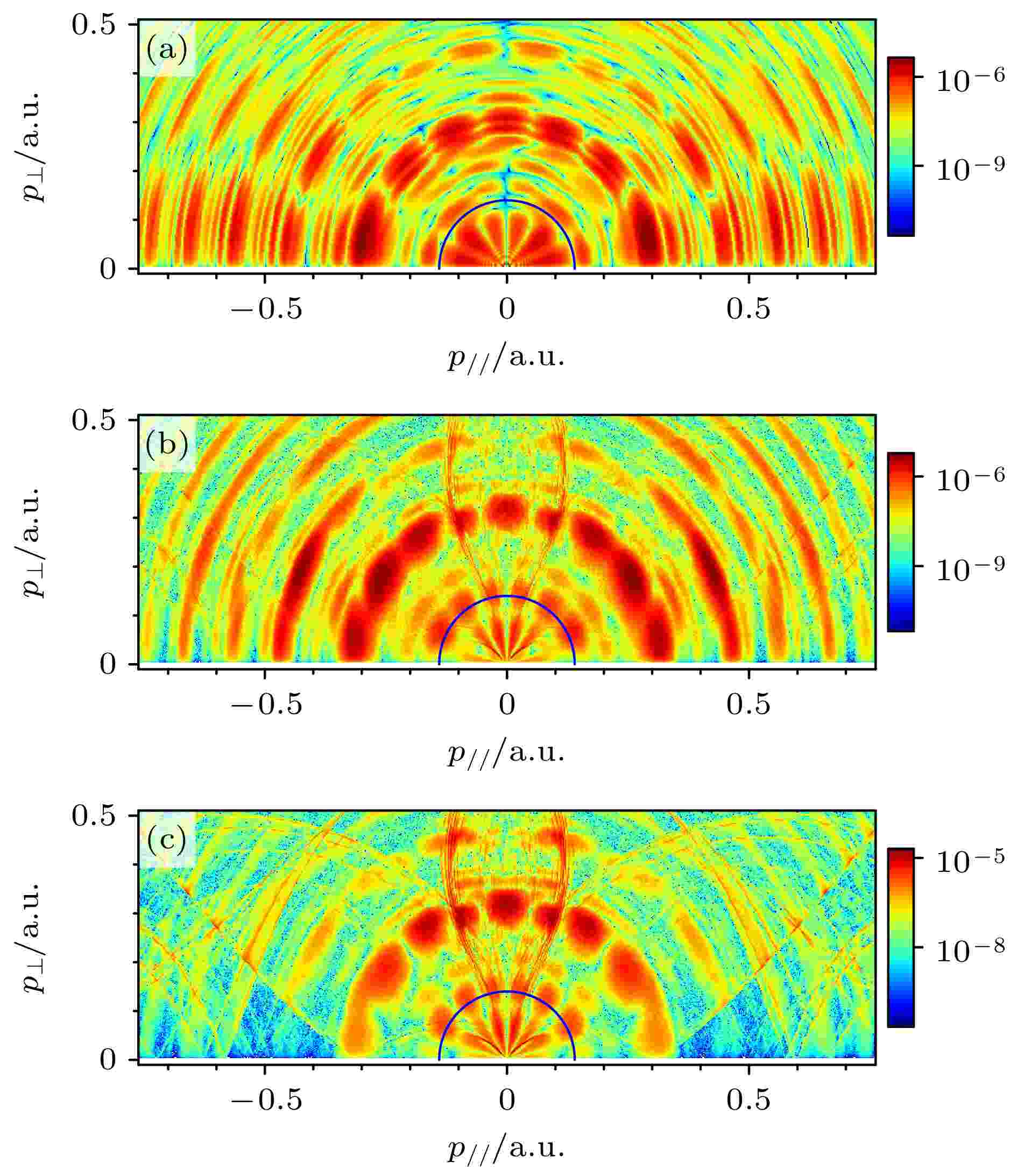 结合实验与理论研究, 探索了在多光子区域($ \gamma \gt 1 $)短脉冲激光作用下氩原子的光电离过程. 通过建立包含隧穿出口处电子初始纵向动量的半经典模型, 模拟了光电子动量分布. 该方法基于费曼路径积分理论框架, 为每条电子轨迹赋予动力学相位, 从而实现了对量子干涉效应的研究. 模拟结果与含时薛定谔方程(TDSE)数值解高度符合, 同时发现, 初始纵向动量的引入对于精确重现电离阈值附近观测到的光电子谱干涉结构至关重要, 并揭示出离子实极化对低能谱影响甚微. 本文的研究结果强调了超短脉冲光电离中非绝热势垒下动力学的重要性, 并提供了基于量子轨道的清晰物理图像.