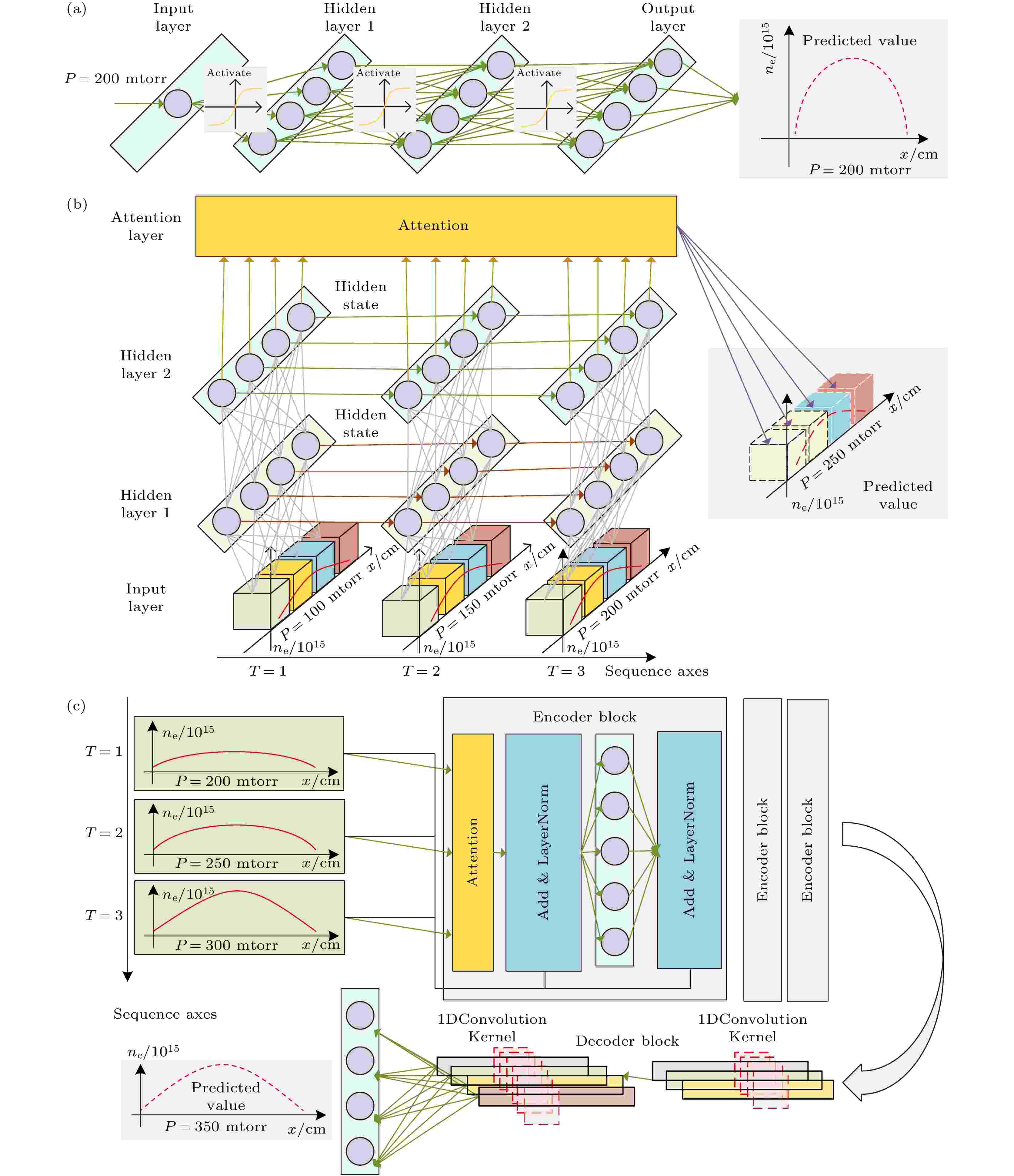 容性耦合等离子体(CCP)的流体模拟对于理解放电物理机制非常重要, 但其高昂的计算成本制约了大范围参数化探索. 为突破该限制, 本文开发了一种深度学习代理模型, 旨在以近瞬时推理速度复现一维CCP流体模型的输出结果. 该模型精确预测了容性耦合氩等离子体流体模拟中关键等离子体参数的空间分布, 包括电子密度、电子温度及电场分布, 并将所需计算时间从数小时压缩至毫秒量级. 除加速优势外, 代理模型学习过程还揭示了根植于等离子体物理的非对称推理能力. 代理模型可从复杂的低压物理域外推至更简单的高压物理域, 反之则不可行, 表明低压状态具有更完整的物理信息. 进一步, 本文建立了一个模型推理的置信边界, 确保预测结果的物理可靠性. 本文的研究为创建高保真、超快速的流体模拟等离子体替代提供了方案.