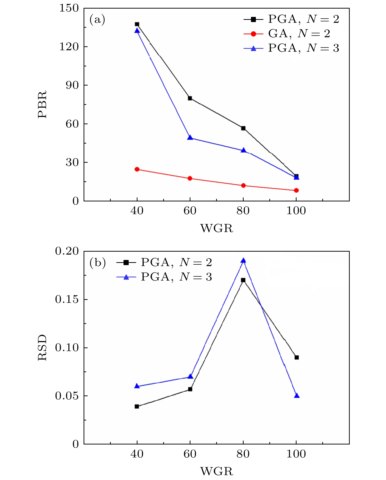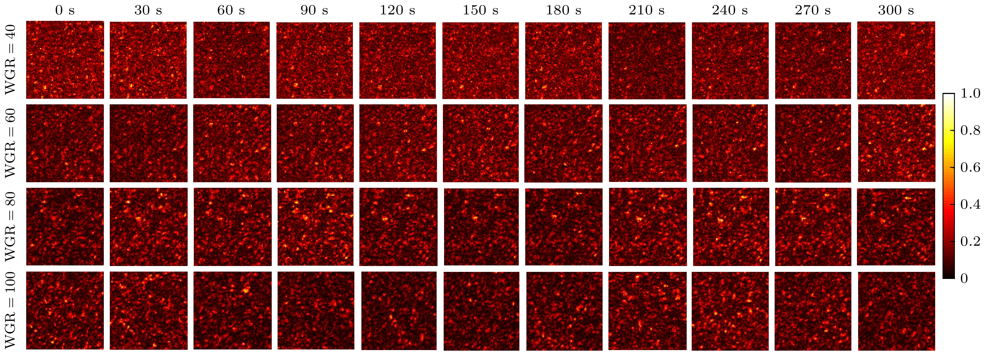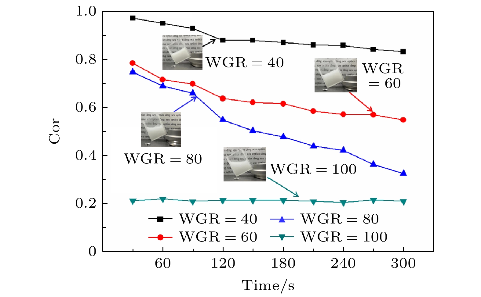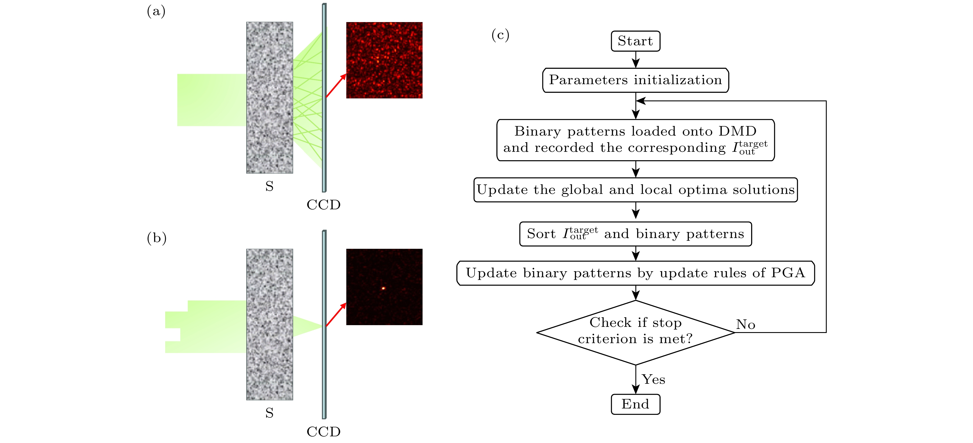 Transmitting optical information through scattering medium has broad application prospects in biomedical, aerospace and other fields. However, the light passing through the scattering medium will cause wavefront distortion and optical information blurring. Wavefront shaping technology uses a mathematical matrix to characterize the characteristics of scattering medium, which can achieve refocusing and imaging after light propagation through the scattering medium. It mainly includes optical phase conjugation, optical transmission matrix and wavefront shaping based on iterative optimization. However, the iterative wavefront shaping is considered to be a cost-effective method. Based on the wavefront amplitude modulation technology, the wavefront amplitude of the incident light is continuously adjusted by using the optimization algorithm to find the corresponding wavefront amplitude distribution that can maximize the light intensity in the target area. The system generates binary patterns implemented with digital-micromirror device (DMD) based on on-off state of micromirror, where “on” represents 1 and “off” refers to 0. The DMD has a high refresh rate and can achieve high speed wavefront amplitude modulation by using the iteration algorithm. In the experiment, the scattering medium is prepared with TiO2, water and gelatin, whose persistence times are controlled with the water-gelatin ratio (WGR). In addition, the Pearson correlation coefficient (Cor) curve obtained through 300-s-measurement under different WGR conditions, which shows that the greater WGR, the shorter the persistence time is. The experiment mainly studies the focusing of the spatial light through scattering media by wavefront amplitude modulation, and discusses the ability of point guard algorithm (PGA) and genetic algorithm (GA) to control the scattered light field with different persistence times in 64 × 64 segments. The experimental results show that the PGA can achieve higher enhancement factor and more uniform multi-point focusing than the GA after 1000 iterations in the scattering medium with the same persistence time. The relative standard deviation value is inversely proportional to the WGR value when multi-point focusing can be completed. We also demonstrate that GA can only achieve single-point focusing when WGR = 40, and it cannot accomplish multi-point focusing in self-made scattering medium. This study not only verifies a method to achieve focusing scattering light field, but also provides a new scheme for testing the performance of the iterative wavefront shaping.