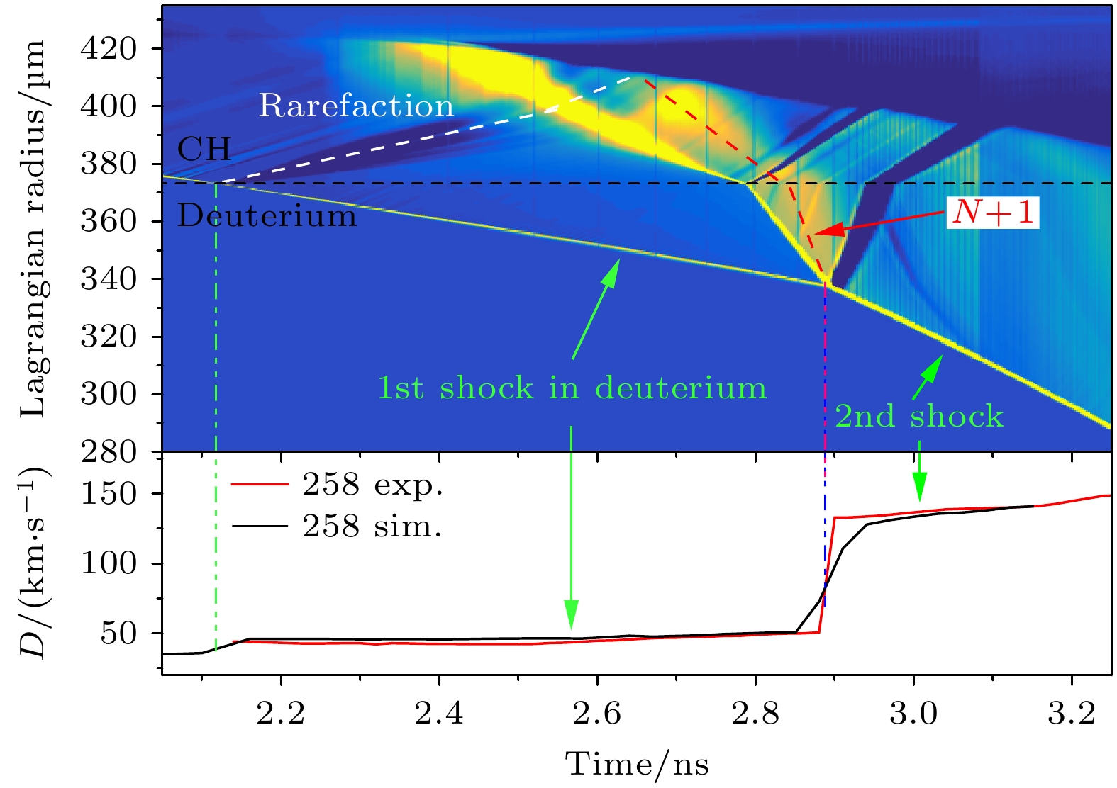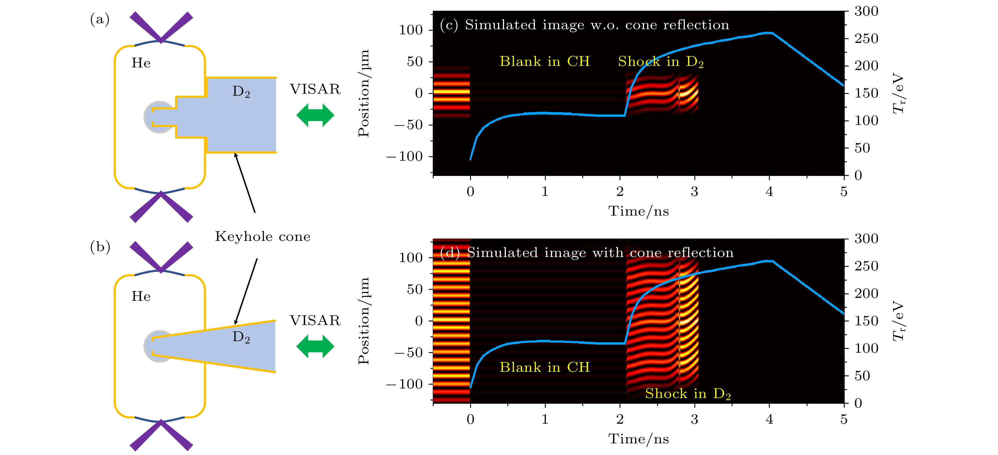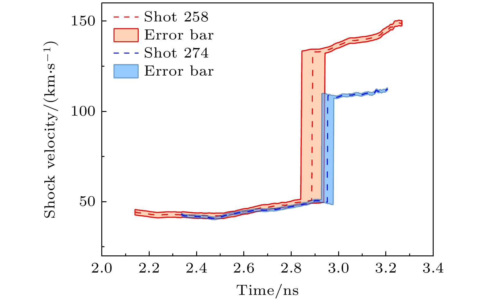 In laser fusion research, the precision of shock-timing technology is pivotal for attaining optimal adiabatic tuning during the compression phase of fusion capsules, which is crucial for ensuring the high-performance implosion. The current main technological approach for shock-timing experiments is to use keyhole targets and VISAR (velocity interferometer system for any reflector) diagnostics to measure the shock velocity history. Nonetheless, this approach encounters limitations when scaling down to smaller capsules, primarily due to the reduced effective reflection area available for VISAR diagnostics. In this work, a novel high-precision shock-timing experimental methodology is used to realize a double-step radiation-driven implosion of a 0.375 mm radius capsule on a 100 kJ laser facility. By calculating the intensity of VISAR images with spherical reflective surfaces, a new experimental technical route is proposed, i.e. using the keyhole cone reflection effect to enhance the VISAR diagnostic spatial area, which can effectively increase the effective data collection region by nearly threefold for small-scale capsules. The technique has been adeptly used to measure shock waves in cryogenic liquid-deuterium-filled capsules under shaped implosion experimental conditions, thus obtaining high-precision shock-timing experimental data. The experimental data reveal that the application of this technology can markedly enhance both the image quality and the precision of data analysis for shock wave velocity measurements in small-scale capsules. Furthermore, it is discovered that under similar laser conditions, there exist considerable variations in the shock velocity profiles. Simulation analysis shows that the difference in chasing behavior of the “N+1” reflected shock wave caused by small changes in laser intensity is the main reason for the significant difference in merging speed. It is demonstrated that small changes in laser parameters can significantly affect the transmission behavior of the shock wave. This experiment highlights the complex sensitivity of shock wave transmission in high-performance forming implosion physics process on a current small capsule scale, making it essential to conduct shock-timing experiments to accurately adjust actual shock wave behavior. This research not only lays a robust technical foundation for promoting adiabatic tuning experiments ofour 100 kJ laser facility but also has profound significance for the ultra-high pressure physics research based on the spherical convergence effect.
