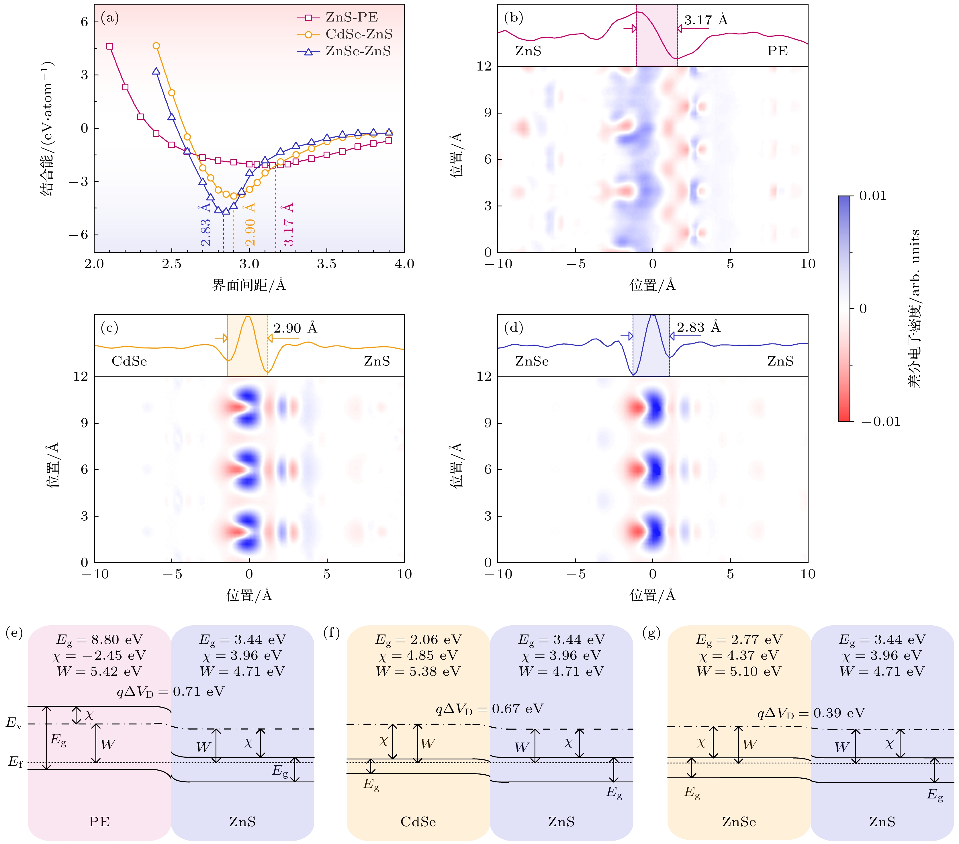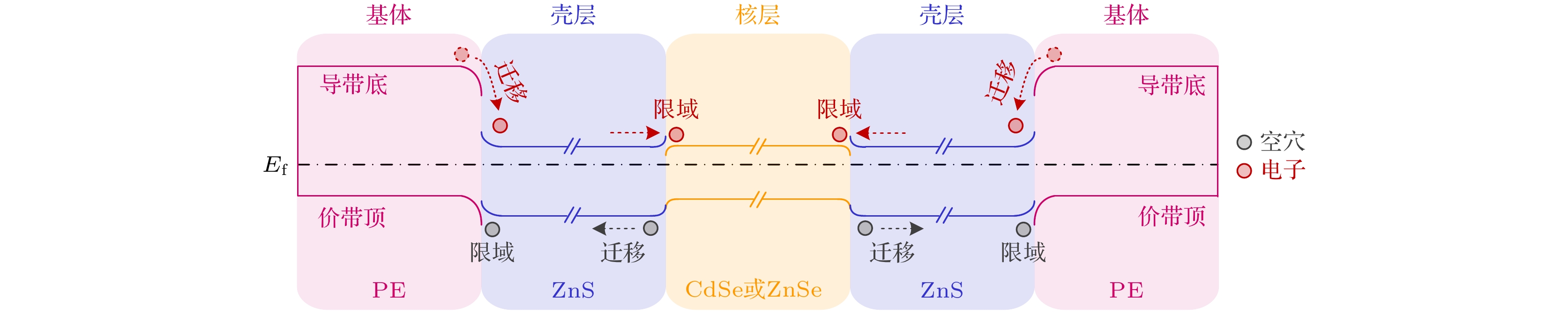 To investigate the effect of the interface electronic structure of core-shell quantum dots on the conductivity and space charge characteristics of polyethylene insulation, nanocomposite insulations, namely CdSe@ZnS/LDPE and ZnSe@ZnS/LDPE, are synthesized. The study focuses on elucidating the evolution patterns of DC conductivity and space charge in the nanocomposite insulation, and analyzing the effect of the interfacial electronic structure of core-shell quantum dots on the distribution of charge traps. Comparative analysis reveals that in contrast to LDPE insulation, ZnSe@ZnS/LDPE nanocomposite insulation demonstrates a substantial reduction in DC conductivity by 47.2% and a decrease in space charge accumulation by 40.3% under the conditions of elevated temperature and strong electric field. The increase of trap energy level means an enhanced trap effect on charger carriers. According to density functional theory, the band structure characteristics of core-shell quantum dots integrated with polyethylene are computationally assessed. The findings underscore that the band misalignment at the core-shell interface and the shell-insulation interface induces shifts in the conduction band bottom and at the valence band top, respectively. These shifts impose a confinement effect on electrons and holes, with the extent of this effect escalating with the augment of the difference in band gap between the core layer and the shell layer. Consequently, this phenomenon curtails carrier migration, thereby inhibiting space charge accumulation under the conditions of elevated temperature and strong electric fields.