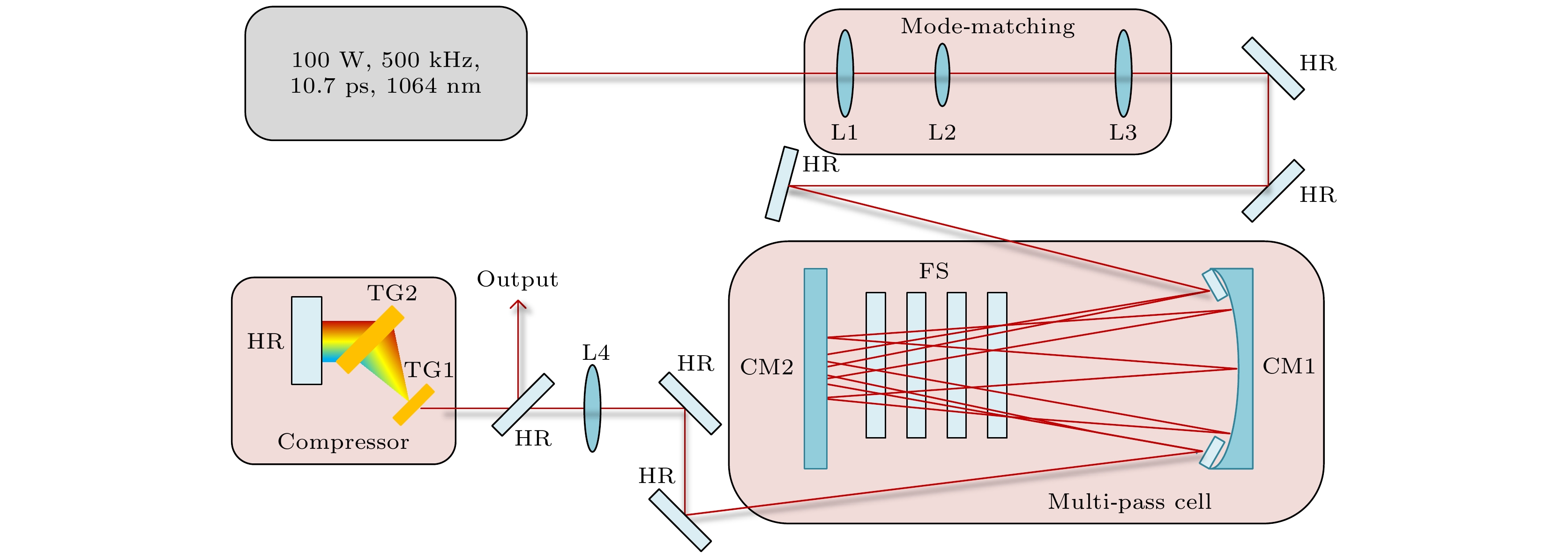 Ultrafast femtosecond laser system with hundreds of microjoules of energy, operating at a repetition frequency of several kilohertz, has very important applications in many fields such as medicine, mid-infrared laser generation, industrial processing, and vibrational spectroscopy. The chirped pulse amplification technique provides a feasible path to obtain light sources with those parameters. However, the use of chirped pulse amplification increases the technical complexity and cost of the laser system. Recently, the proposal of a multi-pass cell (MPC) nonlinear pulse compression technique has enabled us to obtain high power ultrafast femtosecond pulses with reduced technical complexity and cost. The device requires only two concave mirrors and a nonlinear medium in between. In the past seven years, the multi-pass cell nonlinear pulse compression technique has made great progress, making it possible to obtain ultrashort pulses with average power of more than a few kW and peak power of tens to hundreds of TW.