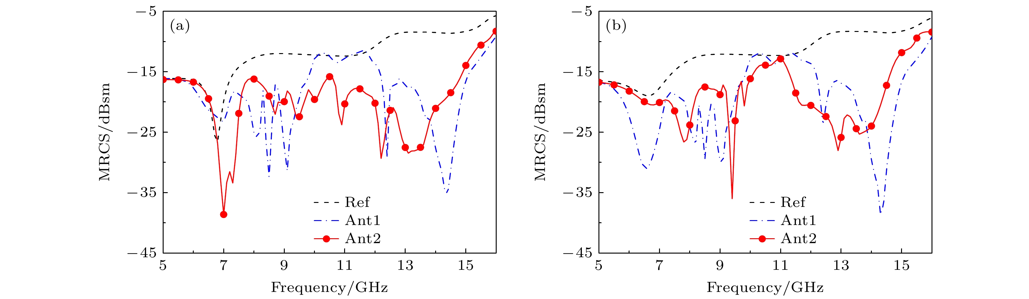In this paper, a novel shared-aperture method of electromagnetic metasurface and antenna is proposed to obtain low radar-cross-section (RCS) performance. In this method, the low-RCS metasurface is first designed, then this metasurface is combined with traditional antenna to obtain novel low-RCS antenna based on shared-aperture technique. Besides, the analysis and corresponding local structure modification are also conducted to ensure that the antenna has good radiation performance while reducing broadband RCS. Using this method, a dual-layer polarization rotation unit cell is first proposed and its broadband working principle is investigated by both theoretical analysis and numerical comparison. Based on this unit cell, a broadband low-RCS metasurface is constructed. Then an initial shared-aperture metasurface antenna is obtained by substituting the middle cells in the metasurface with traditional patch antenna directly. Through careful analysis of surface current in radiation mode, the gain decrease of this metasurface antenna is revealed. On this basis, a finite removal strategy is put forward and some metasurface cells in the antenna are removed by using the electric current analysis. Consequently, an improved shared-aperture metasurface antenna is proposed. This improved antenna works in a frequency range from 6.3 to 7.48 GHz, which is slightly wider than the traditional patch antenna. Its gain is also higher than that of traditional antenna, with a maximum improvement of 1 dB. Meanwhile, the apparent RCS decreases from 6 to 16 GHz for any polarized incident wave, and the reduction peak is larger than 20 dB. Finally, fabrications and measurements are conducted. The measurement results and numerical calculations are in good agreement. The well-behaved radiation performance and broadband low-RCS property of this metasurface antenna verify the effectiveness of the proposed method. Unlike most of reported design methods of low-RCS antennas directly from traditional antennas, the proposed method adopts reverse thinking to transform scattering optimization into radiation optimization, realizing the integration between metasurface and antenna, thus making low-RCS antenna design easier and faster.