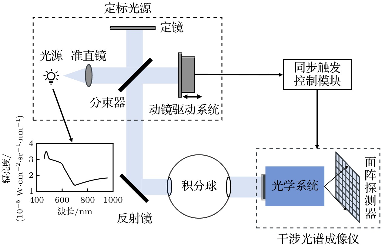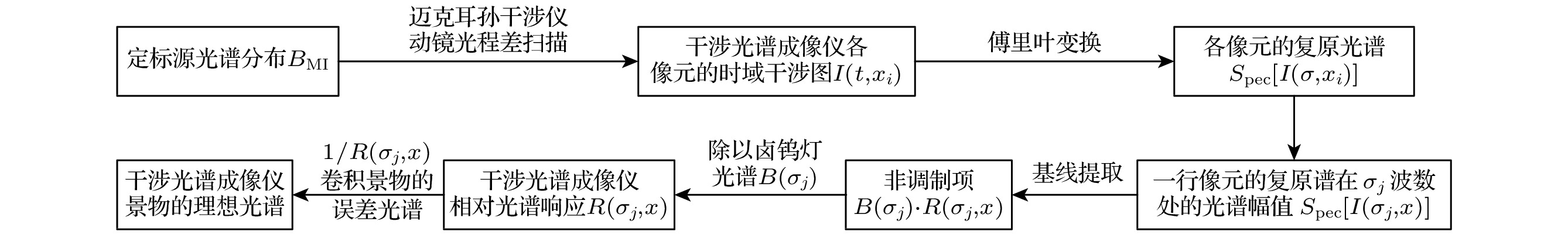 In imaging spectrometers, area array detectors are usually used as photoelectric conversion devices, but the inconsistency of the spectral response among pixels can distort the collected target spectra. To improve the spectral radiometric accuracy of imaging spectrometers, calibrating and correcting the inconsistency of the spectral response among pixels is essential. The signal received by each pixel of area array detector of the indirect imaging spectrometer is usually the superposition of the target multi-spectral radiation signals or full-spectral radiation signals. Therefore, its relative spectral radiometric calibration requires measuring the spectral response of each pixel at different wavelengths on the array detector. Under the ideal conditions, the response values of each pixel in the area array detector are different, so the indirect imaging spectrometer cannot simply calibrate the relative spectral response (RSR) function between pixels by using the method of “monochromator + integrating sphere”. In this work, taking the interferometric imaging spectrometer for example, we analyze the influence of the inconsistency of the RSR among pixels on the target spectral radiation measurement accuracy, and propose a system-level RSR function measurement method for the indirect imaging spectrometer based on the Fourier transform modulation calibration source. In addition, we establish a mathematical model for calibrating the RSR function,and provide guidelines for selecting calibration system parameters such as light source, spectral resolution, and OPD sampling interval. The simulation results show that under the ideal noise-free condition, the 1% spectral response inconsistency among pixels results in a relative error of 1.02% to the recovered spectra. After RSR correction, the relative error of the recovered spectra of different rows decreases to 0.08%. Furthermore, in this work we simulate and analyse the influence of spectral signal-to-noise ratio on the calibration accuracy of the RSR function, and point out that increasing the brightness of the calibration light source, extending exposure time, and combining multi-frame interferograms can enhance RSR function calibration accuracy in practical applications. The research result can provide a theoretical basis for realizing the relative spectral radiometric calibration of indirect imaging spectrometer, which is of great significance in promoting quantitative spectral remote sensing.