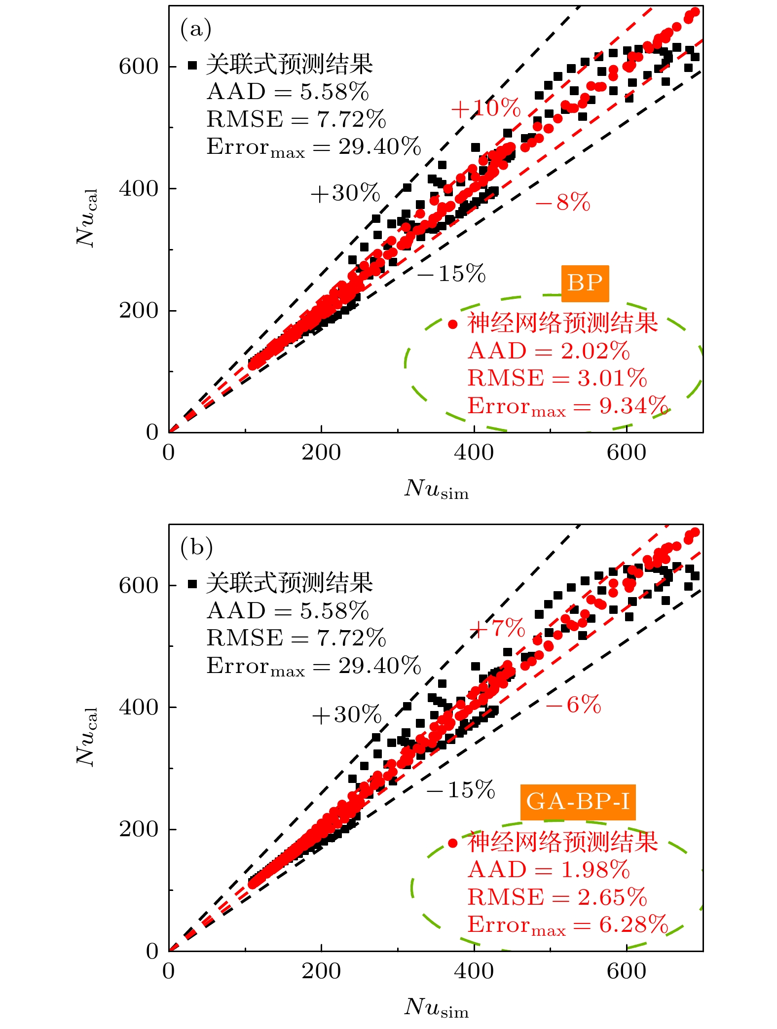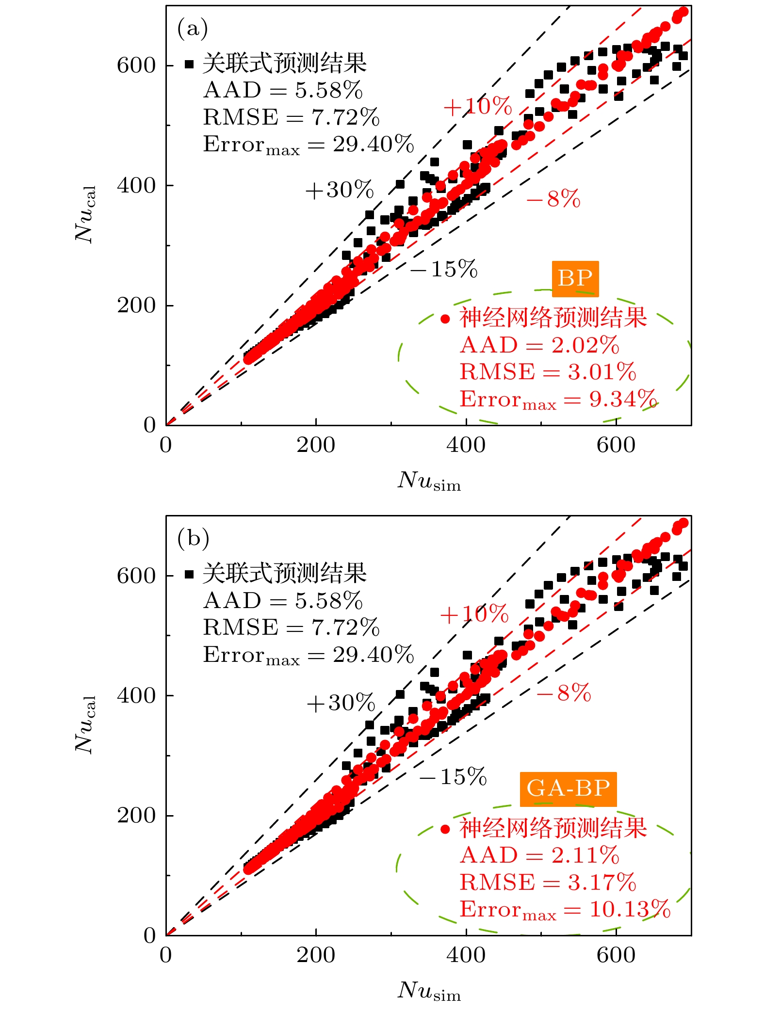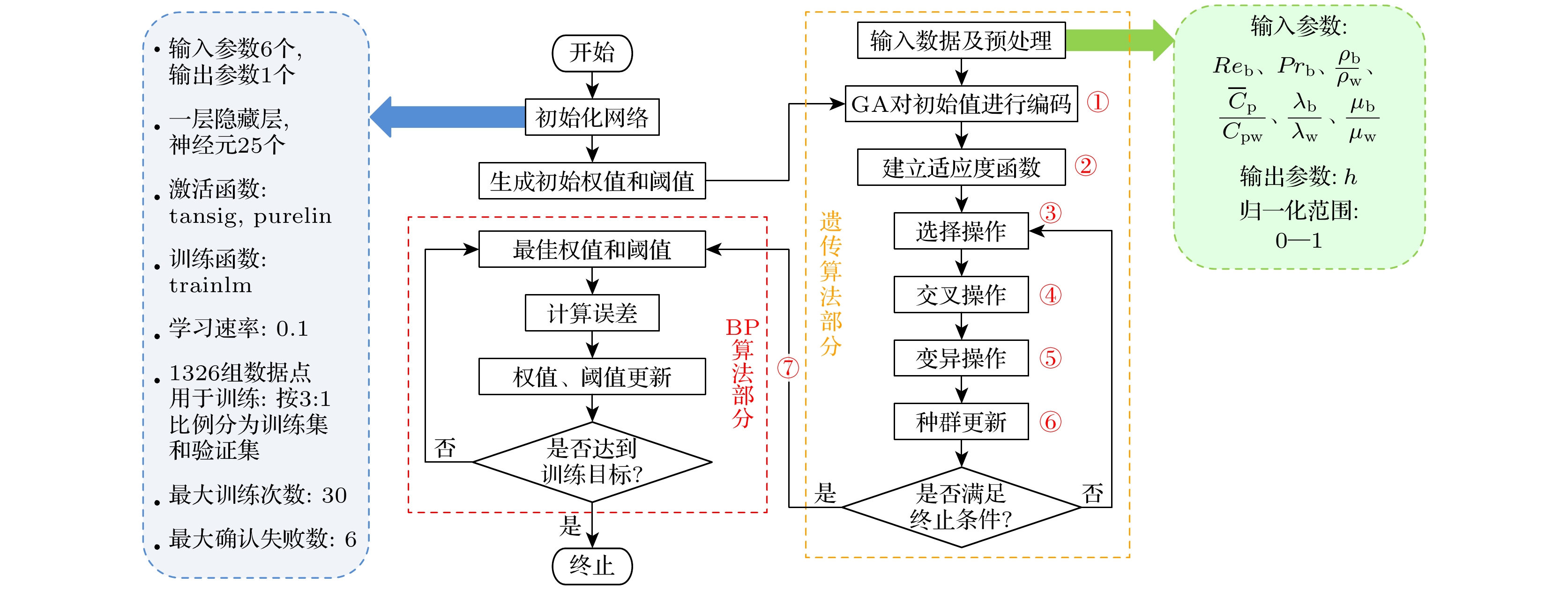 hare more precise than heat transfer correlation. Moreover, this research compares GA-BP model with BP model under two different fitness value calculation methods to reveal the effectiveness of GA-BP in enhancing the prediction accuracy of supercritical heat transfer, concluding that when the same dataset is adopted for network training and fitness value calculation, over-fitting will occur and the GA-BP cannot further improve the prediction accuracy; when different datasets are used to train the network and calculate the fitness value, the generalization ability of the network will be strengthened, and the root mean square deviation and the maximum deviation of the prediction result can be further reduced.