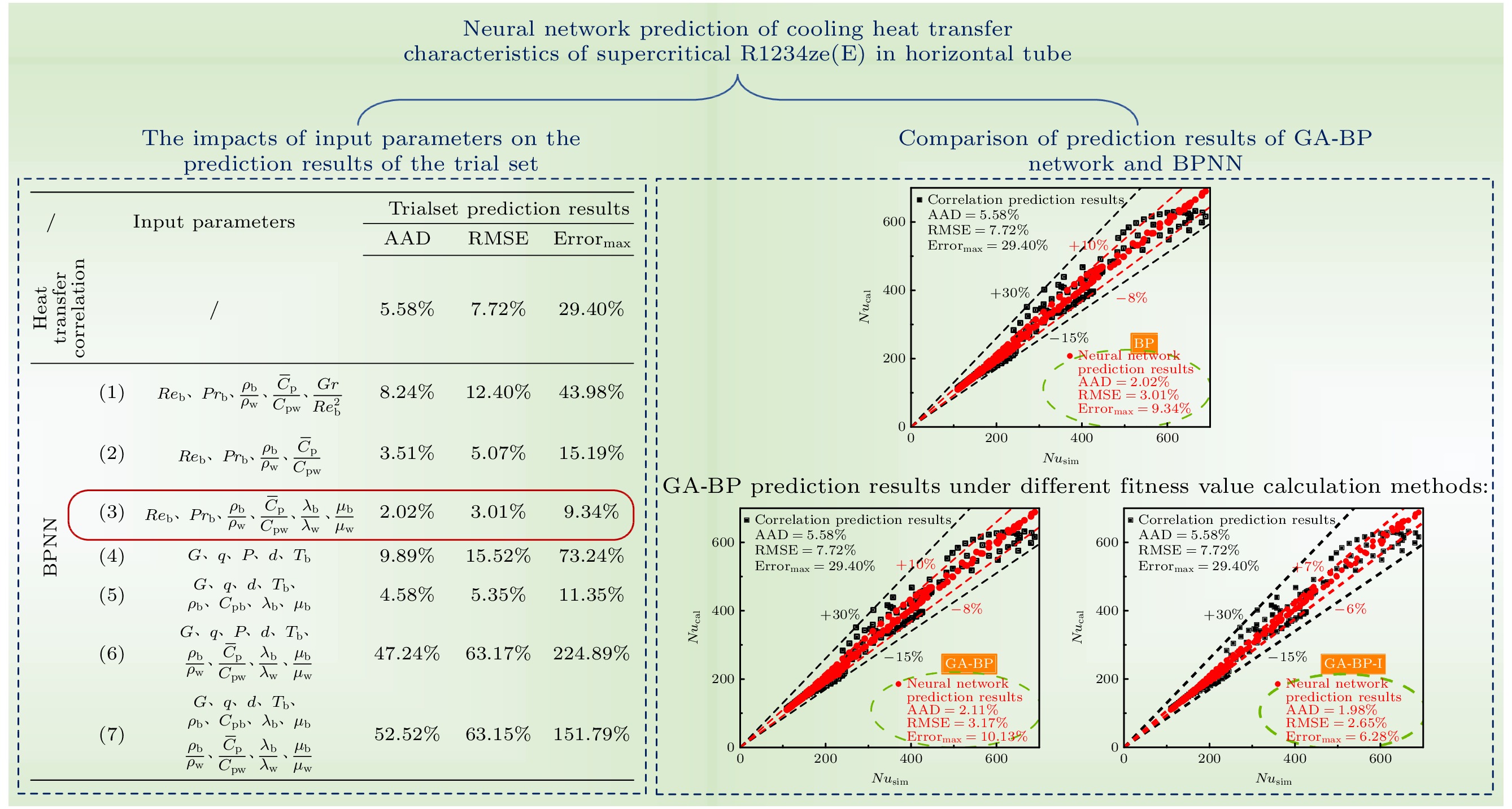 maxof the prediction result for the trial set are only 2.02% and 9.34%, which are far lower than the prediction deviation of the heat transfer correlation, and the predictions of the trend of