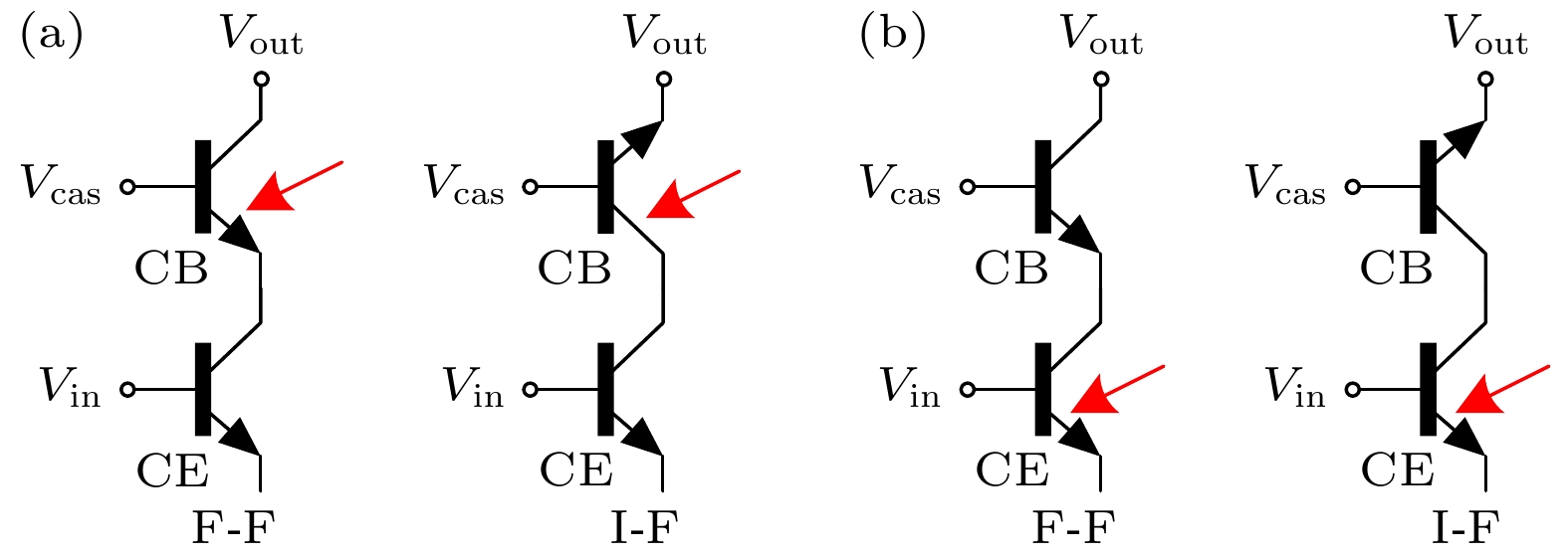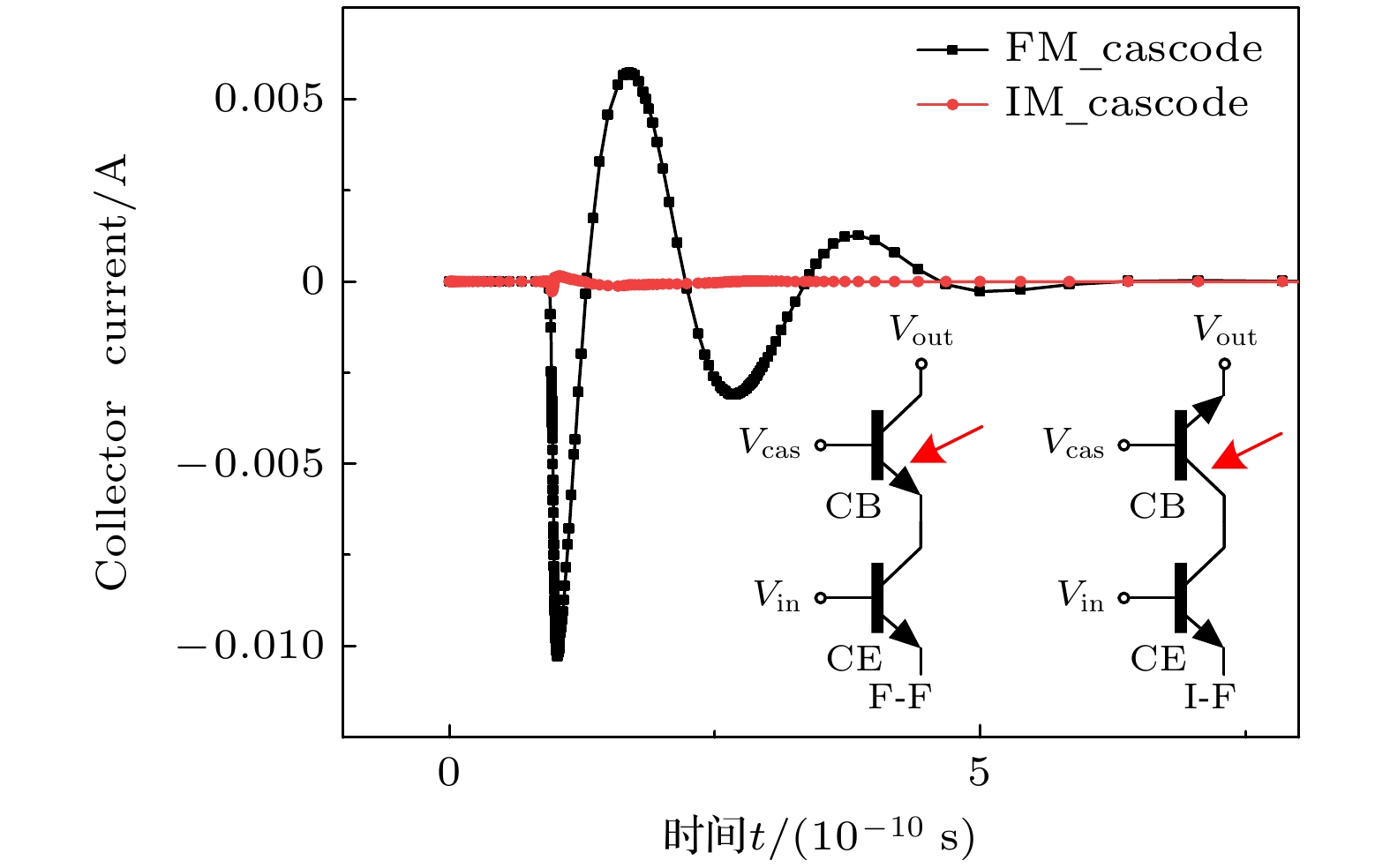 In this work, TCAD simulation modeling is carried out for silicon-germanium heterojunction bipolar transistor (SiGe HBT), and an X-band low noise amplifier (LNA) circuit is built based on the SiGe HBT device model to carry out the hybrid simulation of single-particle transient (SET). The rule of SET pulse varying with LET value and incident angle of ions is studied, and the results show that with the increase of incident LET value, the amplitude of SET pulse at the LNA port increases, and the oscillation time is prolonged; with the increase of incident angle of ions, the amplitude of SET pulse at the LNA port first increases and then decreases, and the oscillation time decreases. With the development of the characterization process, the cutoff frequency (fT) and the maximum oscillation frequency (fMAX) of SiGe HBT device with IM structure, are measured considering the use of inverse-mode (IM) common emitter and common-base structures (Cascode) to reduce the sensitivity of the LNAs to single-particle effects. This work calibrates the devices of the TCAD platform as well as the devices of the ADS platform, establishes F-F LNAs as well as I-F LNAs on the ADS, respectively, and verifies the relevant RF performances of the LNA circuits by using the IM-structured SiGe HBTs as the core devices. The SET experiments are performed on the Sentaurus TCAD platform for the F-F LNA circuit and I-F LNA circuit for ions incident on two positions: common base transistor and common emitter transistor, respectively. It is concluded that the LNA with IM structure still shows good RF performance compared with the standard LNA at 130 nm. The transient current duration of the LNA circuit with IM Cascode structure is significantly reduced, and the peak value is reduced by 66% or more, which significantly reduces the sensitivity of the SiGe LNA circuit to SET.