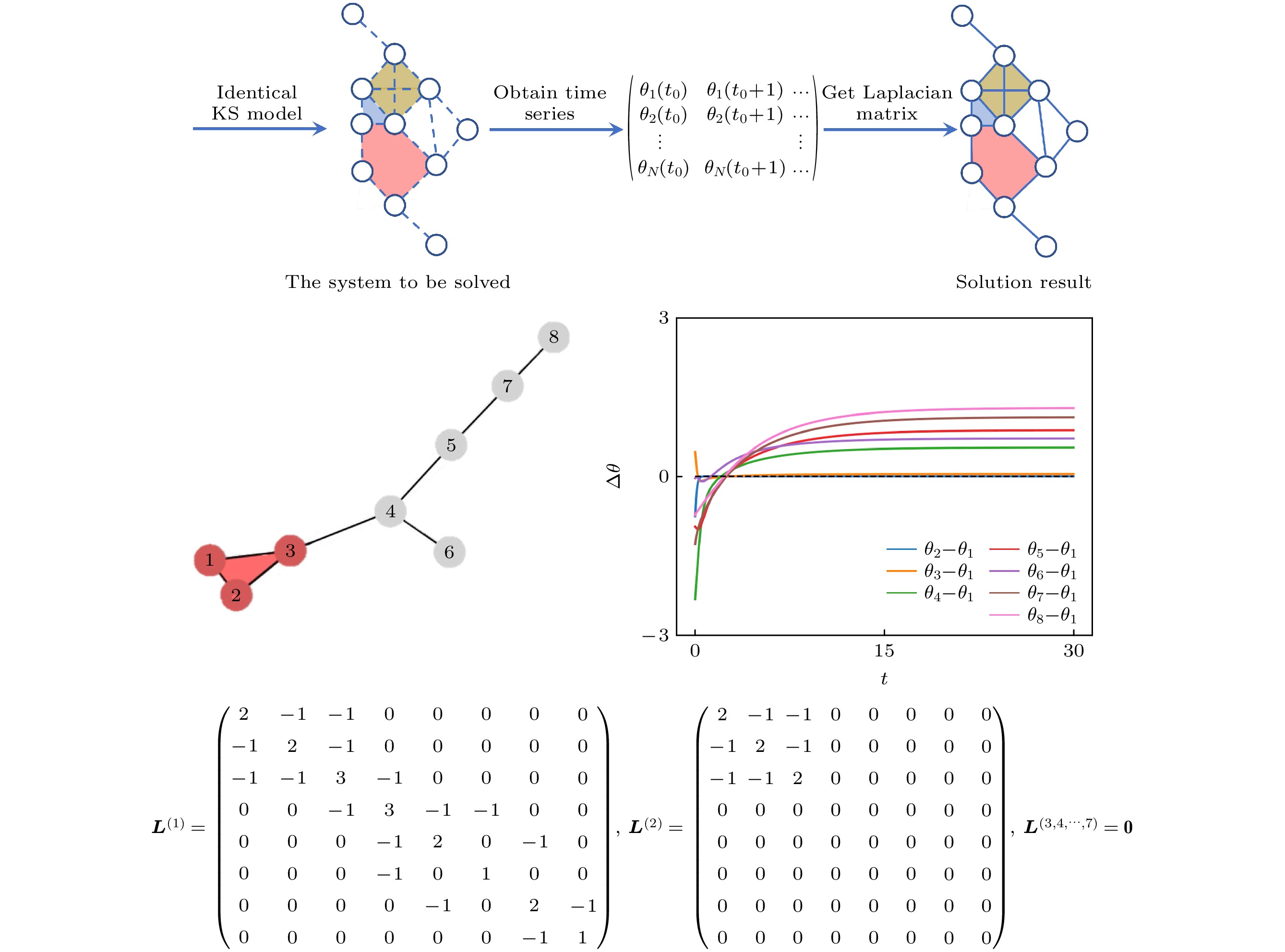 High-order interactions as exemplified by simplex and hyper-edge structures have emerged as a prominent area of interest in complex network research. These high-order interactions introduce much complexity into the interplay between nodes, which often require advanced analytical approaches to fully characterize the underlying network structures. For example, methods based on statistical dependencies have been proposed to identify high-order structures from multi-variate time series. In this work, we reconstruct the simplex structures of a network based on synchronization dynamics between network nodes. More specifically, we construct a topological structure of network by examining the temporal synchronization of phase time series data derived from the Kuramoto-Sakaguchi (KS) model. In addition, we show that there is an analytical relationship between the Laplacian matrix of the network and phase variables of the linearized KS model. Our method identifies structural symmetric nodes within a network, which therefore builds a correlation between node synchronization behavior and network’s symmetry. This representation allows for identifying high-order network structure, showing its advantages over statistical methods. In addition, remote synchronization is a complex dynamical process, where spatially separated nodes within a network can synchronize their states despite the lack of direct interaction. Furthermore, through numerical simulations, we observe the strong correlation between remote synchronization among indirectly interacting nodes and the network’s underlying symmetry. This finding reveals the intricate relationship between network structure and the dynamical process. In summary, we propose a powerful tool for analyzing complex networks, in particular uncovering the interplay between network structure and dynamics. We provide novel insights for further exploring and understanding the high-order interactions and the underlying symmetry of complex networks.