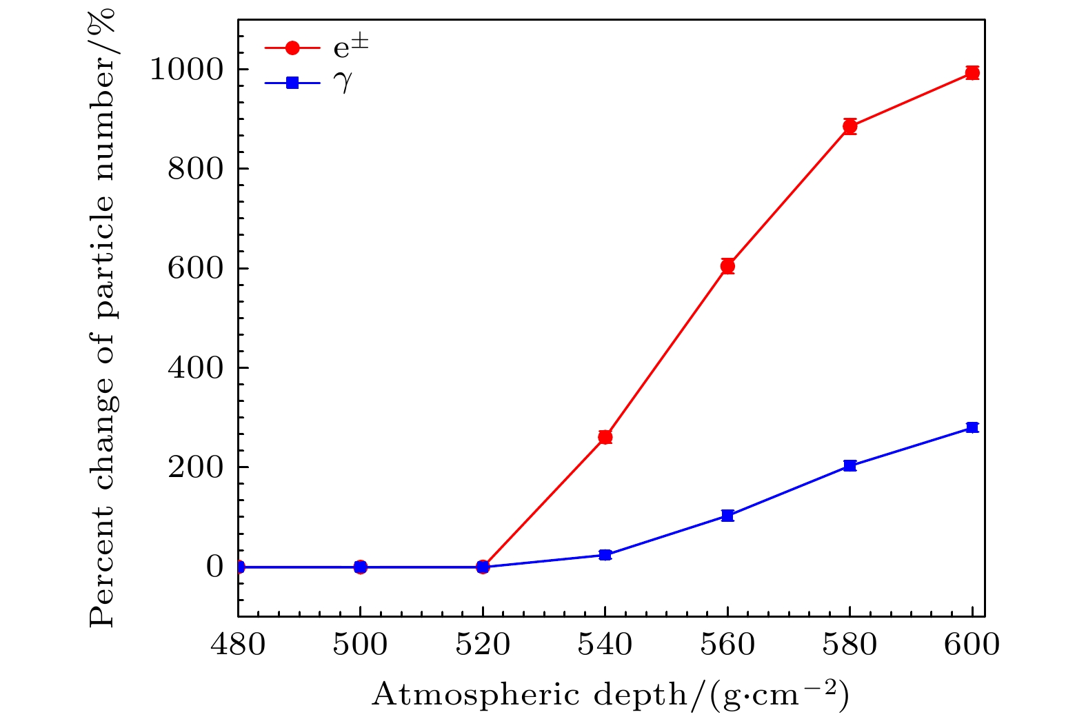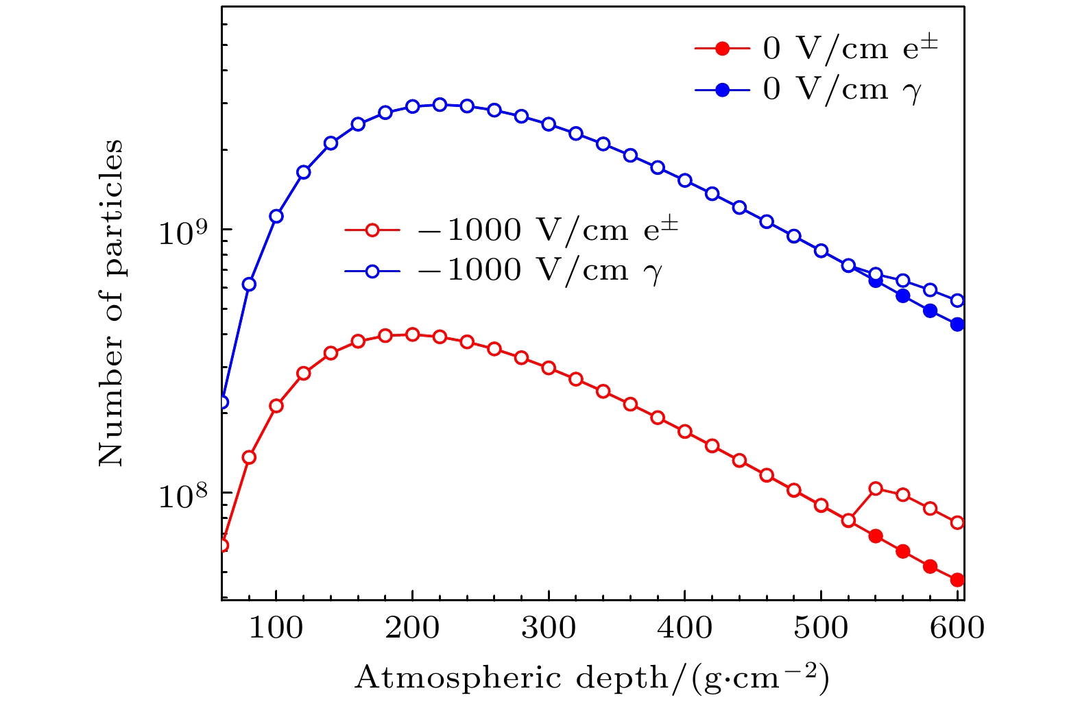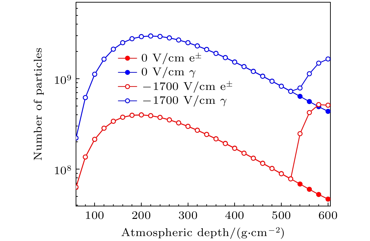 Large high altitude air shower observatory (LHAASO) is a complex of extensive air shower (EAS) detector arrays, located on the Mt. Haizi (29°21' N, 100°08' E) at an altitude of 4410 m a. s. l., Daocheng, Sichuan Province, China. The information about primary cosmic rays can be obtained by using data from secondary particles measured at LHAASO, with photons make up the majority among these secondary particles. During thunderstorms, the atmospheric electric field can affect secondary charged particles (mainly positrons and electrons), thus changing the information of photons on the ground. In this work, Monte Carlo simulations are performed to investigate the effects of near-ground thunderstorm electric fields on cosmic ray secondary photons at LHAASO. A simple model with a vertical and uniform atmospheric electric field in a layer of atmosphere is used in our simulations. During thunderstorms, the number and energy of photons are found to significantly change and strongly depend on the electric field strength. In a field of –1000 V/cm (below the threshold of the relativistic runaway electron avalanche (RREA) process), the number of photons is increased by 23%. Also, the spectrum of photons softens, and the increased number of photons with energy less than 2 MeV exceeds 29%. In an electric field of –1700 V/cm (above the threshold of the RREA process), the number of photons experiences exponential growth, with an increase of 279%. The spectrum of photons becomes softer than that at –1000 V/cm, and the increased number with energy less than 2 MeV is more than 361%. It is consistent with the theory of RREA. For these phenomena of photons at LHAASO, the main factor is that the number of positrons and electrons are increased due to the acceleration of negative electric field on electrons, with increase of 65% in –1000 V/cm and 992% in –1700 V/cm, and the spectrum of positrons and electrons soften. Newborn free positrons/electrons may undergo bremsstrahlung and deposit part of their energy into photons, causing the change of number and energy of photons to follow roughly the same pattern as positrons and electrons. The simulation results can provide the information for understanding the variations of the data detected by LHAASO during thunderstorms and the acceleration mechanisms of secondary charged particles caused by an atmospheric electric field.