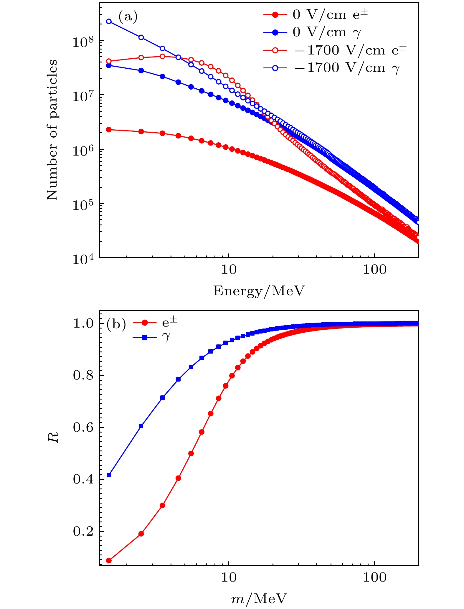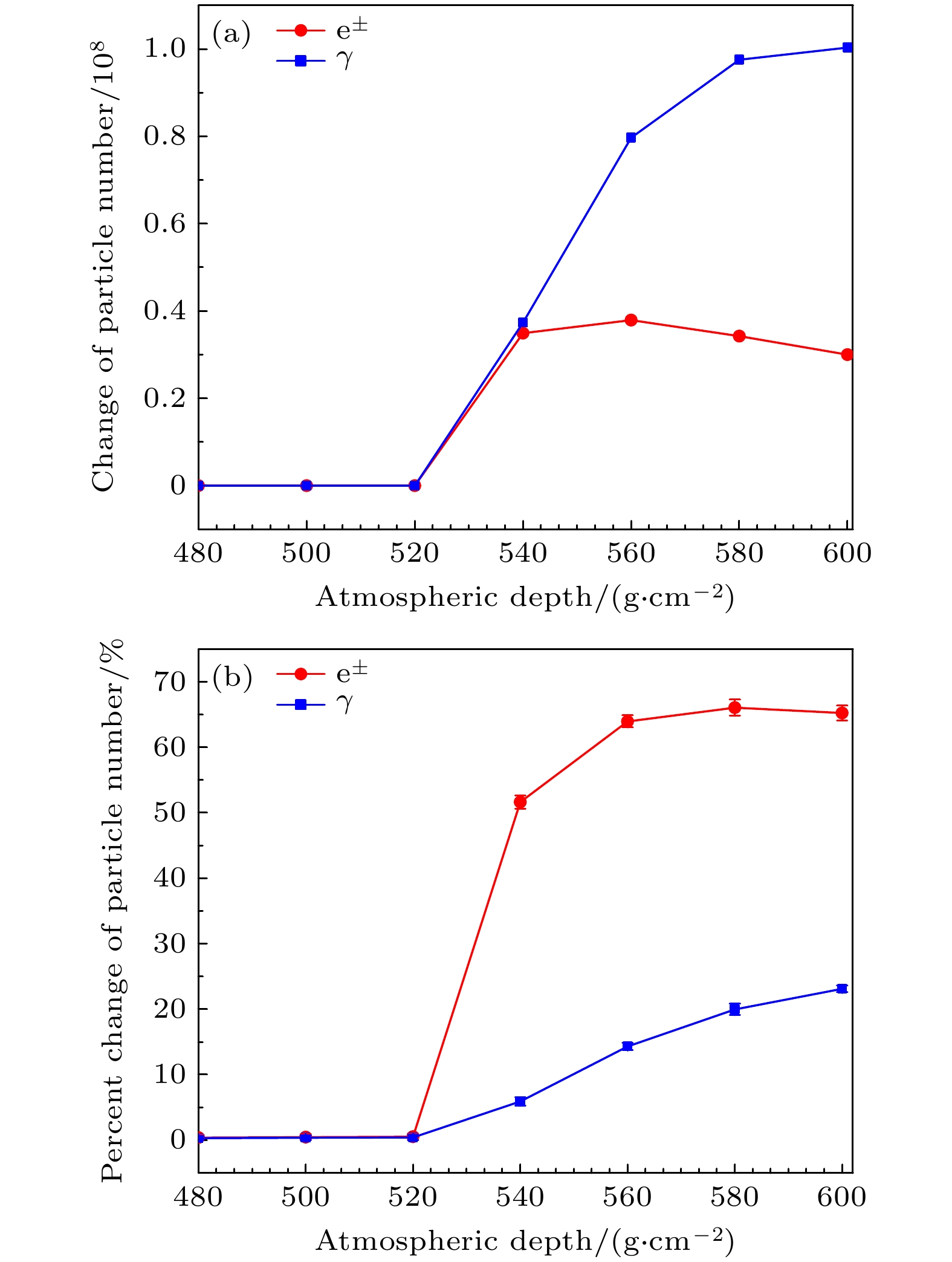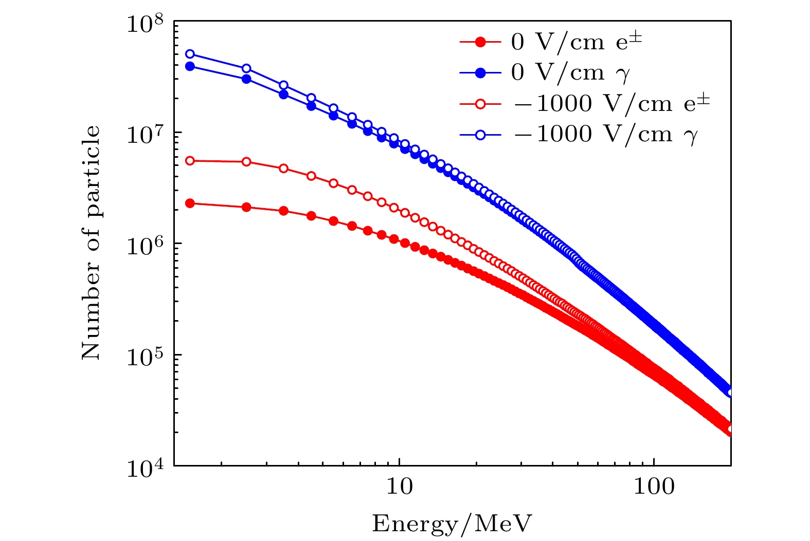 Large high altitude air shower observatory (LHAASO) is a complex of extensive air shower (EAS) detector arrays, located on the Mt. Haizi (29°21' N, 100°08' E) at an altitude of 4410 m a. s. l., Daocheng, Sichuan Province, China. The information about primary cosmic rays can be obtained by using data from secondary particles measured at LHAASO, with photons make up the majority among these secondary particles. During thunderstorms, the atmospheric electric field can affect secondary charged particles (mainly positrons and electrons), thus changing the information of photons on the ground. In this work, Monte Carlo simulations are performed to investigate the effects of near-ground thunderstorm electric fields on cosmic ray secondary photons at LHAASO. A simple model with a vertical and uniform atmospheric electric field in a layer of atmosphere is used in our simulations. During thunderstorms, the number and energy of photons are found to significantly change and strongly depend on the electric field strength. In a field of –1000 V/cm (below the threshold of the relativistic runaway electron avalanche (RREA) process), the number of photons is increased by 23%. Also, the spectrum of photons softens, and the increased number of photons with energy less than 2 MeV exceeds 29%. In an electric field of –1700 V/cm (above the threshold of the RREA process), the number of photons experiences exponential growth, with an increase of 279%. The spectrum of photons becomes softer than that at –1000 V/cm, and the increased number with energy less than 2 MeV is more than 361%. It is consistent with the theory of RREA. For these phenomena of photons at LHAASO, the main factor is that the number of positrons and electrons are increased due to the acceleration of negative electric field on electrons, with increase of 65% in –1000 V/cm and 992% in –1700 V/cm, and the spectrum of positrons and electrons soften. Newborn free positrons/electrons may undergo bremsstrahlung and deposit part of their energy into photons, causing the change of number and energy of photons to follow roughly the same pattern as positrons and electrons. The simulation results can provide the information for understanding the variations of the data detected by LHAASO during thunderstorms and the acceleration mechanisms of secondary charged particles caused by an atmospheric electric field.