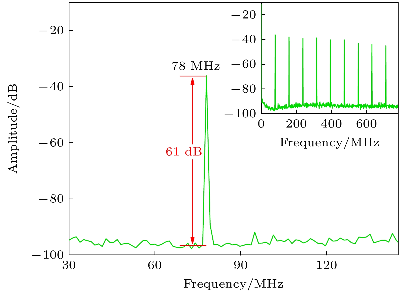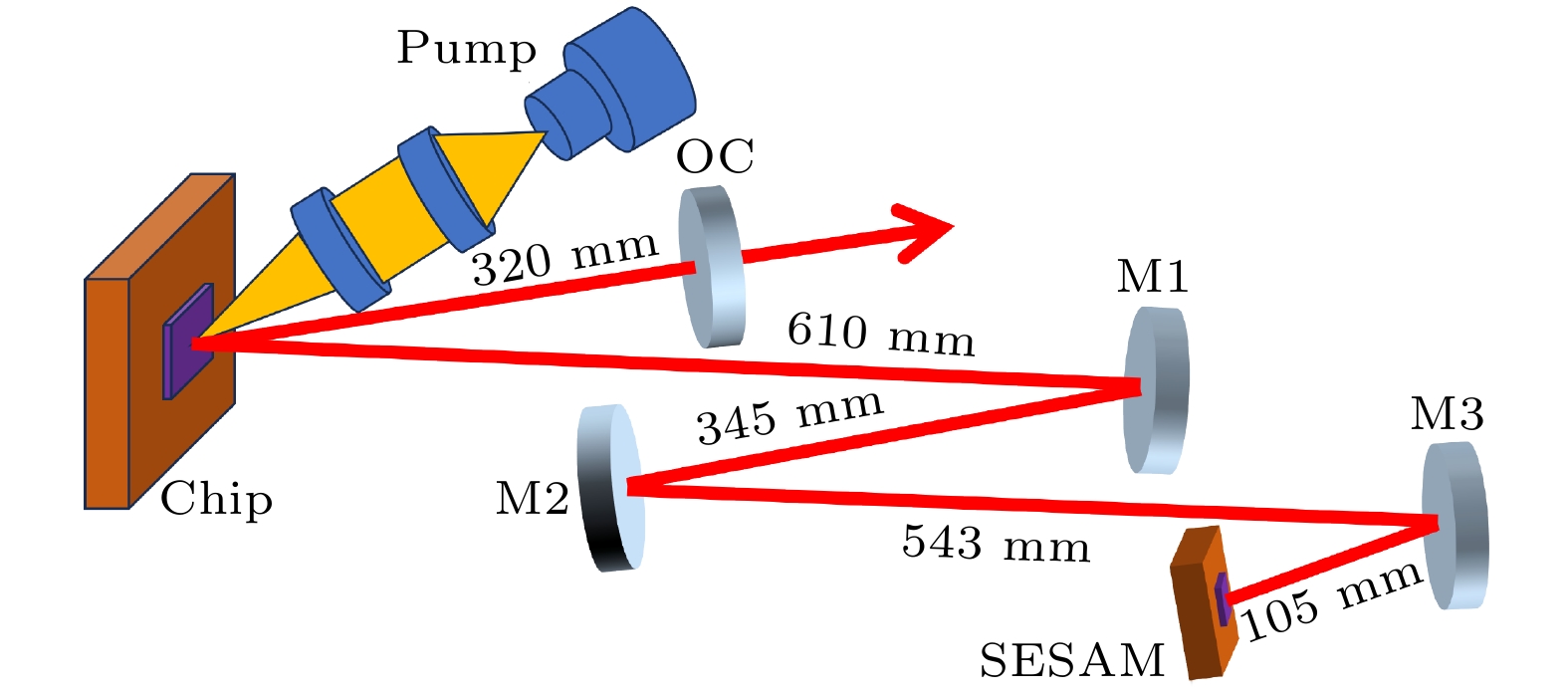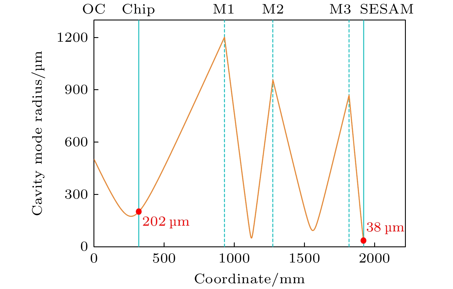 Semiconductor disk lasers (SDLs) have advantages of high output power and good beam quality. Their flexible external cavity provides convenience for inserting additional optical element to start mode locking and produce ultra-short pulse train with duration from picosecond to femtosecond. However, the very short lifetime in a range from about a few nanoseconds to tens of nanoseconds of the carrier in semiconductor gain medium limits the decrease of pulse repetition rate, thus restricting the increase of peak power of the mode-locked laser pulse to some extent. In this work, by using the relatively shallow In0.2GaAs quantum wells, which have a relatively long carrier lifetime in the active region of gain chip, as well as the particularly designed semiconductor saturable absorption mirror (SESAM) that has a relatively small saturation flux, a passively mode-locked SDL with low repetition rate and high peak power is demonstrated. The used six-mirror cavity has a spot radius of about 200 μm on the chip and a 40 μm spot on the SESAM, and the total cavity length is about 1.92 m. The SESAM passively mode-locked SDL produces a stable pulse train with a lowest repetition rate of 78 MHz. When the temperature is 12 ℃ and the transmittance of the output coupler isT= 3%, an average output power value of 2.1 W and a pulse duration of 2.08 ps are achieved. The corresponding pulse peak power reaches 12.8 kW, which is about twice the reported highest peak power in an SESAM mode-locked SDL. WhenT= 2% andT= 5%, the obtained average output power values are 1.34 W and 1.62 W respectively, and the corresponding pulse peak power values are 8.17 kW and 9.88 kW. Based on the values reported in the literature and the results of pulse repetition rate in our experiments, the estimated lifetime of the carriers of the In0.2GaAs quantum wells in the active region of the gain used chip is 16.4 ns. This high peak power mode-locked semiconductor disk laser has important potential applications in biomedical photonics, chemistry, and nonlinear microscopy.