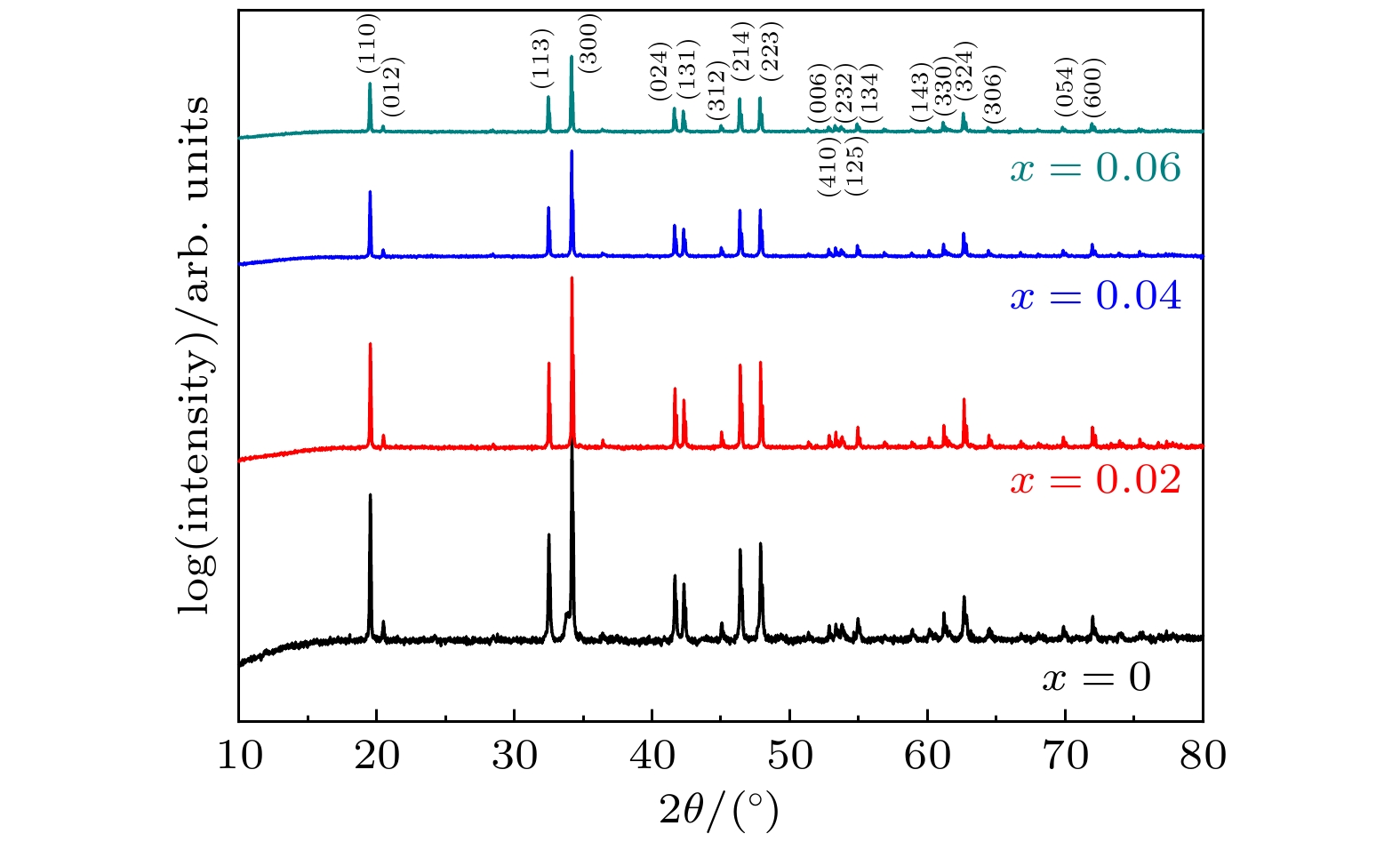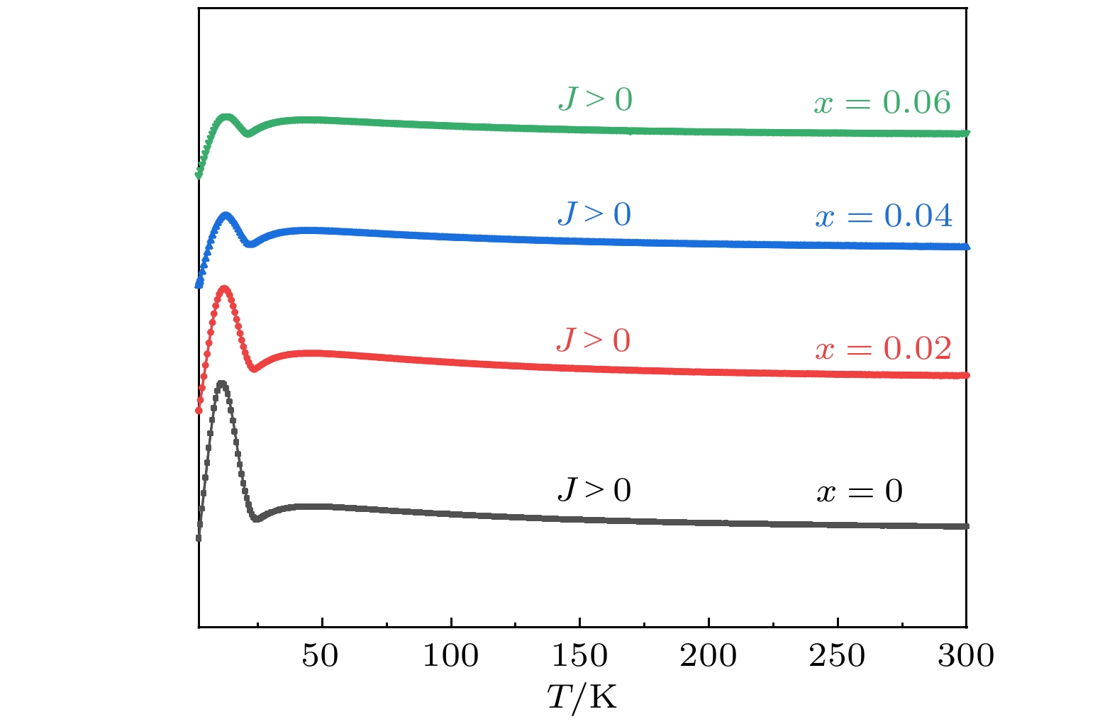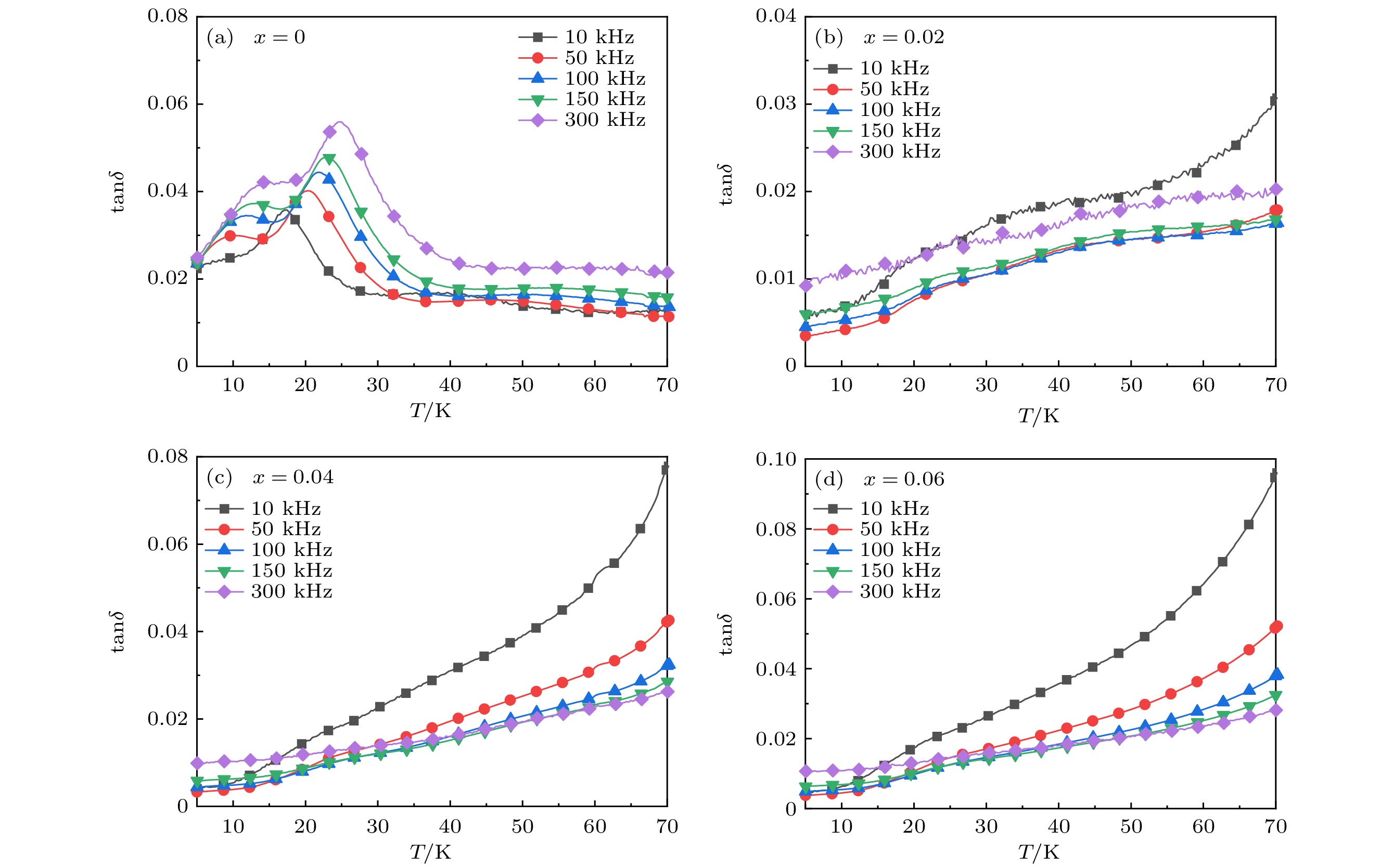 As a quasi-one-dimensional spin frustrated material, Ca3Co2O6has a series of interesting physical properties such as low-temperature spin freezing and multiple magnetized steps due to its unique structure. The magnetic properties of Ca3Co2O6mainly come from Co ions, and the doping of different elements at the Co site has a great effect on the magnetic structure of Ca3Co2O6. At present, the magnetic research of Ca3Co2O6and its related compounds mainly focuses on exploring the influence of other elements replacing Co sites. For example, non-magnetic Sc3+can dilute the intrachain ferromagnetic exchange, while the doping of magnetic ions Mn4+, Fe3+or Cr3+can inhibit the intrachain ferromagnetic interaction and enhance the antiferromagnetic interchain interaction. Doping Ti4+ions, which are high-valence non-magnetic ions, not only dilutes the magnetic interaction of Ca3Co2O6, but also changes the valence state of cobalt ions. i.e. it can convert part of Co3+ions into Co2+ions. Therefore, comparing with other doped ions, their introduction may have a more significant effect on the magnetoelectric properties of Ca3Co2O6. In this study, a series of Ca3Co2–xTixO6(x= 0, 0.02, 0.04, 0.06) polycrystalline samples is prepared by sol-gel method. Their magnetic, dielectric and magnetodielectric properties are measured. The XRD patterns show that a small number of Ti4+ions do not change the crystal structure of Ca3Co2O6. Due to the destruction of the long-range ferromagnetic correlation of Ca3Co2O6by non-magnetic Ti4+ions, the ferromagnetic interaction is inhibited to some extent. Because Ti4+ions are non-magnetic ions, they cannot form antiferromagnetic coupling with Co ions, resulting in the decrease of the Curie-Weiss temperature(θ). The positiveθvalue and exchange constant still indicate that the ferromagnetic interaction is dominant in Ti4+doped Ca3Co2–xTixO6(x= 0, 0.02, 0.04, 0.06) samples. The substitution of non-magnetic ions Ti4+for Co3+ions also makes the effective magnetic moment of Ca3Co2–xTixO6(x= 0, 0.02, 0.04, 0.06) monotonically decrease fromμeff= 5.42μBforx= 0 toμeff= 5.18μBforx= 0.06. Accompanying the introduction of Ti4+ions, the spin frustration of Ca3Co2O6is released partly, thus gradually fading the magnetization steps of Ca3Co2O6. As the Ca3Co2O6is a typical magnetodielectric material, the released spin frustration in Ti4+doped samples and the variation of the subtle magnetic structure exert a large influence on the magnetodielectric coupling effect of Ca3Co2–xTixO6(x= 0, 0.02, 0.04, 0.06) compounds.