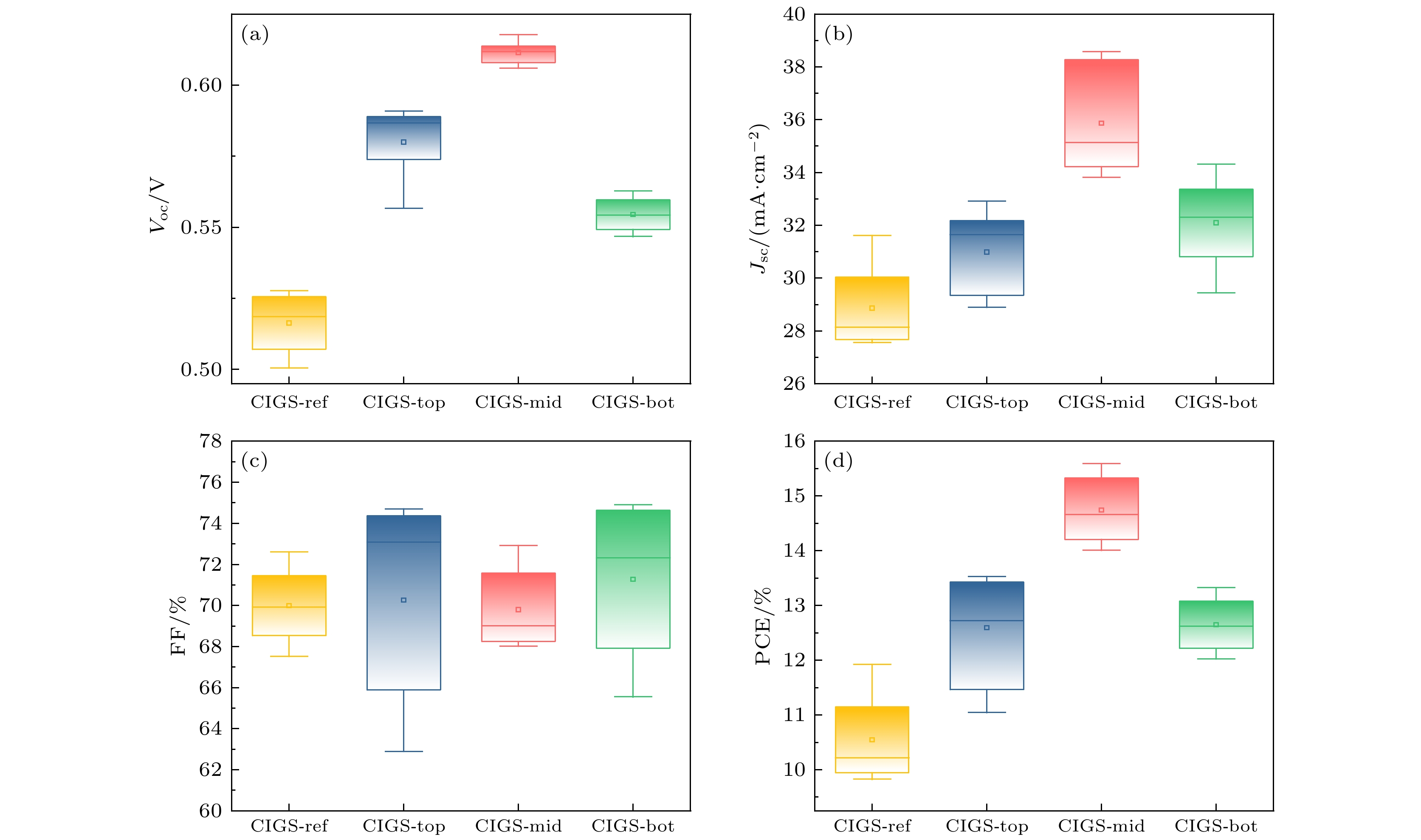2(CIGS) cells, mainly due to insufficient open-circuit voltage caused by a large number of disordered cations and defect clusters, resulting in non-radiative recombination and band-tail states.