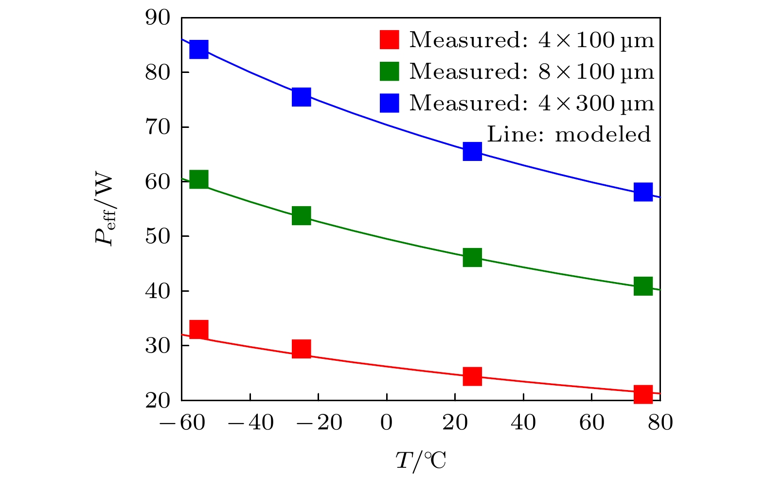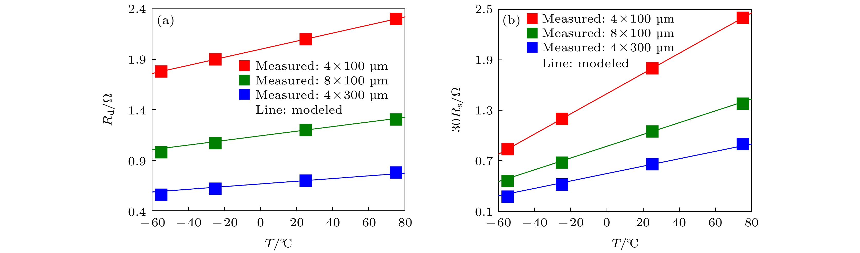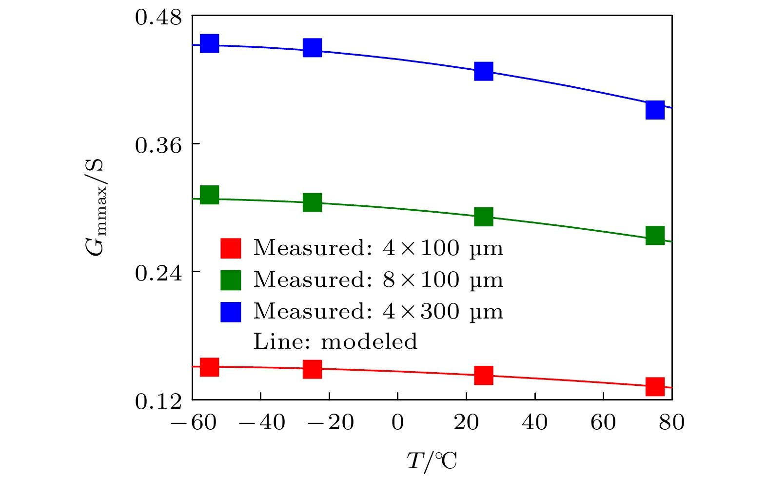 Due to the advantages of high power density, high efficiency, and great potential in extreme temperature environments, the GaN high electron mobility transistor (HEMT) device is widely used in circuit systems at high or low temperatures. However, its electrical performance is sensitive to the ambient temperature. Therefore, it is essential to build a model that can accurately characterize the electrical performance of GaN HEMTs at different ambient temperatures, which is also essential for precise circuit design. With the analysis of experiment and theory on the GaN HEMT at different ambient temperatures, an improved model for temperature effect on the DC characteristics of the GaN HEMT is proposed based on EEHEMT model. Considering the influence of the ambient temperature on electrical properties of the GaN HEMT, such as the threshold voltage, the knee voltage, and the saturated current, the model establishes a temperature-dependent function for key parameters in the formula of the drain-source current. Through Verilog-A implementation and simulation on the ICCAP software, the improved model accurately reflects the trend of the electrical performance changes of the GaN HEMT at different ambient temperatures. To further verify the model in this work, the on-wafer measurements at different temperatures including –55, –25, 25 and 75 ℃ are carried out for GaN HEMTs with different sizes, which are developed by Nanjing Electronic Devices Institute. Compared with the measured data, the output characteristics and the transfer characteristics simulated by the proposed model are accurate in an ambient temperature range of –55–75 ℃, with a relative fitting error less than 5%. The result shows that the improved model is of guiding significance in analyzing the direct current performance and high reliability design of circuits at different temperatures.