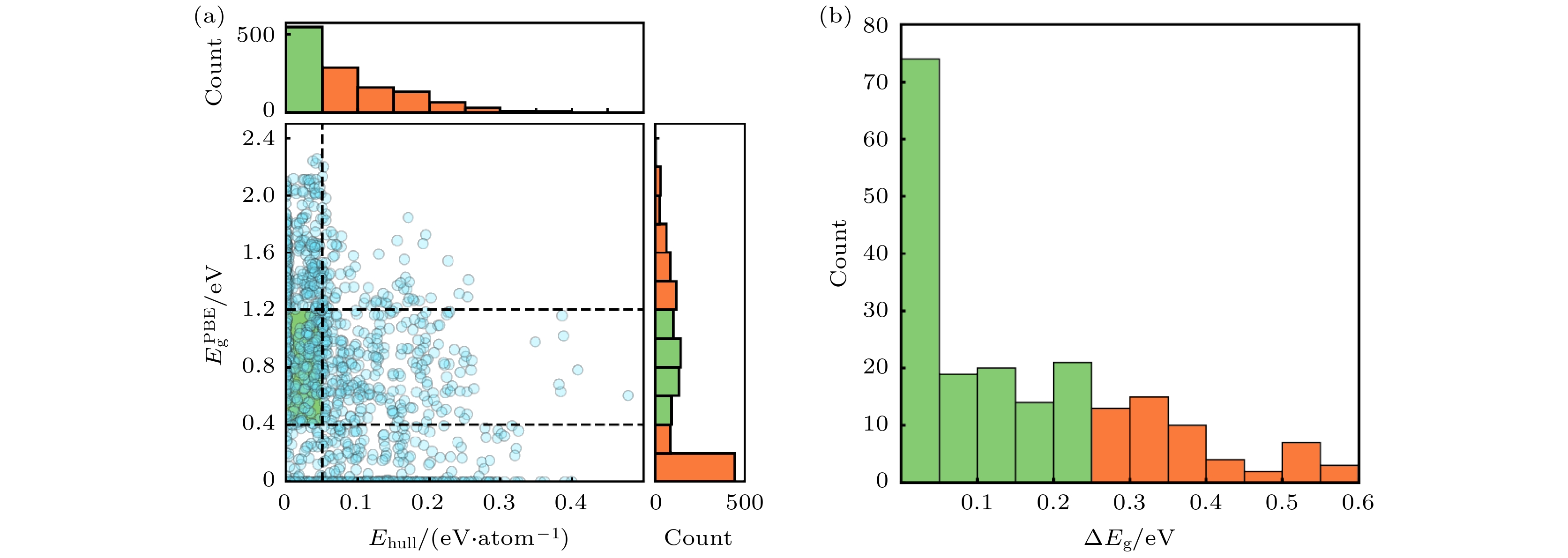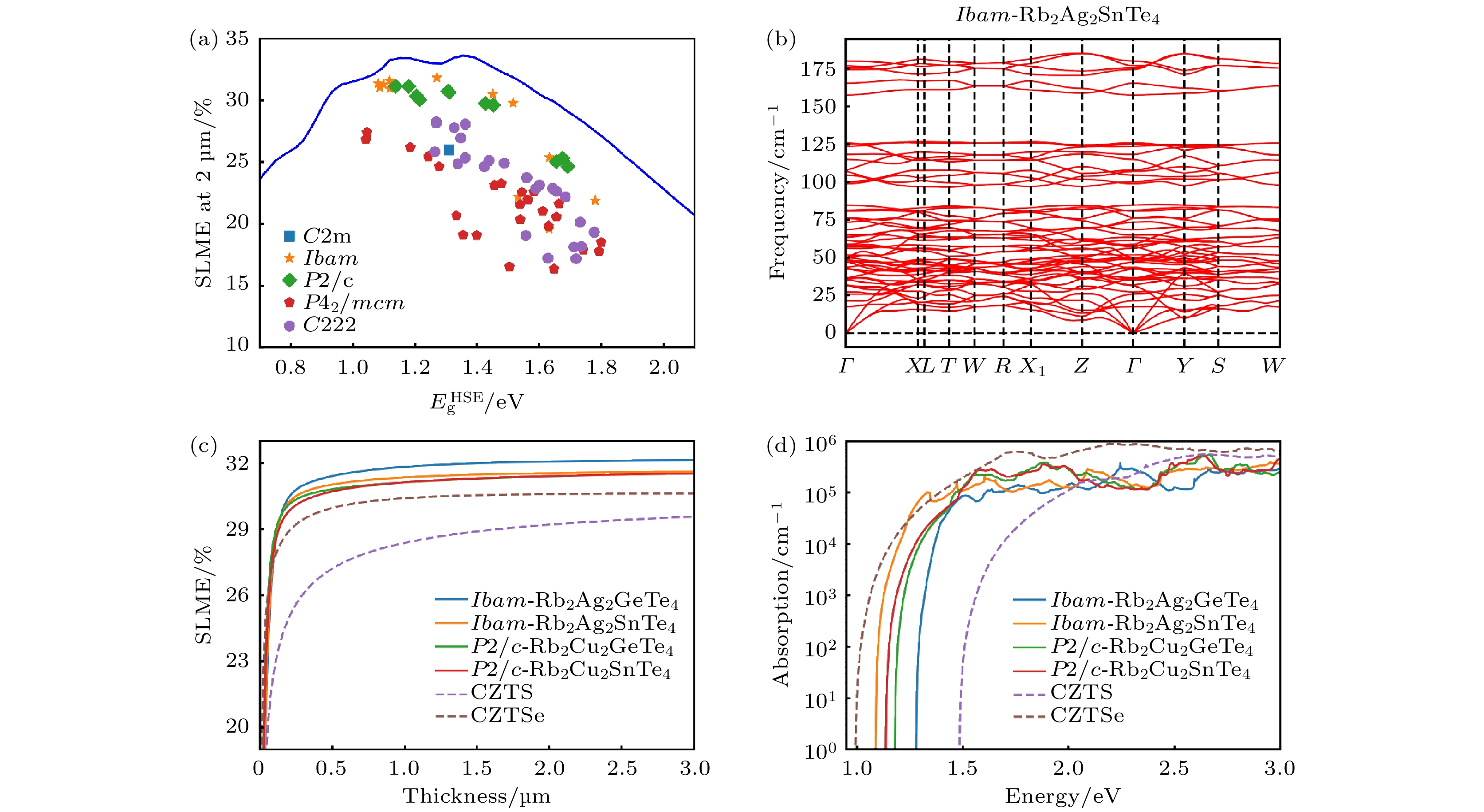 hull< 0.01 eV/atom), 202 compounds possess suitable band gaps (1.0–1.5 eV), and 10 compounds meet all the criteria for thermodynamic and dynamic stability, suitable band gaps, and high optical absorption performance (10