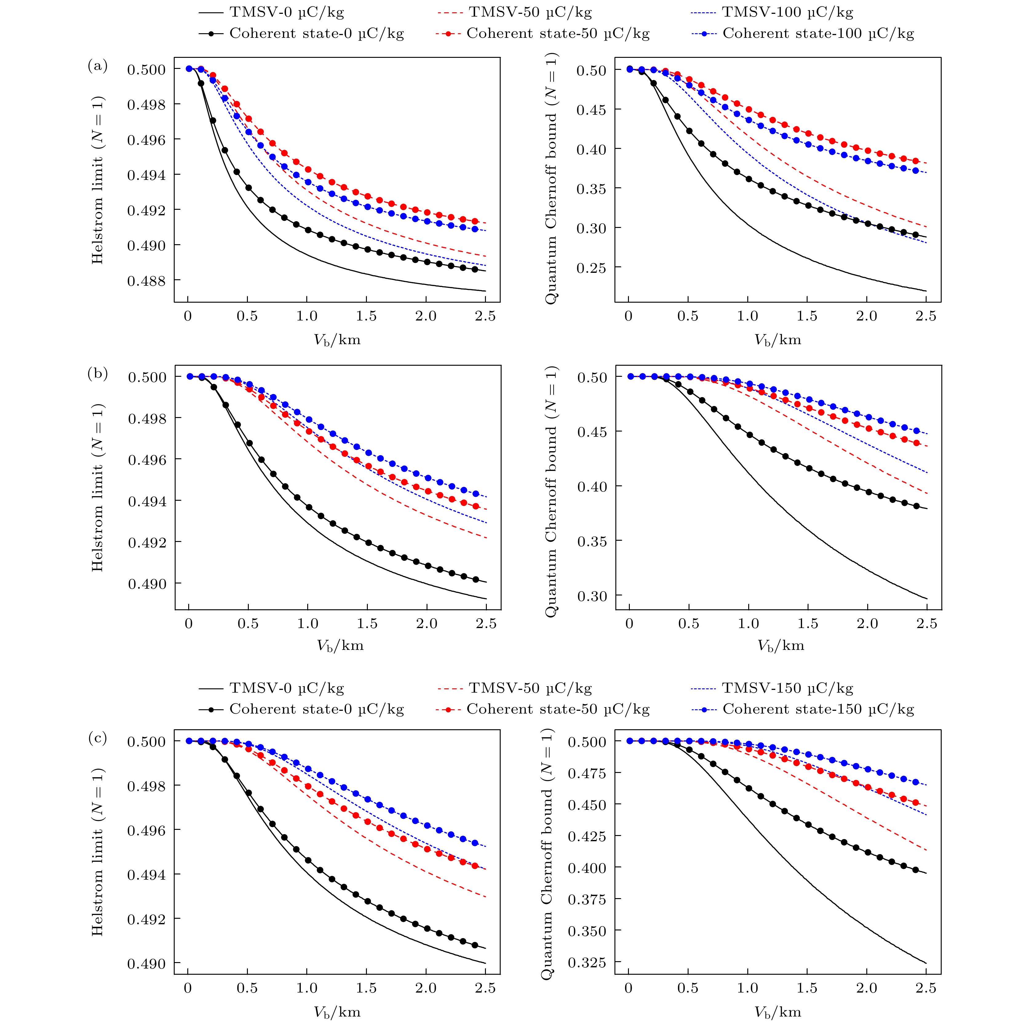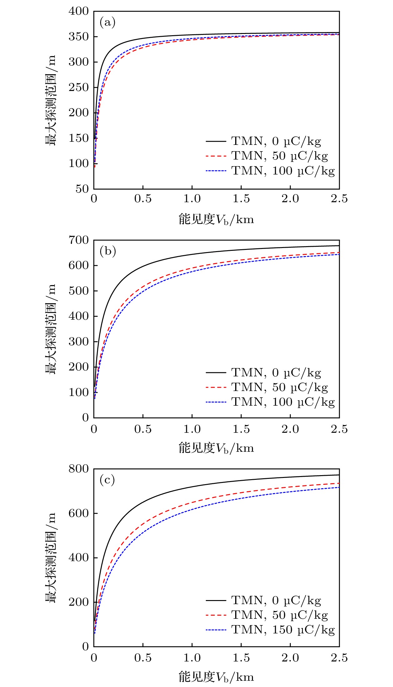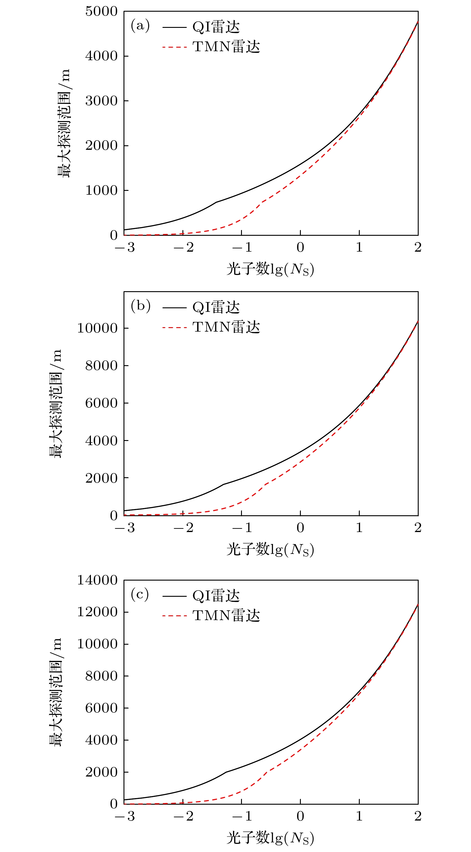 In a word, these results show that the performances of QI radar are more significant at lower atmospheric visibility. Under higher visibility conditions, the QI system SNR can be improved by increasing frequency. The maximum detection range of the QI radar is significantly better than that of the classical TMN radar.