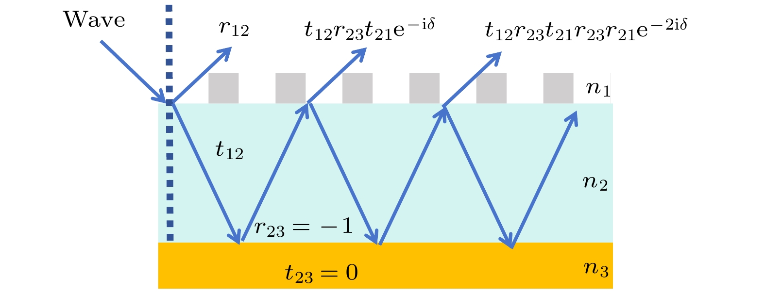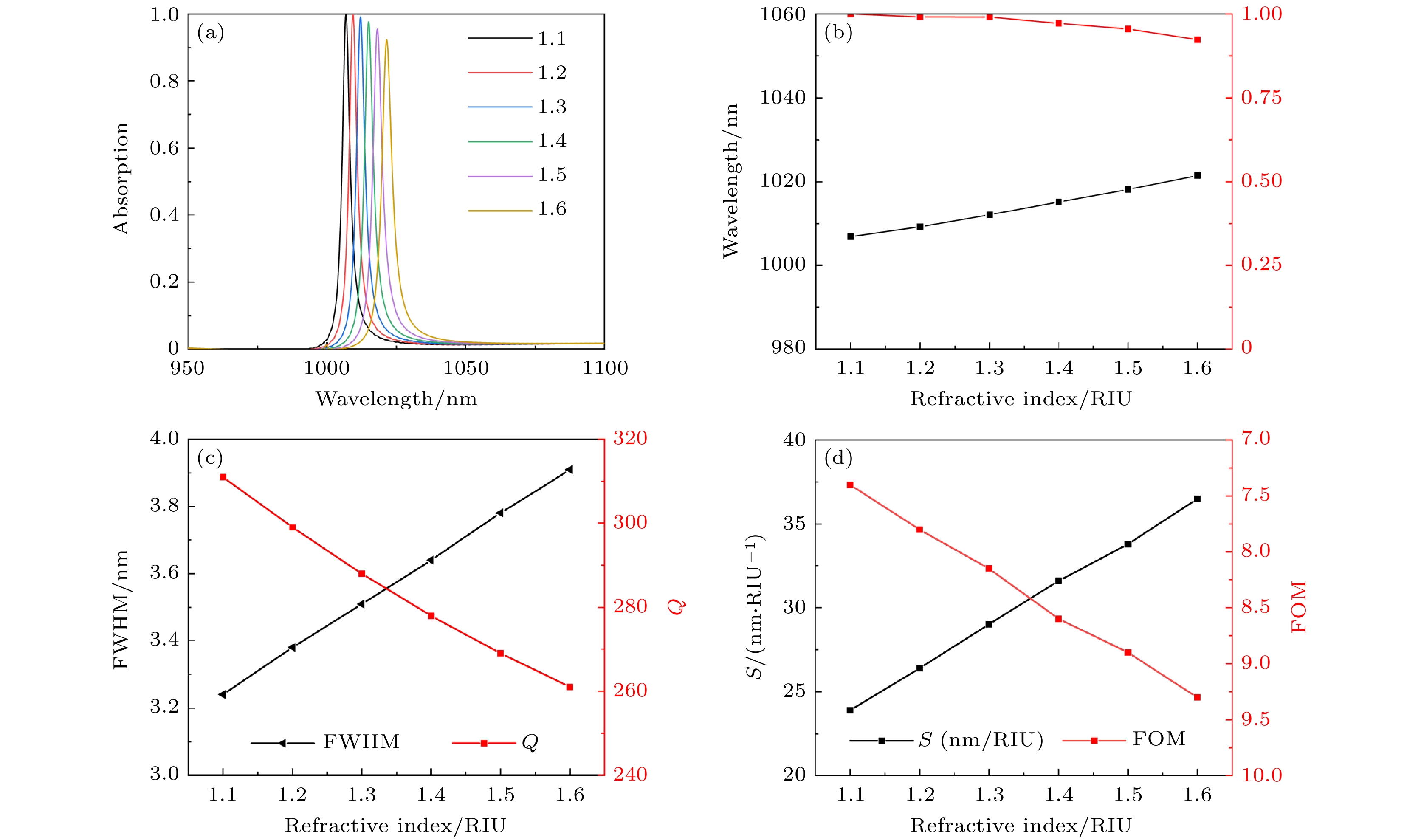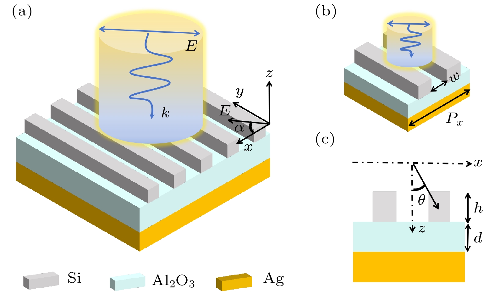 Excellent optical absorbers are always characterized by high quality factors and perfect absorption; however, these absorbers usually encounter the ohmic losses due to traditional surface plasmon resonance, which limits their absorption performance in practical applications. To address the problem, a tunable bound state in the continuum (BIC) based on Fabry-Perot cavity is proposed in this work. Figure (a) shows the structural model of the designed Fabry-Perot cavity absorber, which consists of Ag as a substrate, a layer of the dielectric material Al2O3above the Ag substrate, and a high-refractive-index grating as the top dielectric layer Si ridge. By adjusting the thickness parameterdof Al2O3, the transformation of BIC into q-BIC is achieved. Specifically, whendis increased from 273 nm to 298 nm, the BIC can be transformed into quasi-BIC, and the perfect absorption of the absorber in the continuum spectrum can be increased to 100%. In this work, the factors affecting the perfect absorption are explored by using the interference theory; theoretical calculations of the quasi-BIC are carried out by using the coupled mode theory and impedance matching theory; the physical mechanism of the BIC is explained by using the electric and magnetic field theory. The BIC is caused by the electric and magnetic dipole modes as well as the mirror image of the base Ag, which causes the interferential phase cancellation effect. Compared with the conventional absorber, the proposed absorber has excellent structural parameter robustness and a wide range of BIC modulation. More importantly, the absorber has excellent sensing performance with a maximum sensitivity of up to 34 nm/RIU and a maximum quality factor of 9.5. Last but not least, the absorber also achieves dual-frequency open-light performance, the maximum modulation depth and the minimum insertion loss of the dual-frequency switch reach 99.4% and 0.0004 dB, respectively. These findings have significant implications in the fields of photonics, optical communication, and sensor technology.