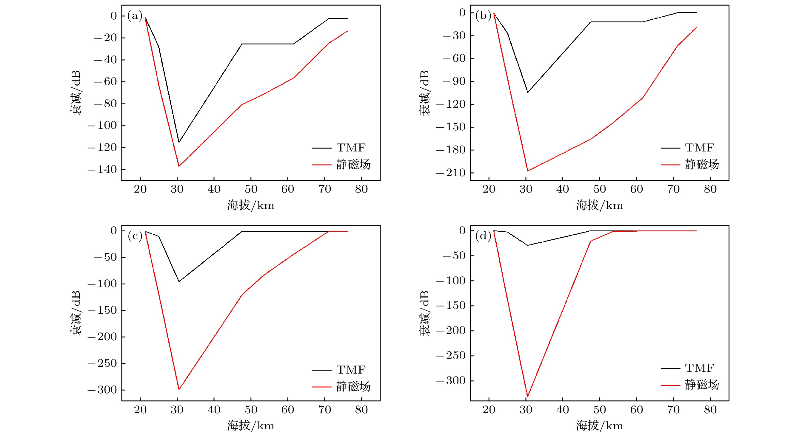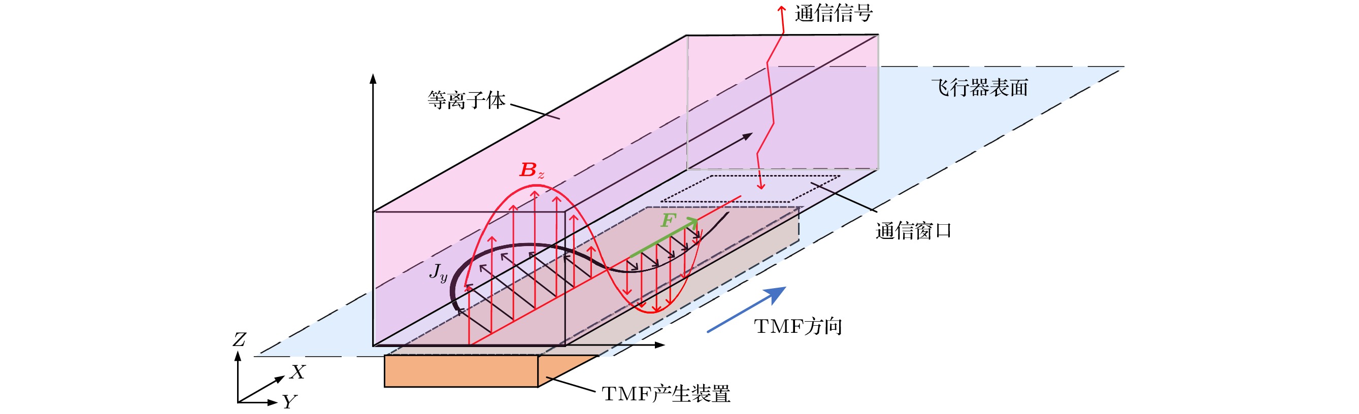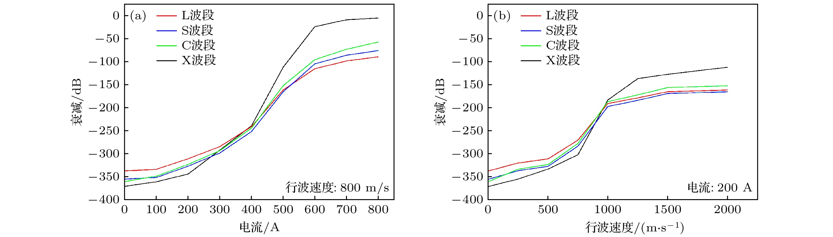 100 mm at the rear of the vehicle, resulting in a maximum decrease of 71% in plasma density in the region and providing continuous communication time. Meanwhile, the effects of initial density, collision frequency, traveling velocity and current magnitude on the plasma density distribution are investigated. The results show that with the increase of the initial density, the ability to regulate the plasma density is improved. However, due to the large density base, the adjusted plasma density is still higher than the plasma density of the low-density case. The increase of the collision frequency can significantly reduce the regulation effect. Increasing the traveling velocity and current can enhance the density-adjusting effect. However, further increasing the traveling velocity to above 800 m/s does not yield a more significant adjustment effect. Based on the data from the RAM-C flight test, the proposed model is used to study the effects of current magnitude and traveling velocity on the electromagnetic wave attenuation during aircraft reentry. The mitigation effect of the traveling magnetic field on electromagnetic wave attenuation is also compared with the effect of applying a static magnetic field. The results show that the applied traveling magnetic field can reduce the electromagnetic wave attenuation of the vehicle to below 30 dB in the X-band at an altitude of 30.48km, as well as in the L-, S-, C- and X-bands at other altitudes. The comparison between traveling magnetic field and static magnetic field demonstrates that the traveling magnetic field significantly outperforms the static magnetic field in mitigating electromagnetic wave attenuation.