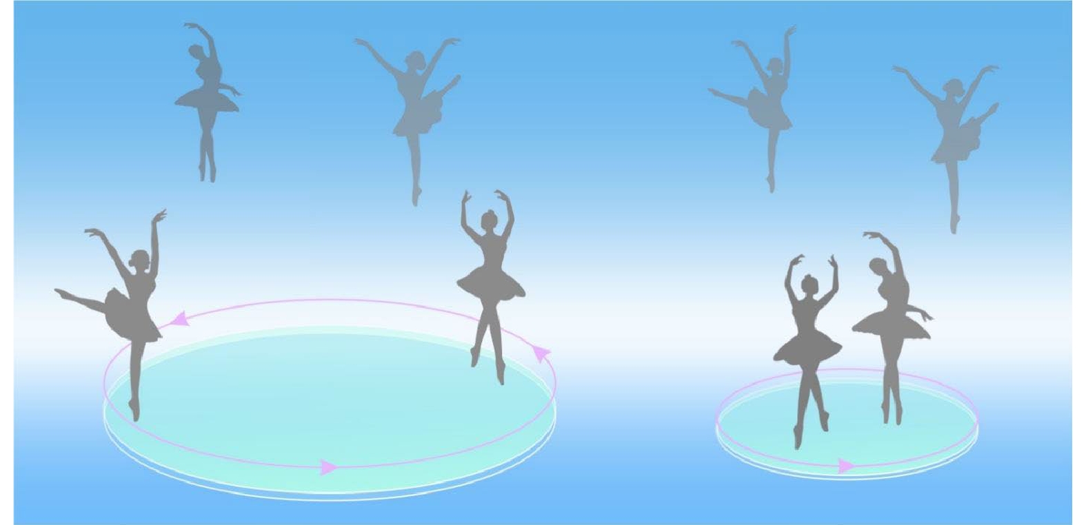 Quantum Field Theory of Many-body Systems: From the Origin of Sound to An Origin of Light and Electrons(Oxford: Oxford University Press)], with left panel showing that in the Laughlin ground state (or dancing pattern), the minimum relative angular momentum of a pair of dancers is three, ensuring sufficient separation between them, and with right panel displaying that a graviton-like excitation corresponding to a pair whose relative angular momentum changes from three to one (antisymmetry of fermion wave function only allows for odd relative angular momenta). This is not allowed in the Laughlin state, as a result, it corresponds to an excitation which is the “graviton” detected by Liang et al. [Liang J H, Liu Z Y, Yang Z H, et al.