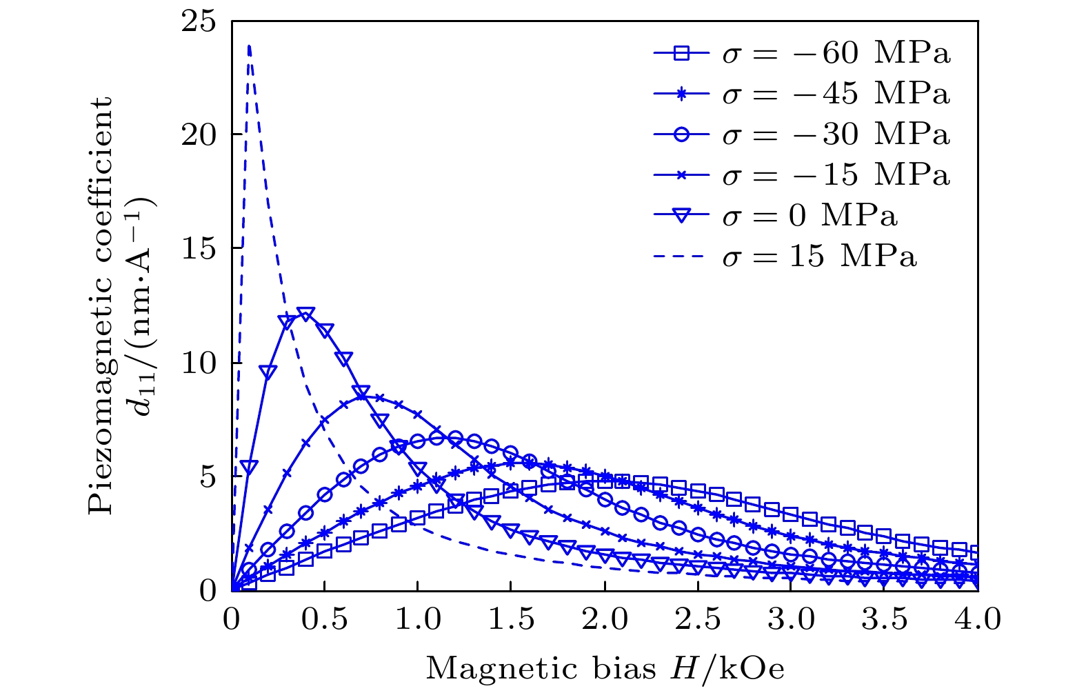 In order to further study the nonlinear characteristics of the resonance magnetoelectric coefficient and vibration mode at the resonance frequency, three-layer magnetoelectric composite with length direction magnetization and thickness direction polarization is investigated in the article. Firstly, based on the Z-L model and the numerical solution characteristics of magnetization intensity, the magnetization intensity function is fitted, and the dynamic parameters of the giant magnetostrictive material, including dynamic piezomagnetic coefficient, dynamic elastic compliance coefficient, and dynamic magnetic permeability, are further derived. The effects of bias magnetic field and prestress on the corresponding composite are analyzed. Secondly, based on the nonlinear magnetostrictive constitutive equation, a symmetric magneto-elastic-electric equivalent circuit model of magnetoelectric laminate composite is established, and the expression of magnetoelectric coefficient is derived. The variation curve with bias magnetic field and prestress is analyzed, which is consistent with the conclusions of existing literature [Zhou H M, Ou X W, Xiao Y, Qu S X, Wu H P2013 Smart Mater. Struct. 22 035018 ; Zhou H M, Li C, Xuan L M, Wei J 2011 Smart Mater. Struct. 20 035001 ]. Finally, in order to compare with the theoretical results, the same parameters are set by using COMSOL software, and the corresponding magnetoelectric coefficient frequency curve is plotted. The two results are in good agreement with each other, and the maximum peak modal vibration shape is extracted, making it easy to observe the vibration of the magneto electric laminated composite in the length direction. The results indicate that the theoretical model of this symmetric magneto-elastic-electric equivalent circuit and the numerical simulation method using COMSOL software are feasible, thereby laying the foundation for further nonlinear analysis of magnetoelectric laminate composite and making it possible to design high-precision magnetoelectric micro devices.