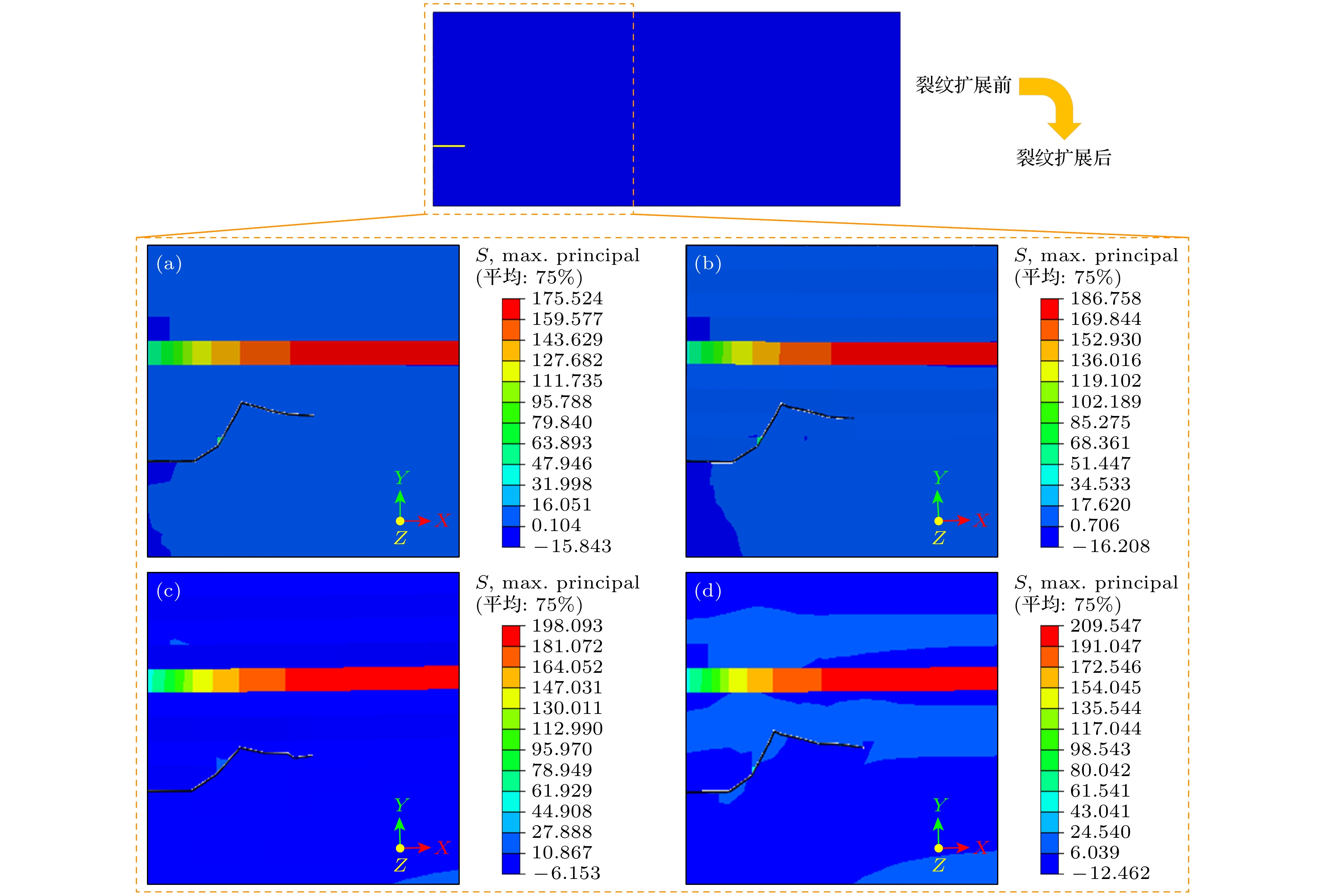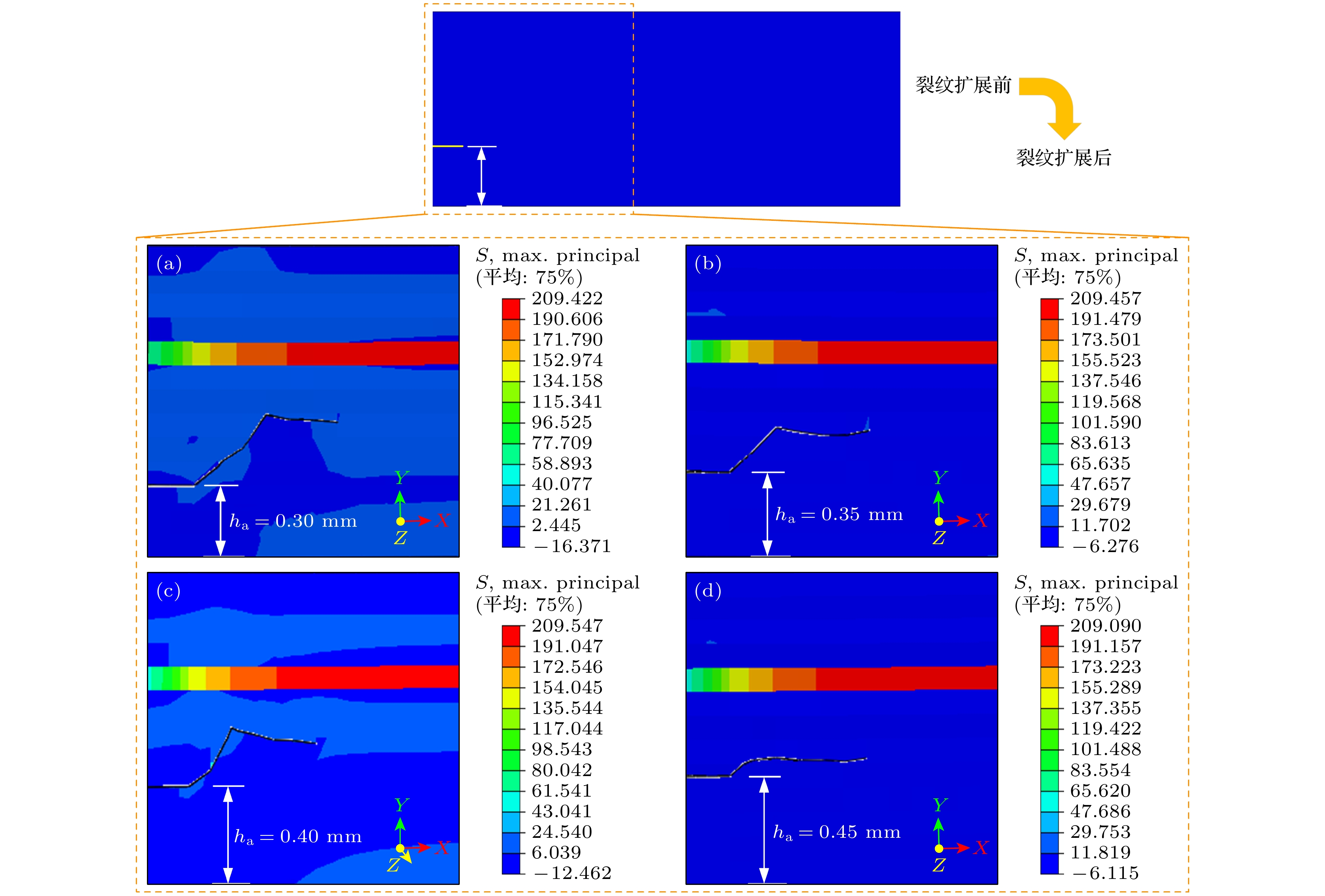 The mechanical performance of solid oxide fuel cell is one of the main factors limiting its commercialization process. In order to reduce the degree of crack propagation in the cooling process and improve the stability and durability of the cell, the finite element analysis is conducted on a three-dimensional model of solid oxide fuel cell containing pre-crack. Utilizing the extended finite element method (XFEM) and fracture theory, and considering the stress distribution, length and maximum width after crack propagation and deflection angle of crack as criteria, this paper investigates the influence of various parameters, including working temperature, material properties, pre-crack angle, and pre-crack location, on pre-crack propagation behavior and proposes a solution based on material optimization and structural optimization to improve the stability of the cell. A pre-crack is set at the left boundary of the anode to analyze the influence of different operating conditions on the propagation of anode cracks in the cell. The correctness of finite element simulation is verified by comparing the simulation results with theoretical results of crack stress intensity factors in the same model. From the comprehensive analysis of the thermal stress of the cell, the crack length and maximum width after pre-crack propagation, and the two deflection angles of crack propagation, it can be seen that within the selected parameters, in order to ensure the stability of the cell and inhibit the degree of crack propagation, the operating temperature of the cell should not be lower than 1023 K, and the thermal expansion coefficient of anode should be less than 12.50×10–6 K–1. In addition, when the pre-crack angle is 45° or 0.45 mm away from the bottom of anode, the maximum width after crack propagation is the smallest, and the propagation path is the most predictable. In this case, the cell is affected by the smallest crack range and the highest stability. This research provides a guidance for suppressing crack propagation in solid oxide fuel cell, improving the lifetime and promoting the commercialization process of fuel cell.