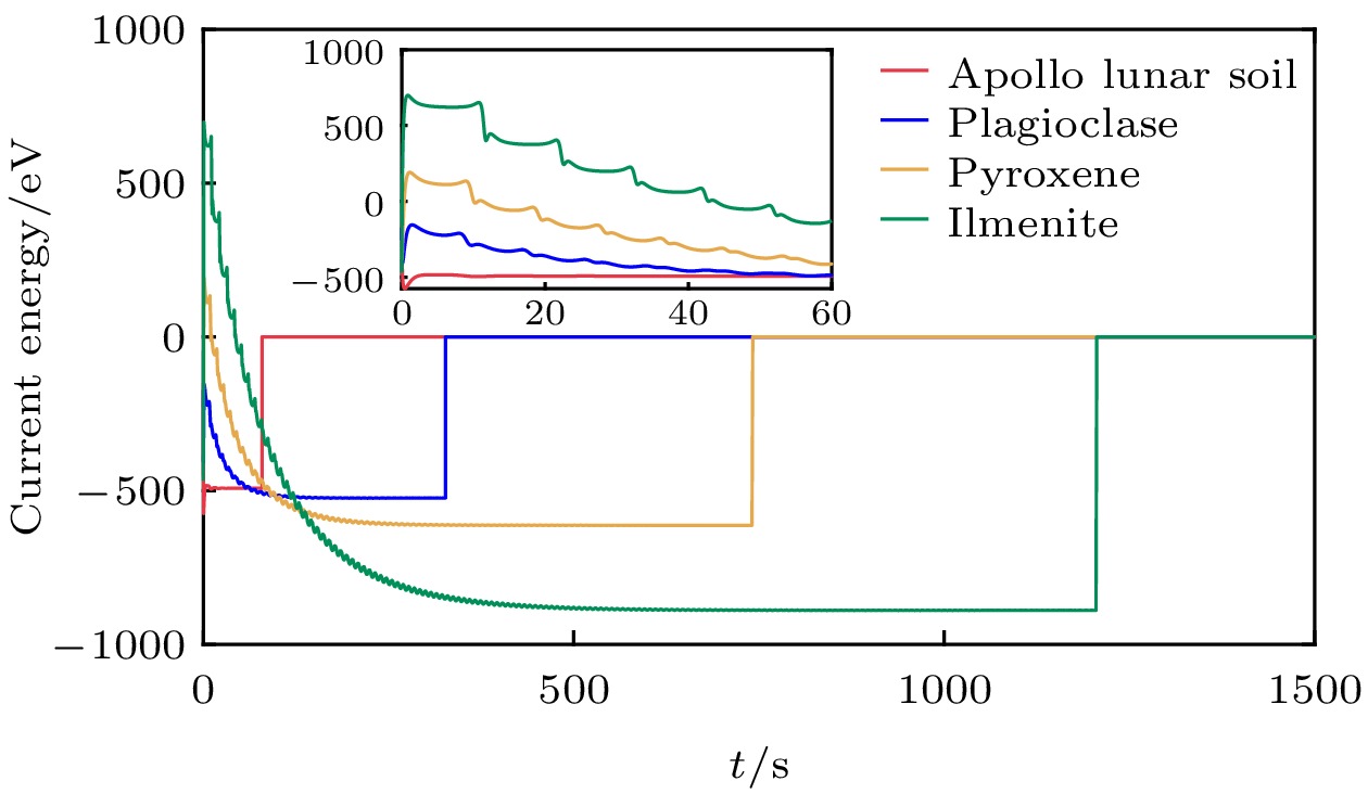 Charged dust on the lunar surface poses a threat to space missions. Research into charged dust is essential for the safety of future space missions. When calculating the charging currents related to photoelectrons, a single constant work function is assumed in the conventional lunar dust charging theory. However, the components of lunar regolith exhibit considerable diversity, including plagioclase, pyroxene, and ilmenite. Because the ability of the lunar surface or lunar dust to emit photoelectrons strongly depends on its work function, it is necessary to analyze the effect of the work function on dust charging and dynamics near the lunar surface. In this work, we use a novel method that can predict the photoelectric yield of materials with different work functions to recalculate the surface charging currents of four types of dust particles and derive their subsequent charging and dynamic results at different solar zenith angles (SZAs). As SZA varies from 0° to 90°, the work function value of dust decreases into 6 eV (Apollo lunar soil), 5.58 eV (plagioclase), 5.14 eV (pyroxene), and 4.29 eV (ilmenite), correspondingly. With each decrement in work function, the equilibrium charging current of dust particles increases about 0.25 times, the equilibrium charge number increases about 120–170 elemental charges, and the equilibrium height increases about 0.3–2 m. It is found that dust particles cannot levitate stably at a critical SZA, and the critical SZAs for the four types of dust particles are 28°, 76°, 85.8°, and 89.6°, respectively (arranged in decreasing order of work functions). These results indicate that the equilibrium heights, equilibrium currents, and critical SZAs all have an inverse relationship with the work function of dust particles as the SZA varies from 0° to 90°. Furthermore, a higher photoelectron density in areas with lower work functions leads energy losses to decrease, thus causing dust particles to take longer time to reach equilibrium. This means that the equilibrium time follows the pattern similar to that of the work function.