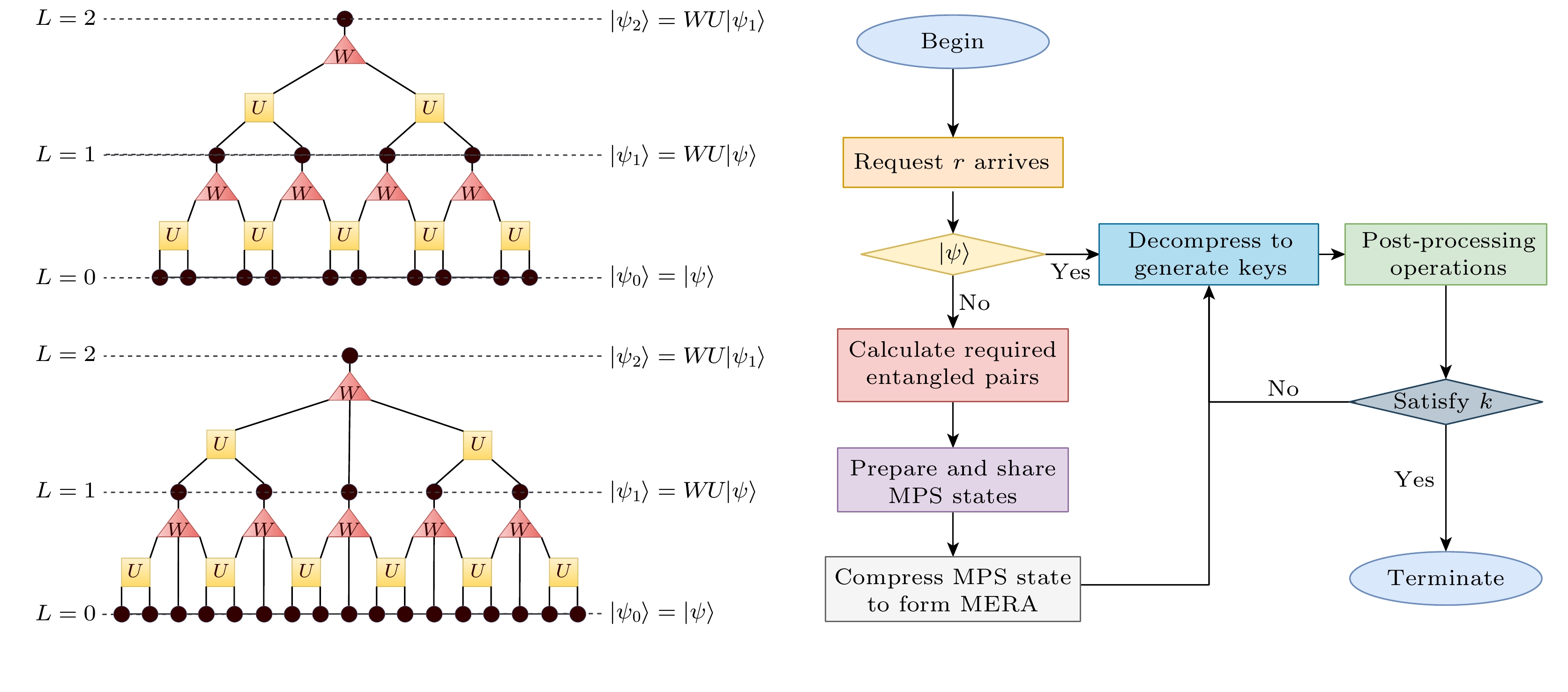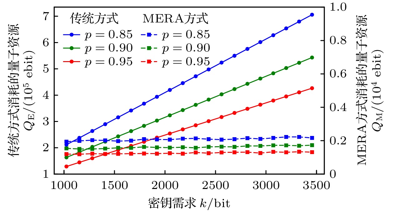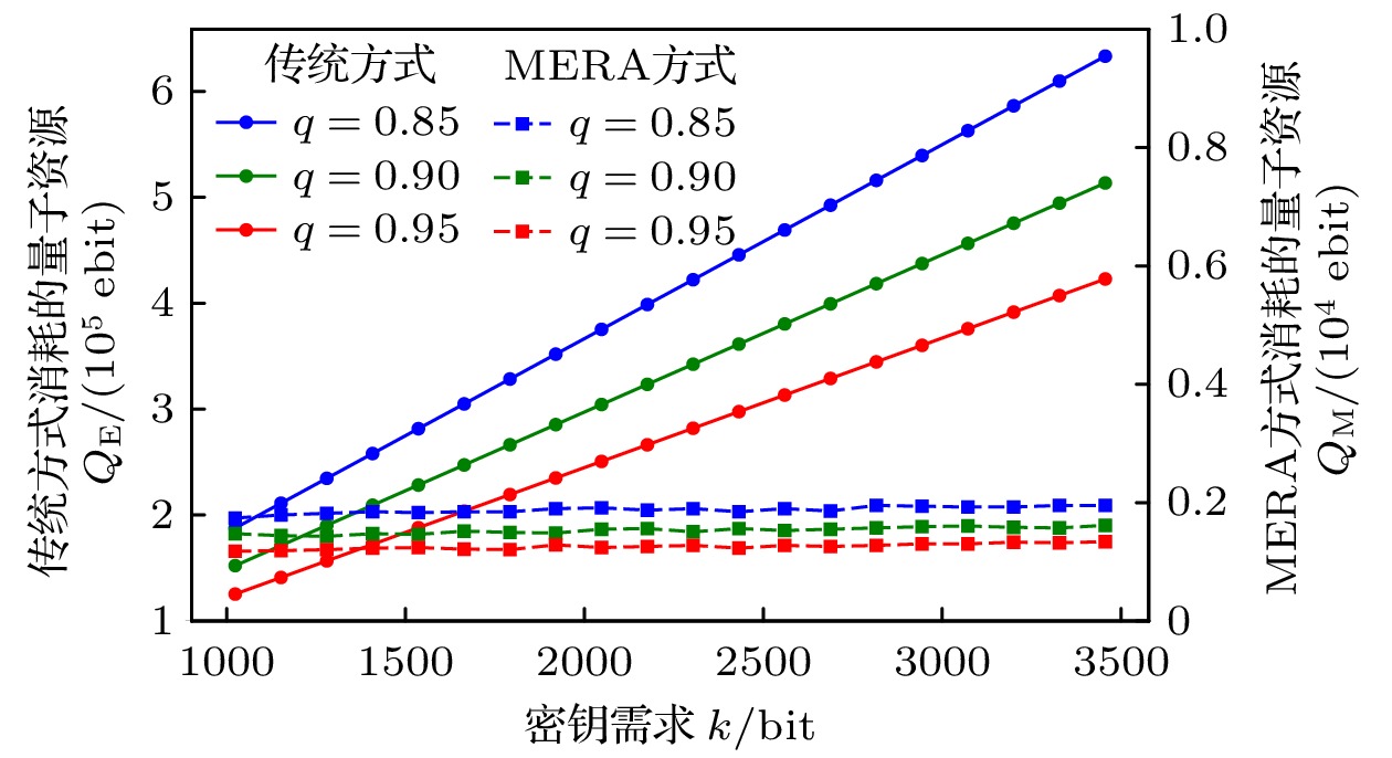 Quantum key distribution (QKD) is a pivotal technology in the field of secure communication by using the principles of quantum mechanics to implement theoretically unbreakable encryption. However, QKD faces significant challenges in achieving large-scale deployment. The primary hurdle lies in the scarcity of quantum resources, especially entangled photon pairs, which are fundamental to protocols such as Ekert91. In traditional QKD implementations, only a small potion of the generated entanglement pairs contribute to generating the original key, resulting in lower efficiency and resource waste. Resolving this limitation is crucial to the advancement and scalability of QKD networks. This paper introduces an innovative approach to QKD by integrating the multiscale entanglement renormalization ansatz (MERA), a technique which is originally developed for many-body quantum systems. By utilizing MERA’s hierarchical structure, the proposed method not only improves the efficiency of entanglement distribution but also reduces the consumption of quantum resources. Specifically, MERA compresses many-body quantum states into lower-dimensional representations, allowing for the transmission and storage of entanglement in a more efficient manner. This compression significantly reduces the number of qubits required, optimizing both entanglement utilization and storage capacity in quantum networks. To evaluate the performance of this method, we conduct simulations under standardized conditions. In the simulation, a 1024-bit encryption request, an 8% error rate, an average path length of 4 hops in the quantum network, and a 95% success rate for link entanglement generation and entanglement swapping operations are assumed. These parameters reflect the real physical conditions in contemporary QKD networks. The results demonstrate that compared with traditional QKD protocols, the MERA-based approach saves 124151 entangled pairs, which is impressive. This significant reduction in resource consumption indicates the potential application of MERA in improving the efficiency of QKD systems without sacrificing security. Importantly, the security of the key exchange process remains intact, for the method inherently adheres to the principles of quantum mechanics, particularly the no-cloning theorem and the use of randomness in the decompression layer. Some conclusions can be drawn below. The MERA not only enhances the scalability of QKD by optimizing quantum resource allocation, but also maintains the necessary security guarantees for practical cryptographic applications. By integrating MERA into existing QKD frameworks, we can significantly reduce the resource overhead and make large-scale, secure quantum communication more feasible. These findings contribute a new dimension to the field of quantum cryptography, indicating that advanced quantum many-body techniques like MERA have the potential to unlock the full potential of quantum networks in real world.