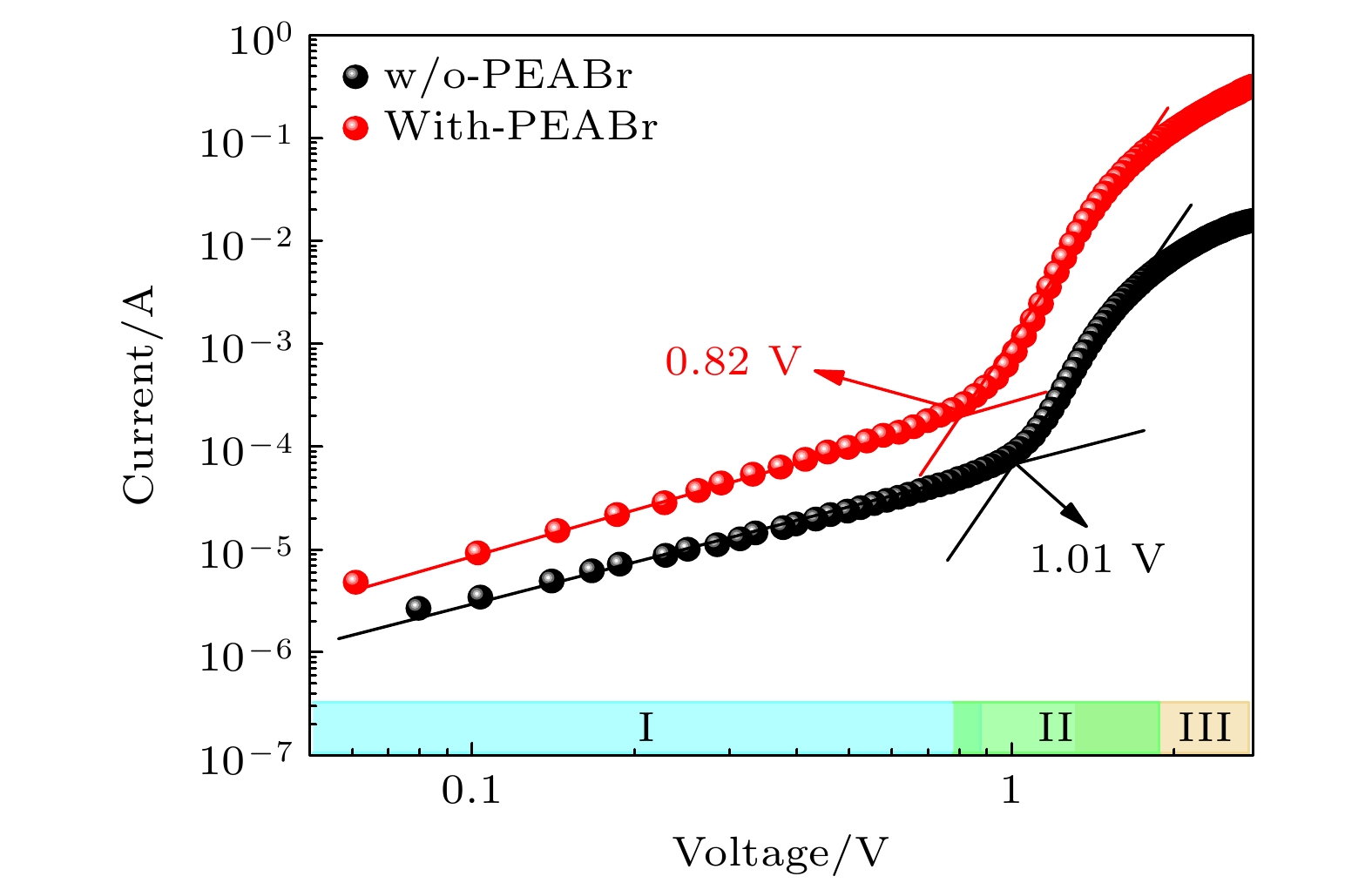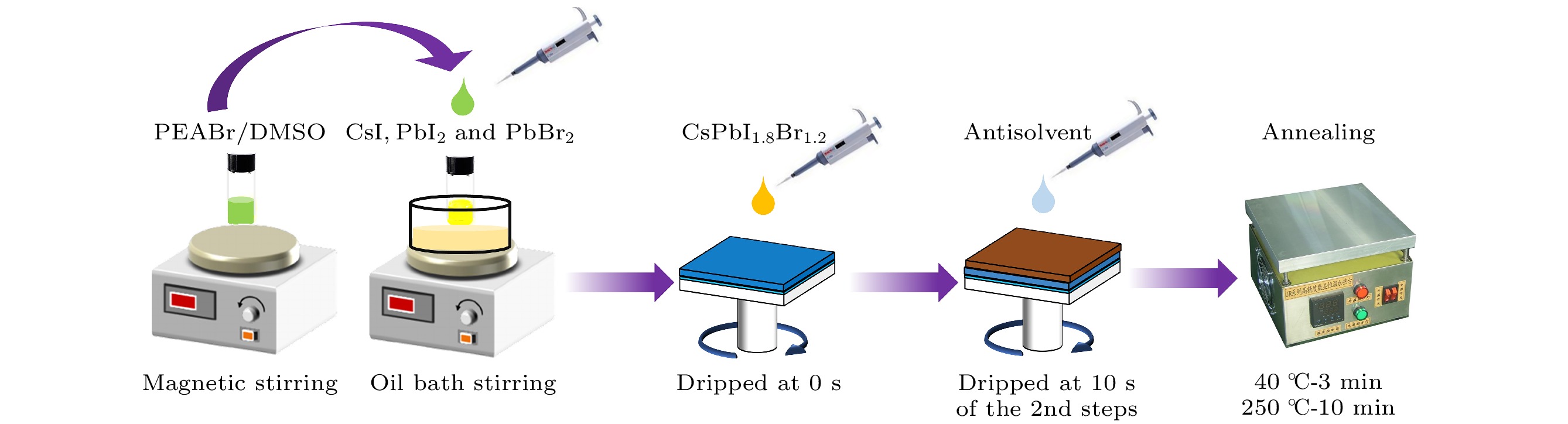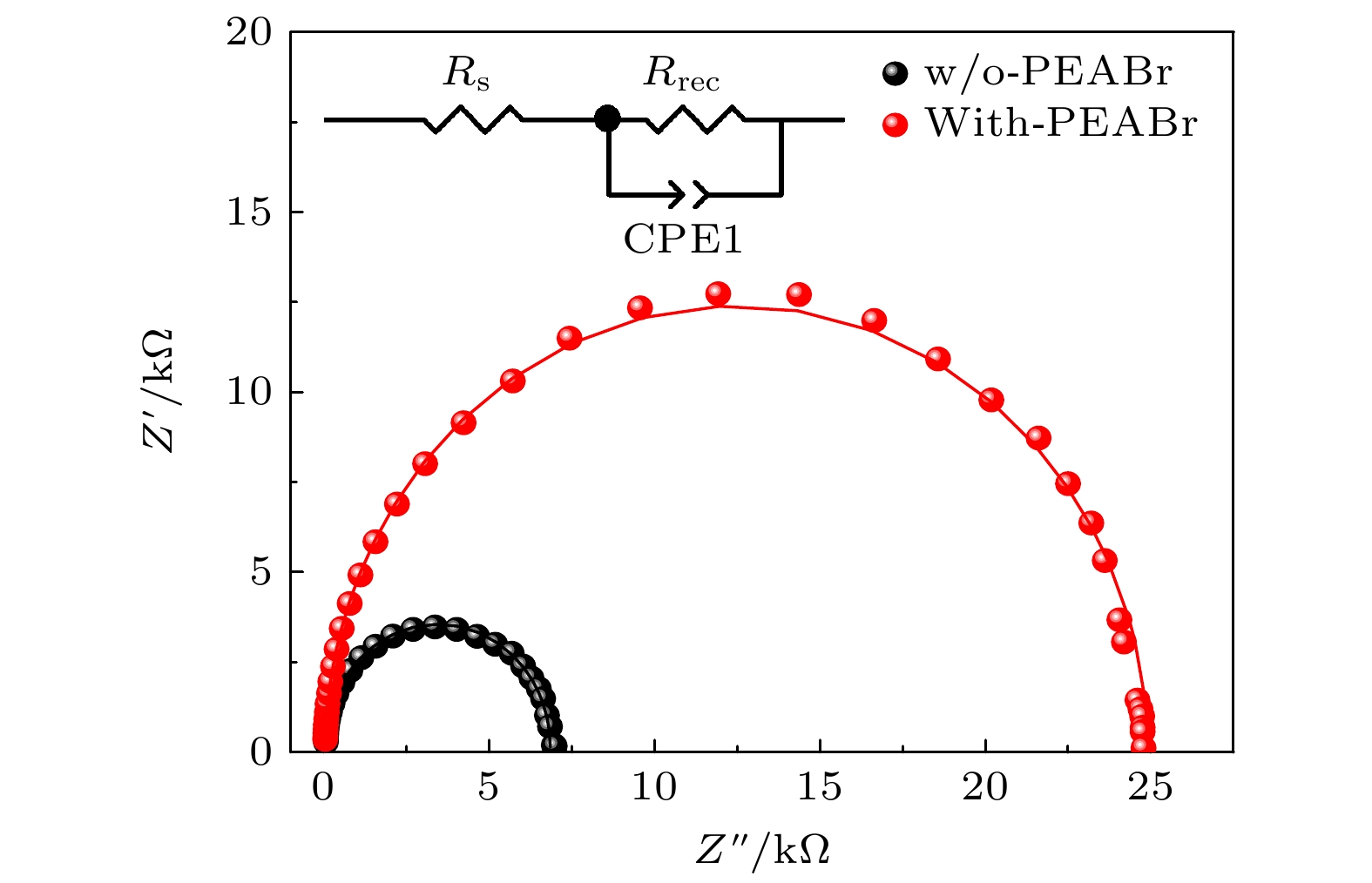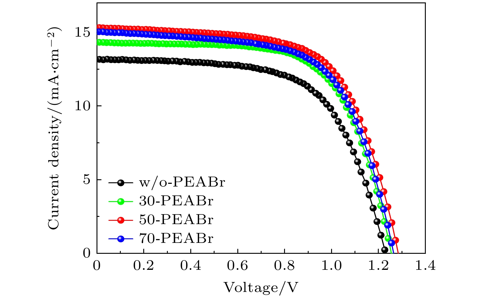 The new all-inorganic CsPbX3 perovskite material is expected to be used as an absorbing layer to prepare solar cells for efficient and stable commercial devices. However, the problems of high cost and poor stability, caused by precious metal electrodes and hole transport materials, urgently need solving. Therefore, carbon-based perovskite solar cells (C-PSCs) based on the HTL-free all-inorganic system have attracted widespread attention. This work adopts a strategy of finely regulating the ratio of I to Br in X-site of perovskite. Using the one-step anti-solvent method, CsPbIxBr3–x films and HTL-free C-PSCs are prepared under ambient air condition. By comparing their light absorption characteristics, carrier transport, and corresponding optoelectronic properties, a balance point between efficiency and stability is found. Finally, HTL-free C-PSCs achieve an optimal efficiency of 10.10% and can be stably prepared under ambient air conditions. In order to further improve the performance of the corresponding devices, phenylethylammonium bromide (PEABr) is introduced into the perovskite, and the crystallinity, carrier transport, defect situation, and corresponding optoelectronic properties of perovskite films and devices are compared under different conditions. Ultimately, the perovskite film treated with PEABr reaches better crystallinity and lower defect density, while generating a small amount of two-dimensional perovskite which can passivate the perovskite film and suppress non-radiative recombination of charge carriers. After appropriate PEABr treatment, the photoelectric conversion efficiency (PCE) of the device is significantly enhanced, increasing from 10.18% of the optimal device in the control group to 12.61%. Thus, this method provides an optimal approach for preparing efficient and low-cost HTL-free C-PSCs under ambient air environments.