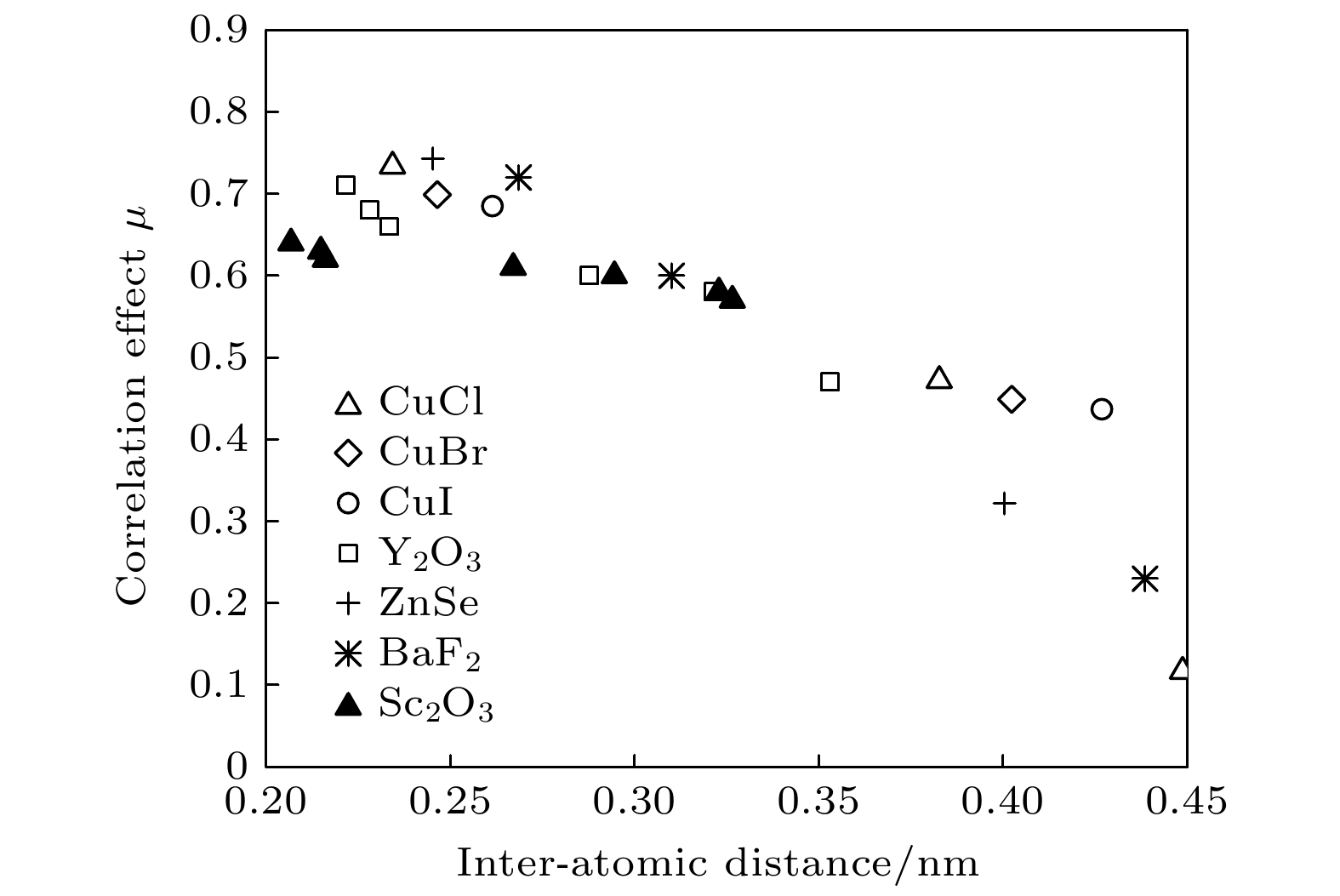 Atoms in crystals will generate thermal diffuse scattering during thermal vibration. Thermal diffuse scattering analysis has great potential applications in condensed matter physics and material science research. Scandium oxide (Sc2O3) has unique physical and chemical properties, which make it have high research and application value. In this work, X-ray diffraction experiment is performed on Sc2O3at room temperature of 26 ℃. The thermal diffuse scattering intensity exhibits a clear vibrational shape. The full diffraction back-based intensity equation of Sc2O3is expanded, and the theoretical value of the thermal diffuse scattering intensity is calculated until the full diffraction back-based intensity spectrum of the 14th nearest atom (r= 0.3816 nm) is calculated. By fitting the theoretical value to the experimental value, we can see the inter-atomic thermal vibration correlation effectμvalues corresponding to the nearest neighbor atom to the 7th nearest neighbor atom, the values of distancerfrom the nearest neighbor atom to the 7th nearest neighbor atom are 0.2067, 0.2148, 0.2161, 0.2671, 0.2945, 0.3229 and 0.3265nm, respectively, corresponding to their inter-atomic thermal vibration correlation effectμvalues of 0.64, 0.63, 0.62, 0.61, 0.60, 0.58 and 0.57. Research result shows that the intensity of thermal diffuse scattering in Sc2O3is closely related to the atomic thermal vibration, the most significant influence on the vibration shape of thermal diffuse scattering intensity is the thermal vibration correlation effect between the 7th nearest atom Sc1-Sc2. Inter-atomic thermal vibration correlation effectμvalues will provide important parameters for studying the mechanical and thermal properties of materials, laying the foundation for the next-step calculating specific heat and interatomic force constant, and thus playing a crucial role in the use and development of materials.