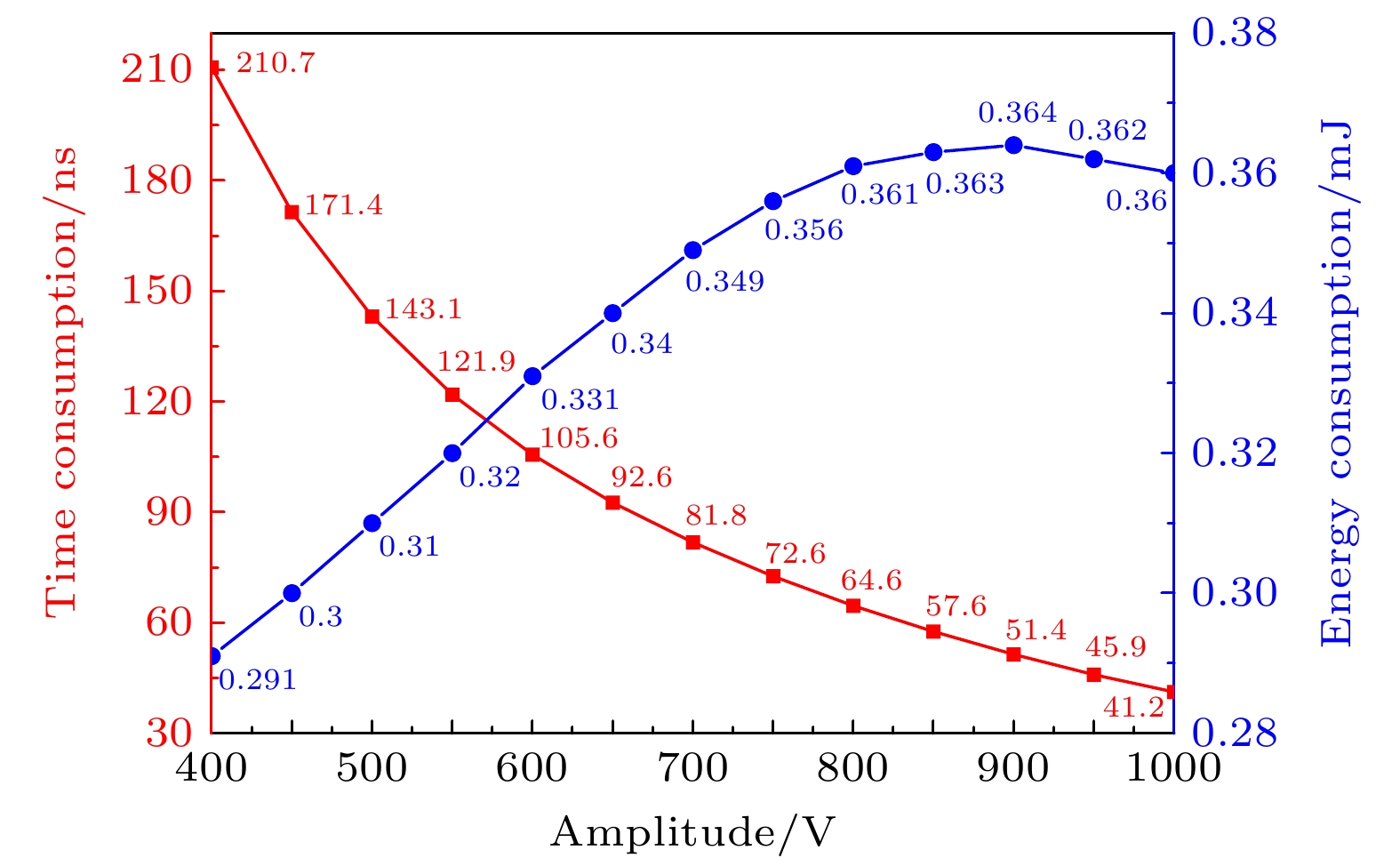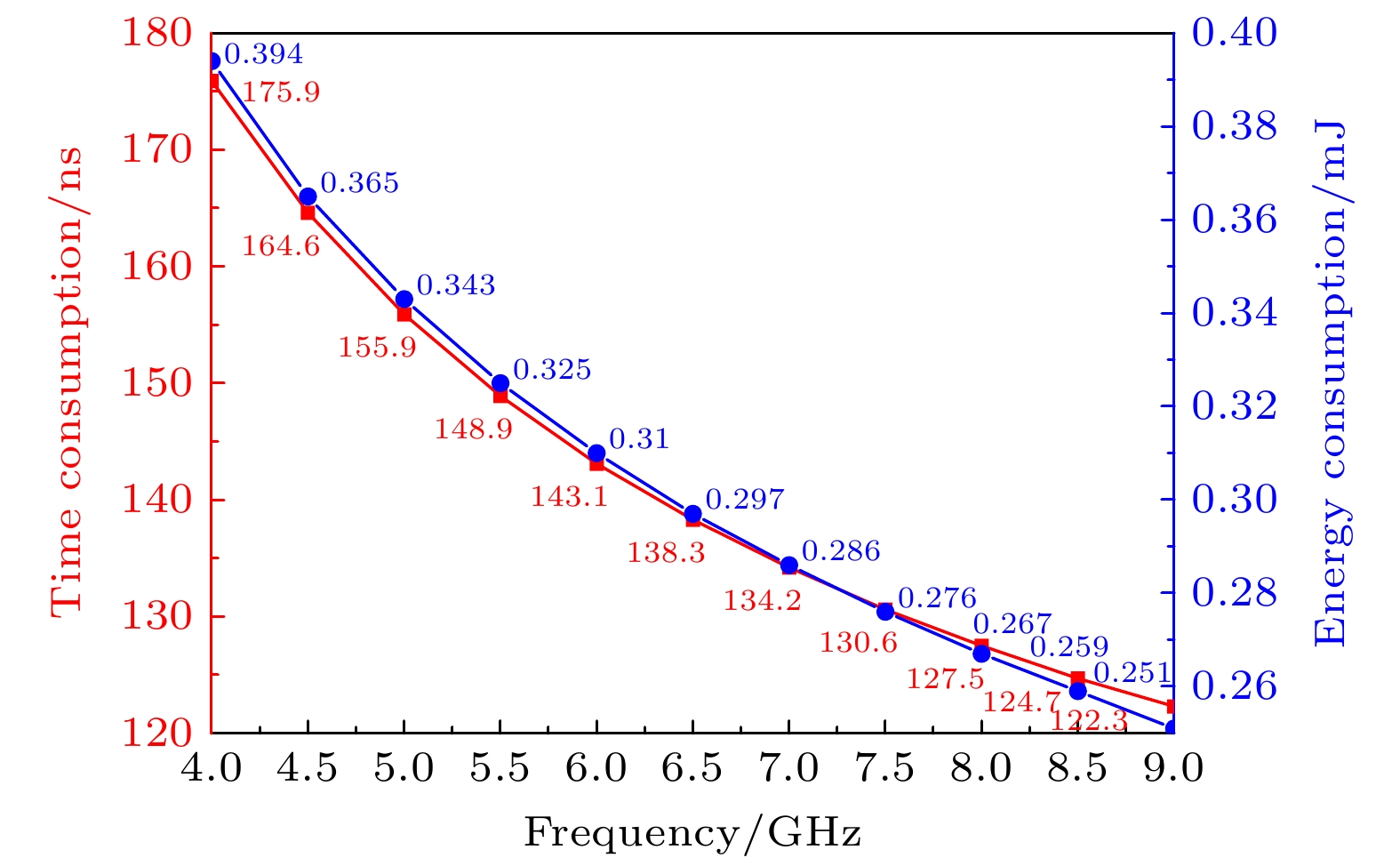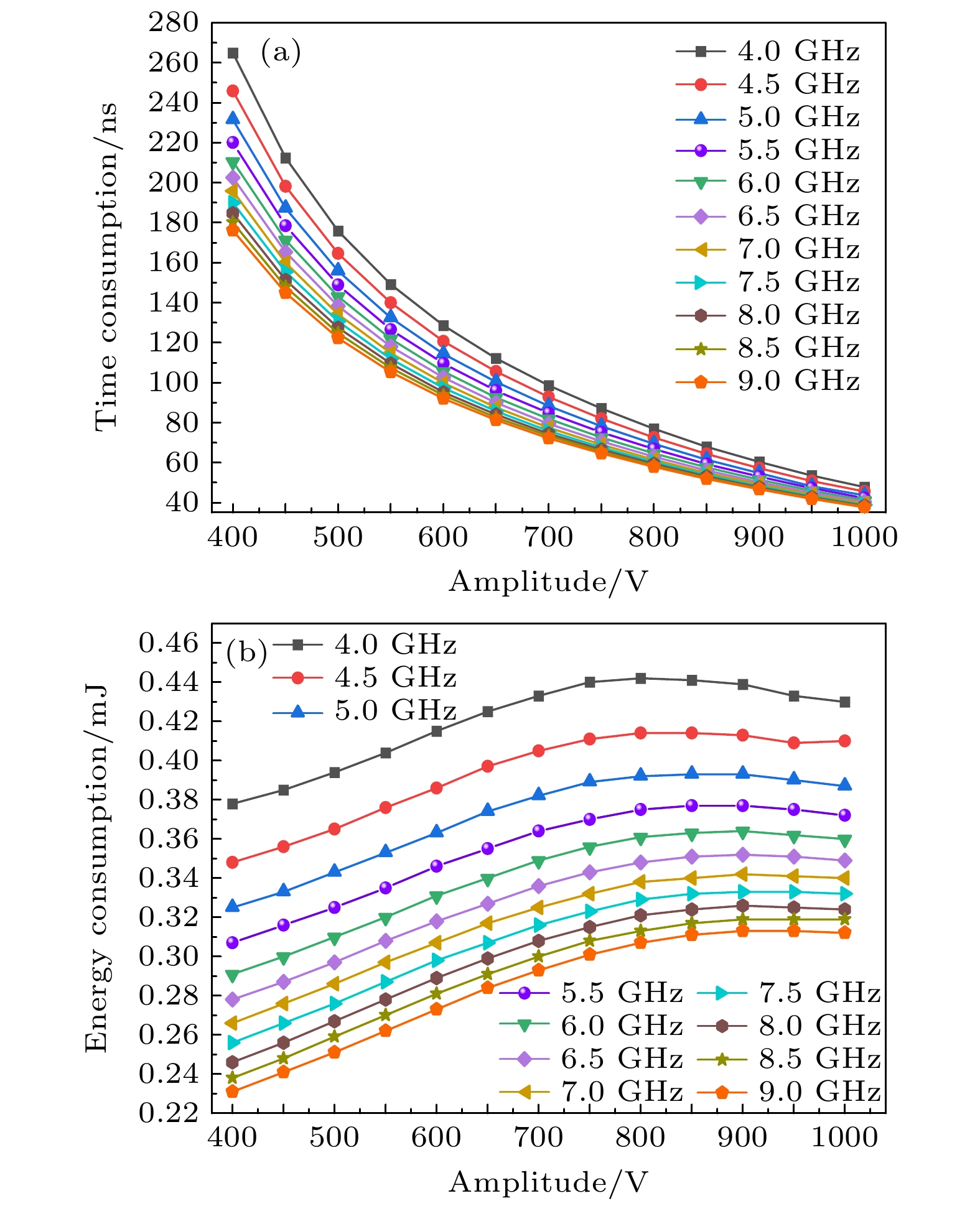 According to the simulation results, the temperature change of the second-stage PIN diode is relatively small compared with that of the first-stage. During the injection of the microwave pulse, the failure time and energy consumption of limiter show a certain regularity with the variation of microwave pulse amplitude and frequency, and this work discusses this regularity from the following three aspects. Firstly, the failure time and energy consumption decrease in a similar trend with frequency increasing. And with the increase in signal amplitude, the failure time and energy consumption tend to stabilize. Secondly, the increase in the signal amplitude leads failure time to decrease, which is similar to the relationship between failure time and the signal frequency mentioned before. But as the signal’s amplitude increases, the energy consumption first increases and then decreases slightly when the amplitude reaches about 900 V. Based on the theoretical analysis and the physical image of the two-stage PIN limiter, the reasons for these effects can be explained as the changes in the I-region's impedance and heat distribution change caused by electric field changes. Thirdly, the failure time and energy consumption show different sensitivities to different parameters of the microwave pulse. The signal frequency change has greater influence on the energy consumption than the signal amplitude change, while the amplitude change can exert a greater influence on the failure time than the frequency change.