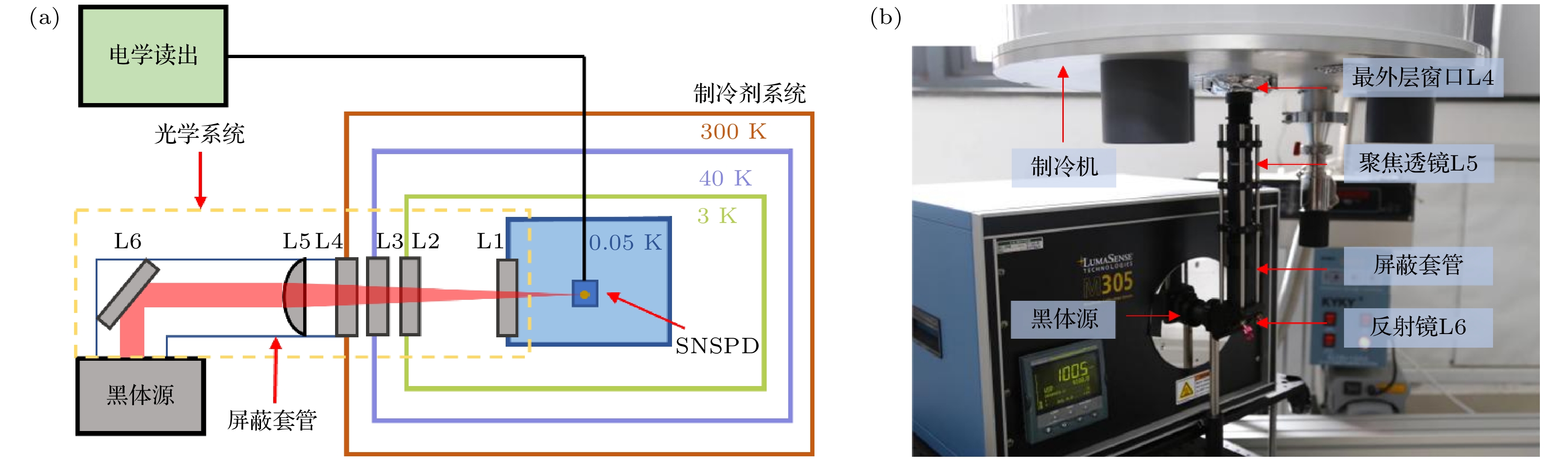Superconducting nanowire single-photon detector is a kind of refrigerated photon-counting detector with high performance, which can detect extremely weak signals. The noise of optical system is an important factor limiting the sensitivity of infrared superconducting nanowire single-photon detector. In order to improve the sensitivity of infrared detection system, the calculation model of signal-to-noise ratio and background radiation of infrared optical system based on superconducting single photon detector is established and the source of noise in optical system and the radiation emission of black body are analyzed theoretically. The noise characteristics of infrared optical system are quantitatively analyzed by photon counting capability of superconducting nanowire single-photon detector, and the relationship between the photon count rate and temperature under a small temperature difference is explored. An optical system based on infrared superconducting single photon detector is designed. The designed optical system improves the infrared photon coupling efficiency and the signal-to-noise ratio of the superconducting detection system, which are verified theoretically and experimentally , thus reducing the influence of background radiation on the detection system. The results show that the superconducting single-photon detector has high sensitivity to the analysis of the infrared optical system, and the minimum resolved movement distance is 2.74 × 10–2mm. The physical coupling efficiency of the optical system and the photon count rate of the detection system are improved by optimizing the optical system, and the signal-to-noise ratio of the system increases by 2.7 times under the same conditions. It is expected that this infrared superconducting nanowire single-photon detector can be used in finer and higher precision detection field.
