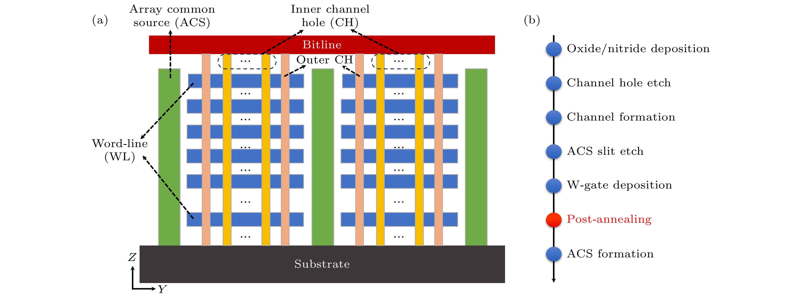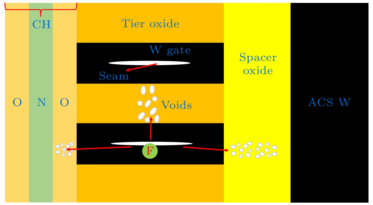 In this work, the influence of fluorine (F) erosion on tungsten (W) gate process is studied, and the measure to mitigate the word line (WL) leakage resulting from F erosion in 3D NAND flash memory is proposed. As the number of layers in 3D NAND increases, the tungsten (W) gate word line (WL) layer fill process becomes more challenging in the post-gate process. As the fill path length increases, the tungsten gates become more susceptible to voiding during deposition, resulting in the accumulation of fluorine (F) by-products, and causing fluorine attack issues. In particular, under the influence of subsequent high-temperature processes, the by-products containing fluorine can diffuse into the surrounding structure and corrode the surrounding oxide layer. This leads to WL leakage, thereby affecting device yield and reliability. This paper begins by analyzing the microscopic principles of fluorine erosion in 3D NAND. We also propose a low-pressure annealing method to address the issue of fluorine erosion. Then, we conduct the experiments on annealing planar thin film stacks and 3D filled structures under atmospheric condition and low-pressure condition. We use various methods to characterize the concentration and distribution of residual fluorine elements. The experimental results demonstrate that under appropriate conditions, the residual fluorine in the tungsten gate can be effectively released by low-pressure annealing, thus reducing the leakage index of the word line. Additionally, as the outer CH is closer to the fluorine discharge channel, the influence of low-pressure annealing on the outer CH is more pronounced than on the inner CH. The low-pressure annealing can significantly reduce the fluorine content in the tungsten gate. This method can also mitigate the issue of fluorine attack oxides and reducethe WL leakage. Using low-pressure annealing treatment can also enhance the quality of 3D NAND flash technology.