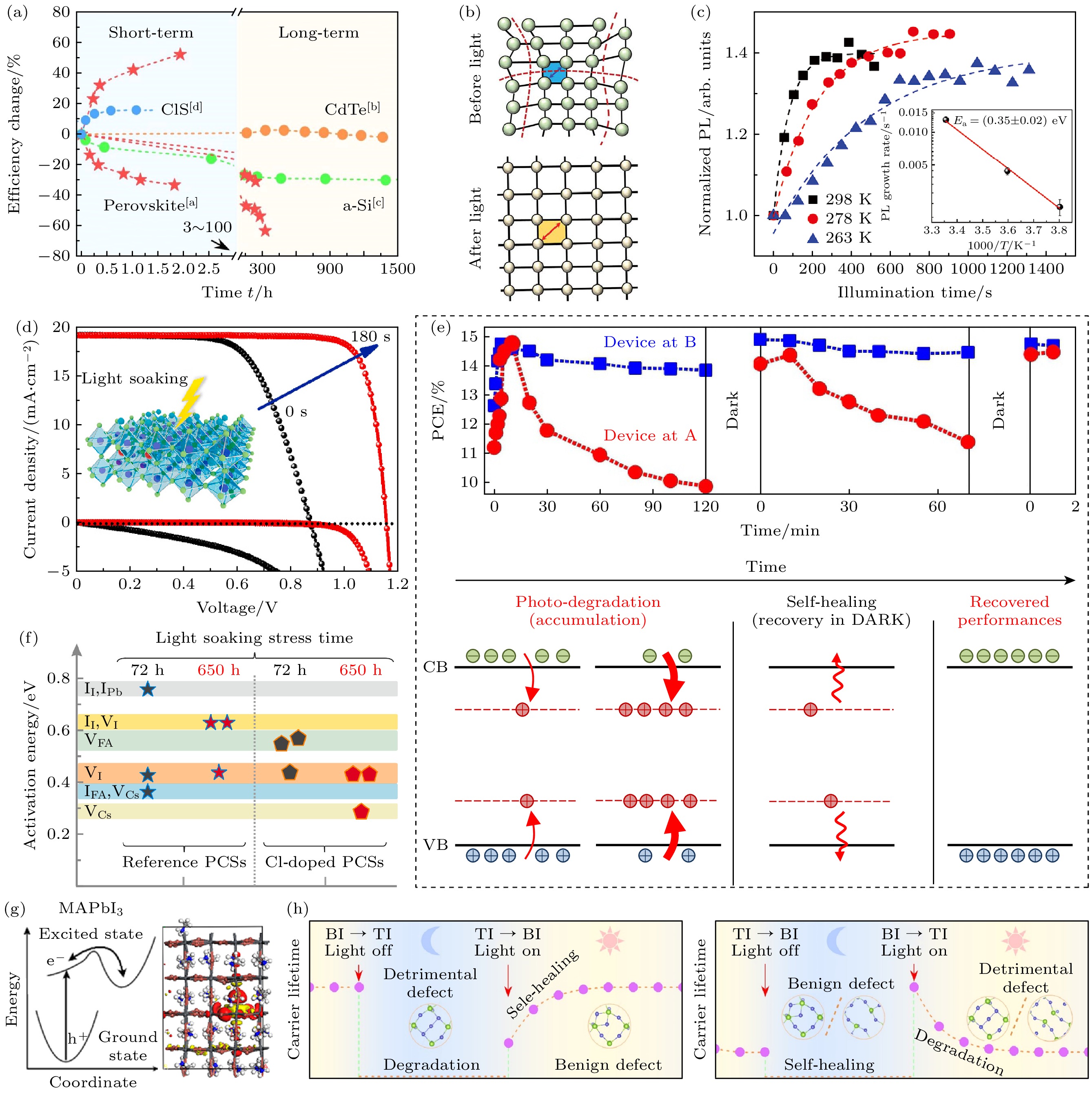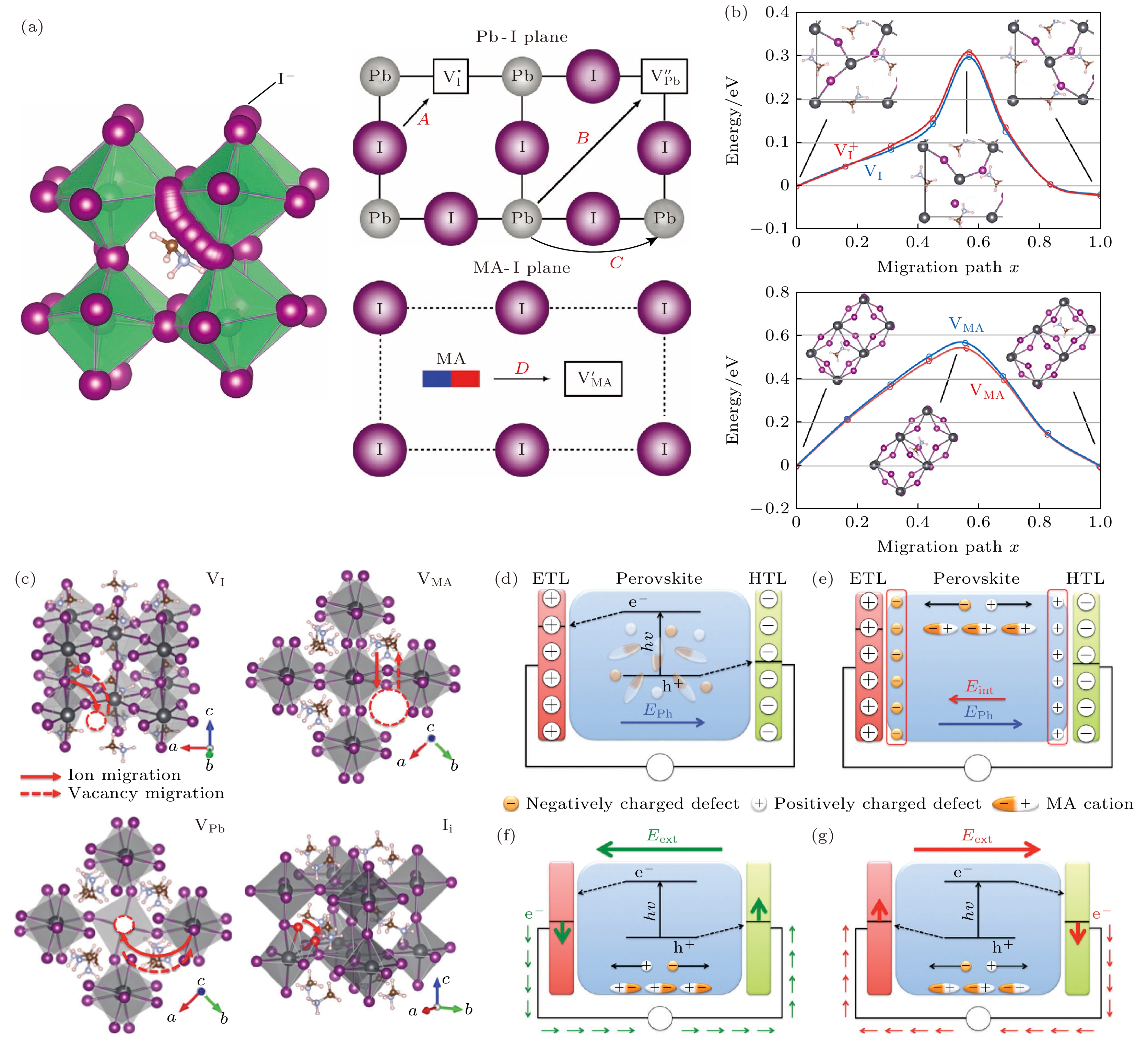 Perovskite solar cell material becomes one of the most attractive light absorbing materials in the photovolatic field due toits unique photoelectric characteristics, especially the rapid improvement of photoelectric conversion efficiency in the initial short period of time. However, in recent years, the growth of conversion efficiency has entered a slow stage, posing a challenge for subsequent development. In addition, the long-time stability of material has become a key barrier to widespread commerical applications. The emergence of these problems is closely related to the inevitable defects in the material in preparation process, because defect is usually regarded as one of the key factors hindering the improvement of photovolatic performance and materical stability. Therefore, a comprehensive understanding of the inherent defects of material is essential to improve cell efficiency and maintain long-time structural stability. In this paper, the effects of defects in perovskite material on photovolatic performance and stability are discussed in many aspects, including the traditional rigid defects, unconventional defects, complex defects, and ion migration. Second, this work also delves into how defects affect carrier lifetime and highlights their role in determining the overall cell performance. Such insights are very important in designing effective strategies to mitigate the adverse effects of defects on material performance and stability. Finally, we discuss the complex relationship between defects and structural stability, and recognize that the defects are a key factor affecting the long-term robustness of perovskite solar cells. The understanding of the mechanism behind the focus problems will help researchers achieve new ideas to improve the efficiency and duraibility of perovskite solar cell technology. Overall, this review not only provides the current state of knowledge on defects in perovskite materials, but also illustrates further research directions. By revealing the complex interplay between defects, photovoltaic performance and structural stability, researchers can find a way to break through the current limitations and realize the potential value of perovskite solar cell technology in the commercial applications. Thiswork aims to spark an in-depth discussion of this issue and further explore and innovate in this promising field.