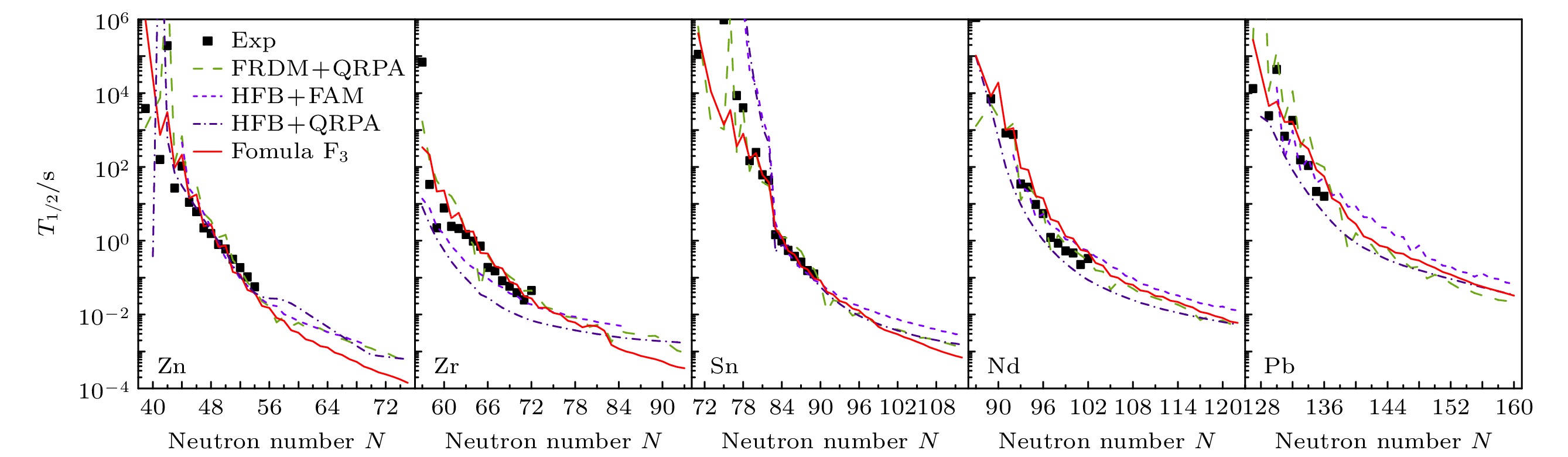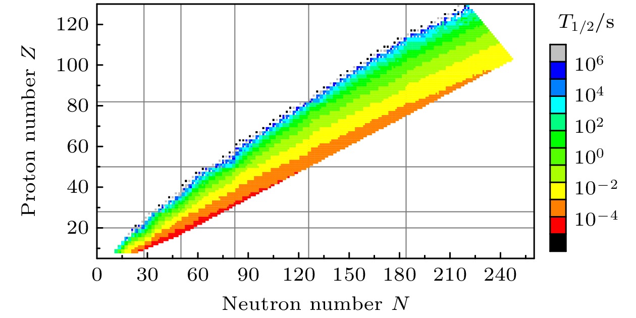 Nuclearβ-decay half-lives play an important role not only in nuclear physics, but also in astrophysics. Theβ-decay half-lives of many nuclei involved in the astrophysical rapid neutron-capture (r -process) still cannot be measured experimentally, so the theoretical predictions of nuclearβ-decay half-lives are inevitable for r-process studies. Theoretical models for studying the nuclearβ-decay half-lives include the empirical formula, the gross theory, the quasiparticle random phase approximation (QRPA), and the shell model. Compared with other theoretical models ofβ-decay half-lives, the empirical formula has high computational efficiency, and its prediction accuracy can be improved by introducing more and more physical information. In this work, an empirical formula without free parameters is proposed to calculate the nuclearβ-decay half-lives based on the Fermi theory ofβdecay. By including the pairing effect, the shell effect, and the isospin dependence, the newly proposed empirical formula significantly improves the accuracy of predicting the nuclearβ-decay half-life. For the nuclei with half-lives less than 1 second, the root-mean-square deviation of the common logarithms of the nuclearβ-decay half-life predicted by the new empirical formula from the experimental data decreases to 0.220, which is improved by about 54% compared with that by the empirical formula without free parameters, even better than those by other existing empirical formulas and microscopic QRPA approaches. In the unknown region, the nuclearβ-decay half-lives predicted by the new empirical formula are generally shorter than those predicted by the microscopic models in the light nuclear region, while those predicted by the new empirical formula in the heavy nuclear region are generally in agreement with those predicted by the microscopic models. The half-lives of neutron-rich nuclei on the nuclear chart are then predicted by the new empirical formula, providing nuclearβ-decay half-life inputs for the r-process simulations.